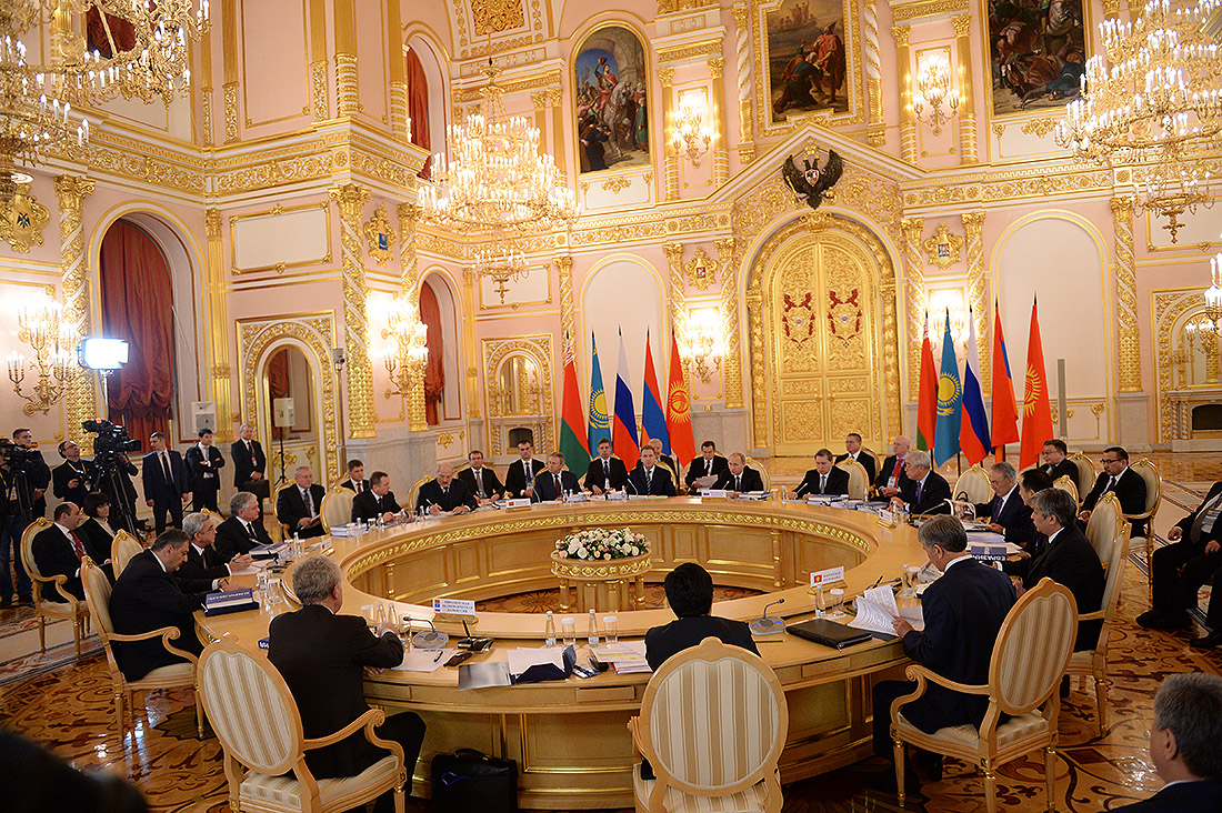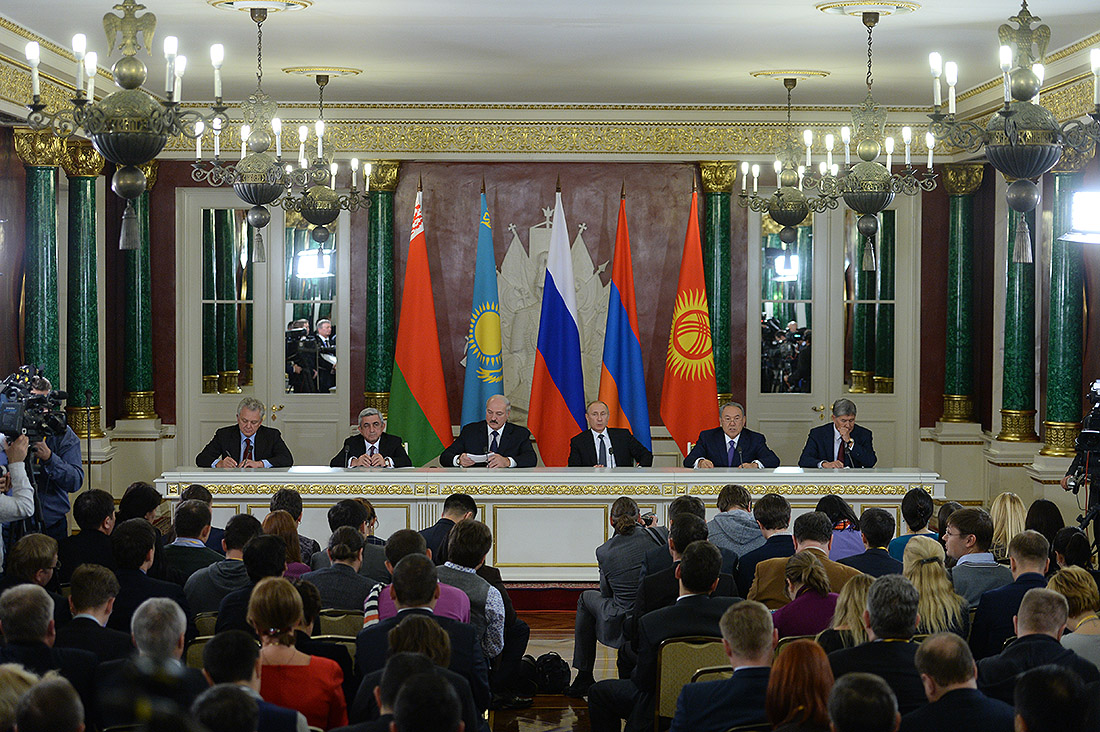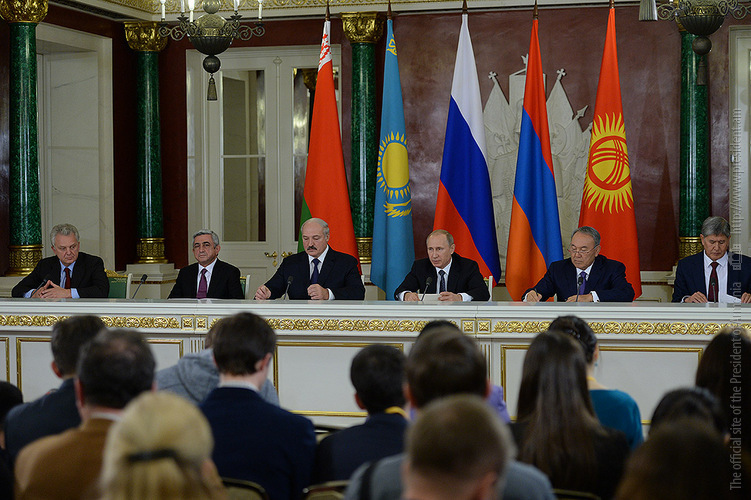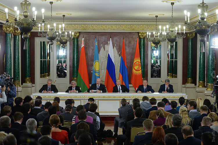 Armenian President Serzh Sargsyan, Russian President Vladimir Putin, Belarusian President Alexander Lukashenko, Kazakhstani President Nursultan Nazarbayev, Kyrgyzstani President Almazbek Atambayev and Viktor Khristenko, Chairman of the Board of the Eurasian Economic Commission, took part in the session which ended with signing of a number of documents. The participants also summed up the results during a joint press conference.