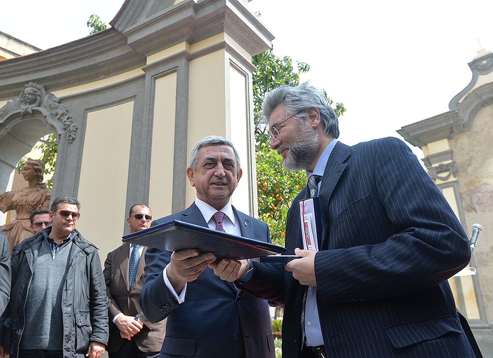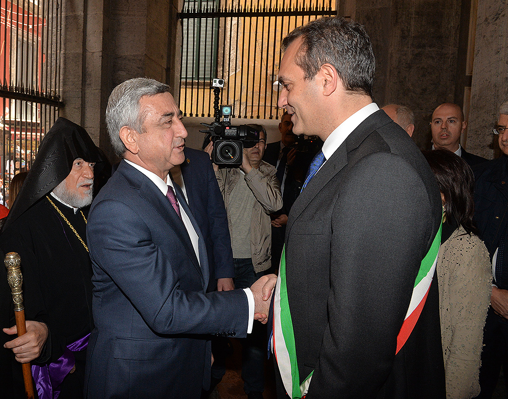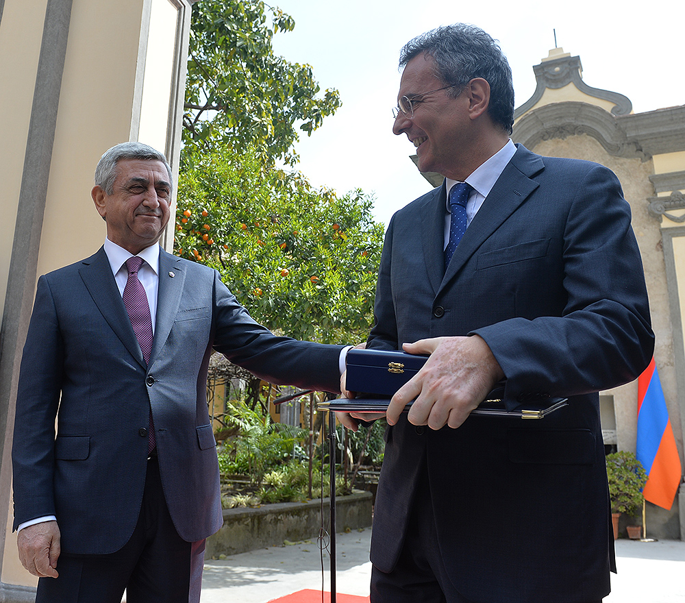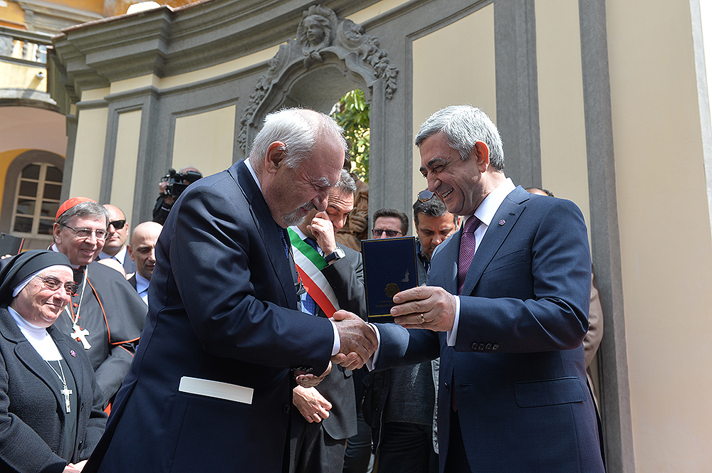 The Armenian President was awarded the Order of Naples City which was delivered to Serzh Sargsyan by Mayor Luigi de Magistris.