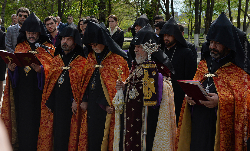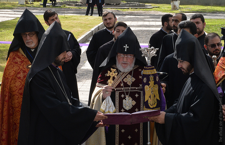 RA President Serzh Sargsyan, Chairman of the State Commission on Coordination of the Events for the Commemoration of the 100th Anniversary of the Armenian Genocide, today attended the consecration ceremony of Holy Martyrs Church to be built next to the pantheon in the capital’s Komitas Park. The ceremony was led by His Holiness Karekin II, Supreme Patriarch and Catholicos of All Armenians.