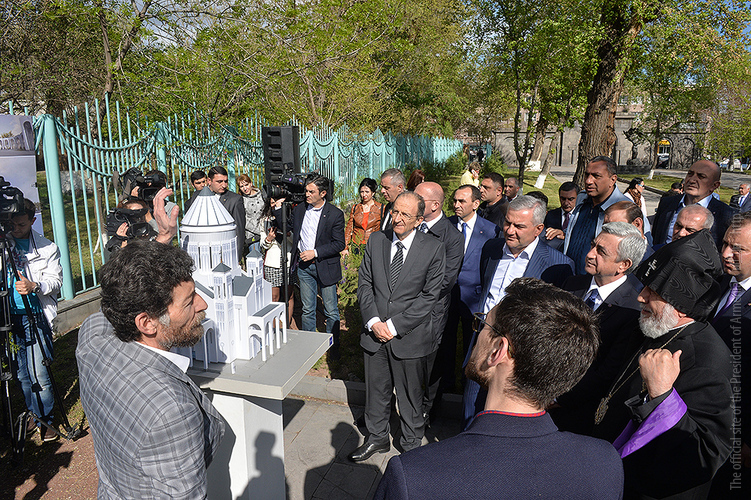 The Armenian President talked about the construction project of Holy Martyrs Church in 2012 during the public presentation ceremony of the project of the Komitas Museum-Institute’s building at Komitas Park. “I think that one of the ways to perpetuate the memory of Komitas and all our martyrs could be the construction of Holy Martyrs Church in the central part of Yerevan. The desire to build such a church has been expressed by numerous secular and ecclesiastical figures.