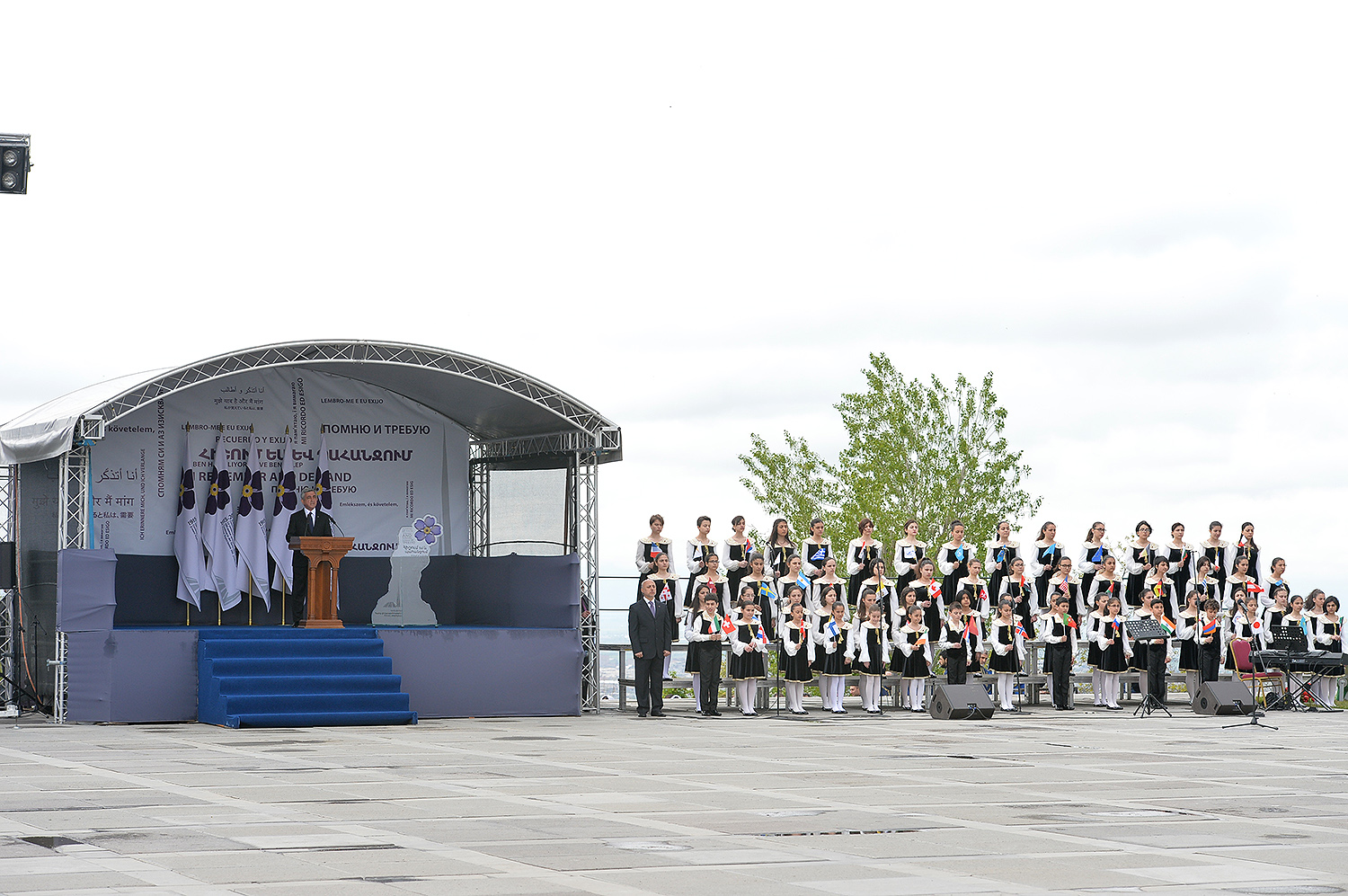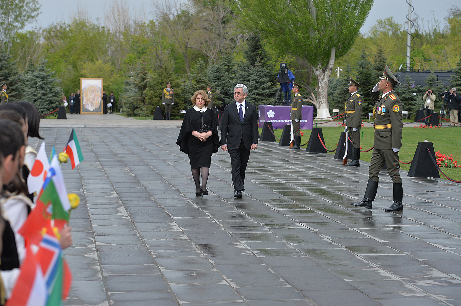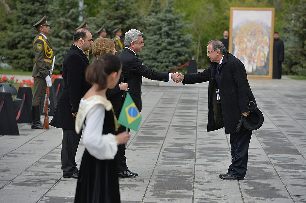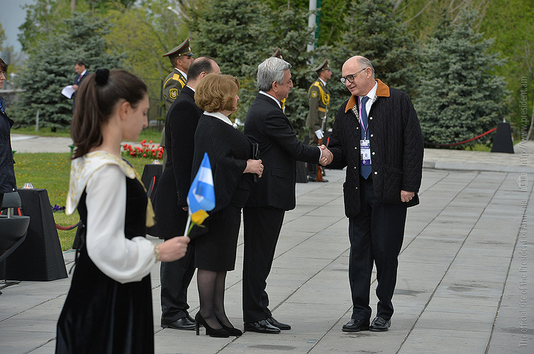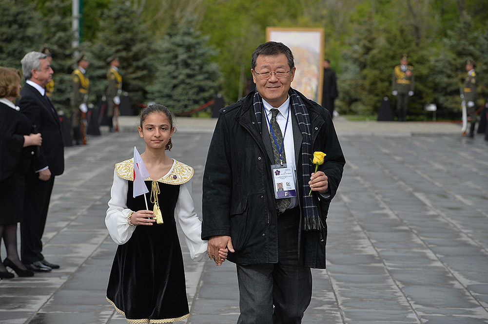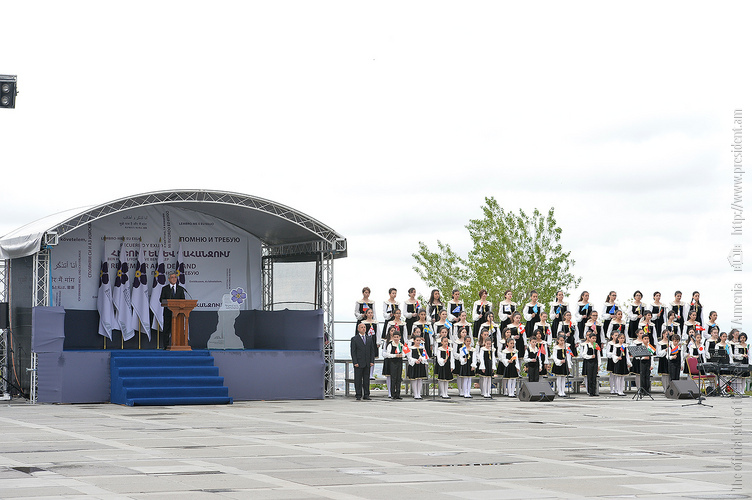 Unfortunately, April left a black trace in the history of not only the Armenian people, but humankind as whole. April is also the month in which the perpetration of the Holocaust, and crimes of genocide in Rwanda and Cambodia commenced. We stand here today, in the very month of April, in Tsitsernakaberd — the Armenian Genocide Memorial, to proclaim: May there never again be a need to erect a memorial to commemorate new disgraceful chapters of history anywhere in the world! May there be no more need for a new Tsitsernakaberd, Yad Vashem, Killing Fields, and Gisozi!