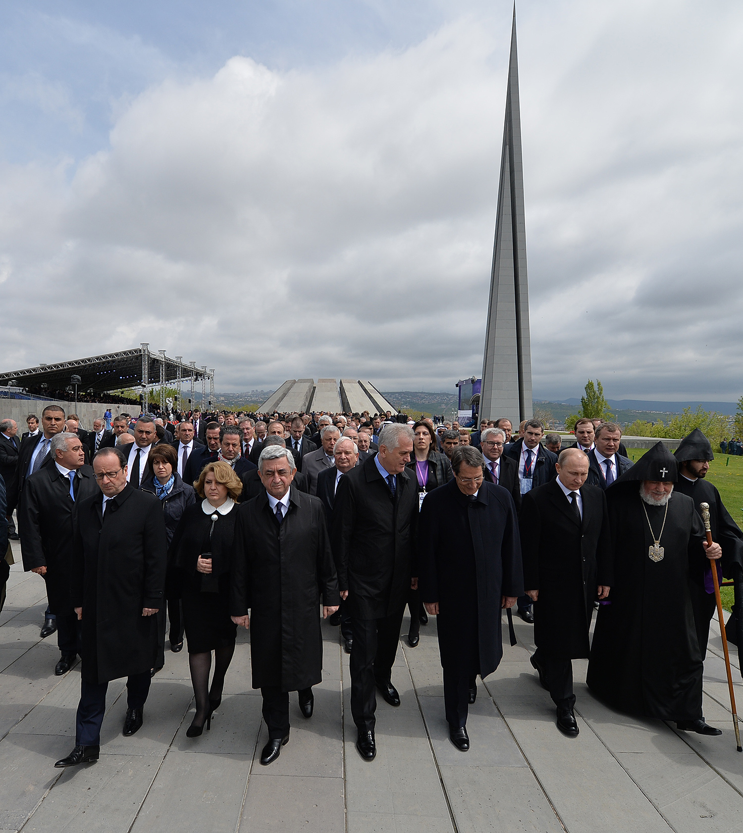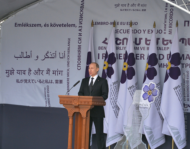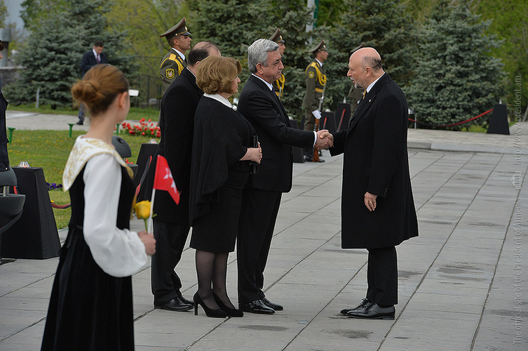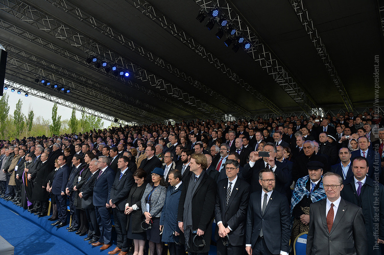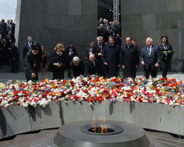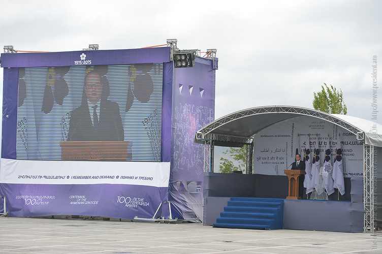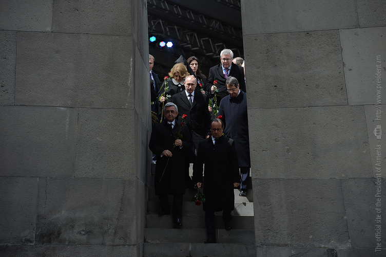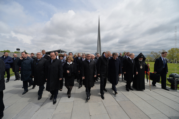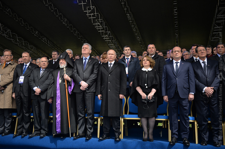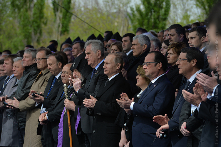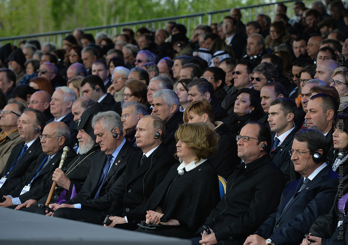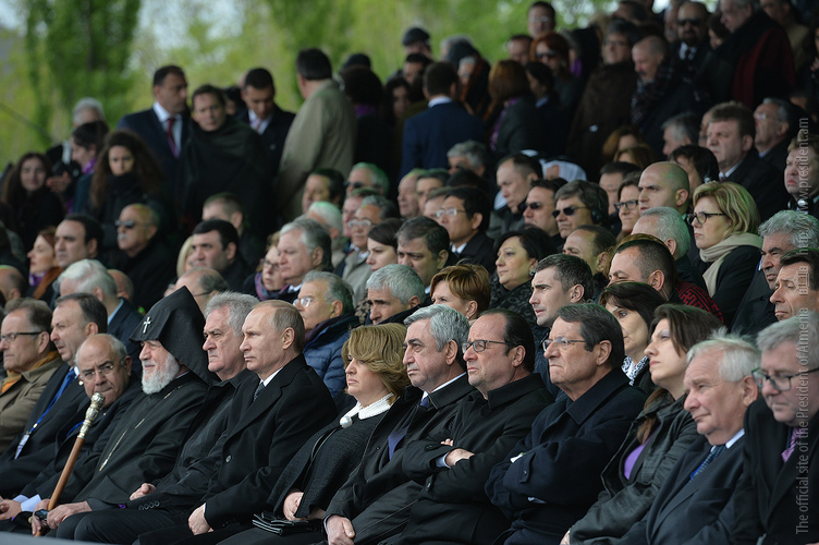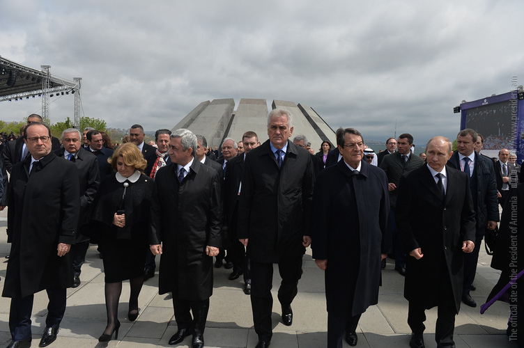 Hence, on behalf of all Armenians, I am grateful to you, President Anastasiades, President Nikolić, President Hollande, President Putin. I am grateful to the whole international community, represented here by many of your states and international organizations. I am grateful to all those that stand by our side, to all those that wish to be by our side. We are grateful to the global civil society and international press representatives that have been voicing the importance of the Armenian Genocide recognition. We are grateful to all people of good will — all those who stood by the side of the Armenian people in the course of commemoration events around the world this year. We are grateful to those who gathered at Taksim Square in Istanbul today: they are strong people who are standing for the right cause for their fatherland.