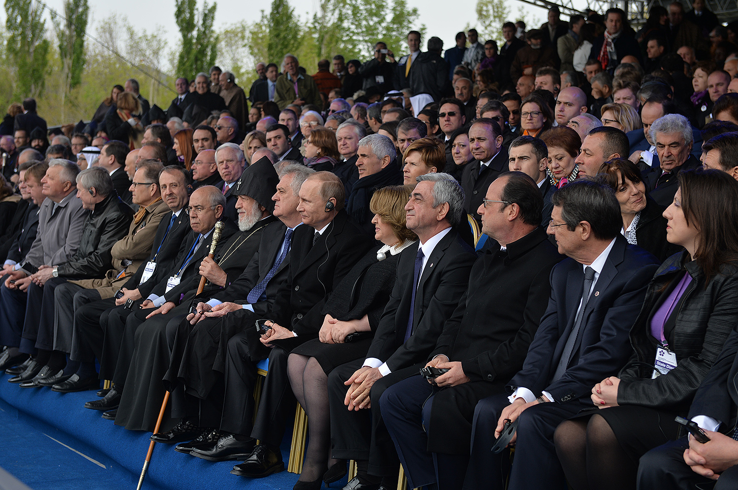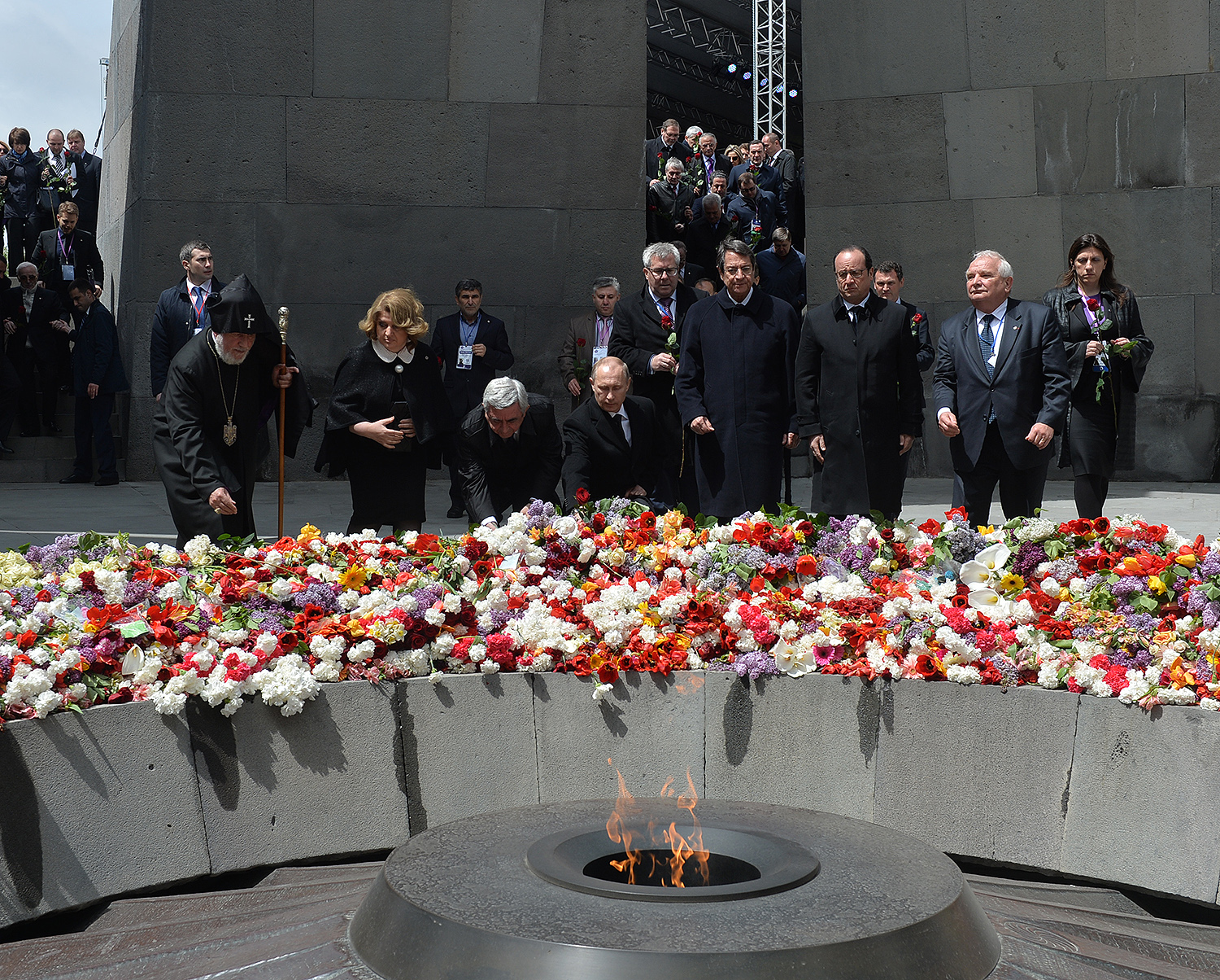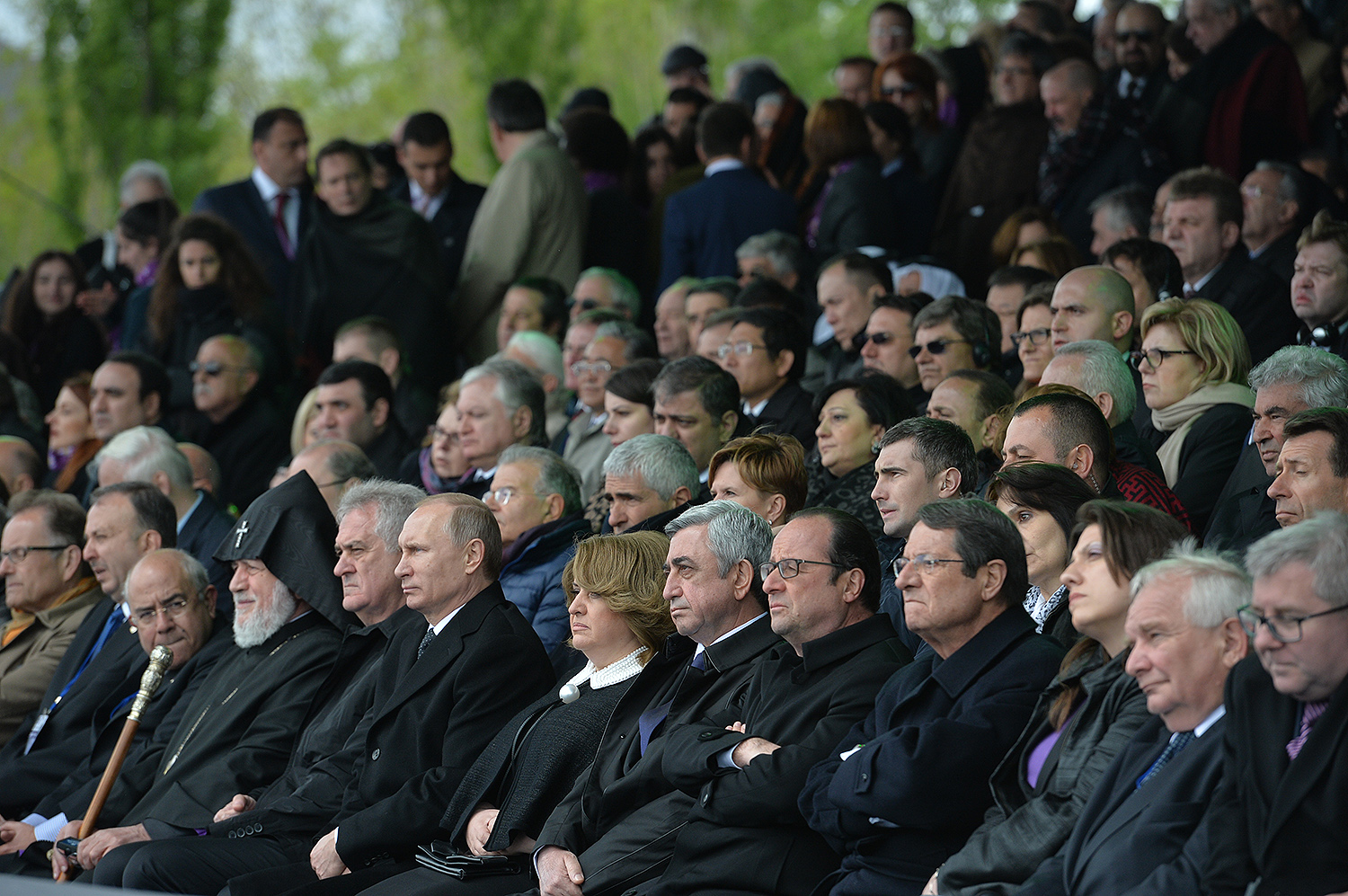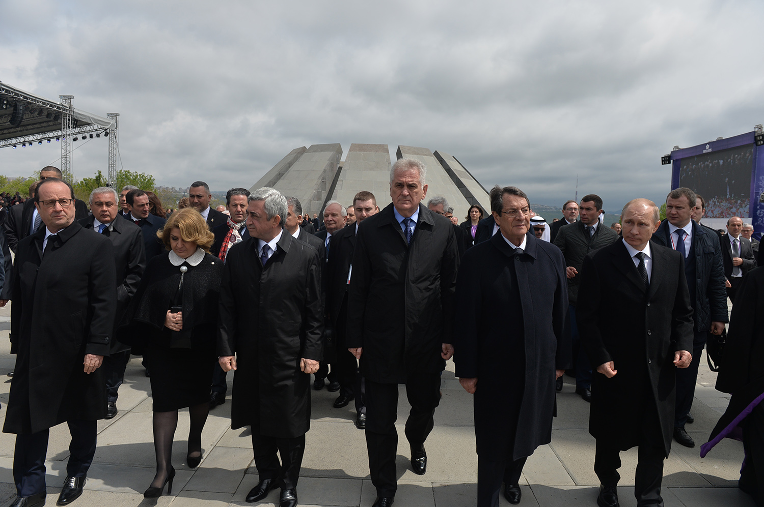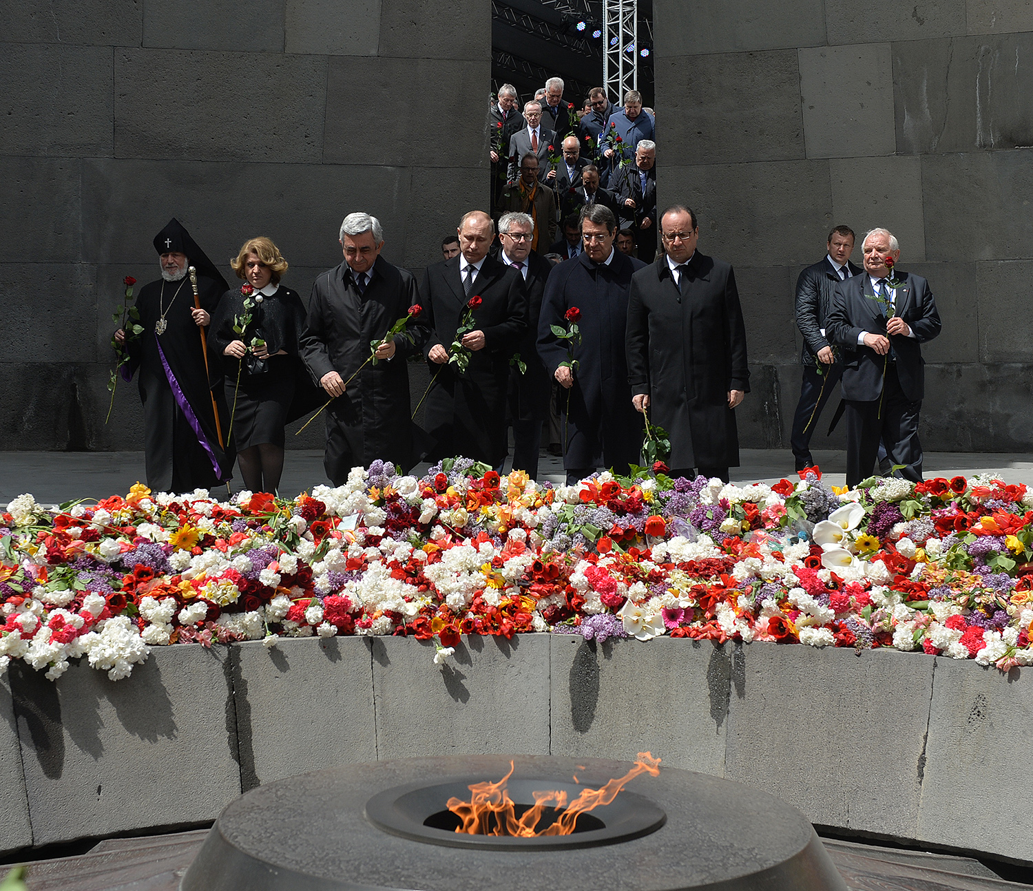 Hence, on behalf of all Armenians, I am grateful to you, President Anastasiades, President Nikolić, President Hollande, President Putin. I am grateful to the whole international community, represented here by many of your states and international organizations. I am grateful to all those that stand by our side, to all those that wish to be by our side. We are grateful to the global civil society and international press representatives that have been voicing the importance of the Armenian Genocide recognition. We are grateful to all people of good will — all those who stood by the side of the Armenian people in the course of commemoration events around the world this year. We are grateful to those who gathered at Taksim Square in Istanbul today: they are strong people who are standing for the right cause for their fatherland.