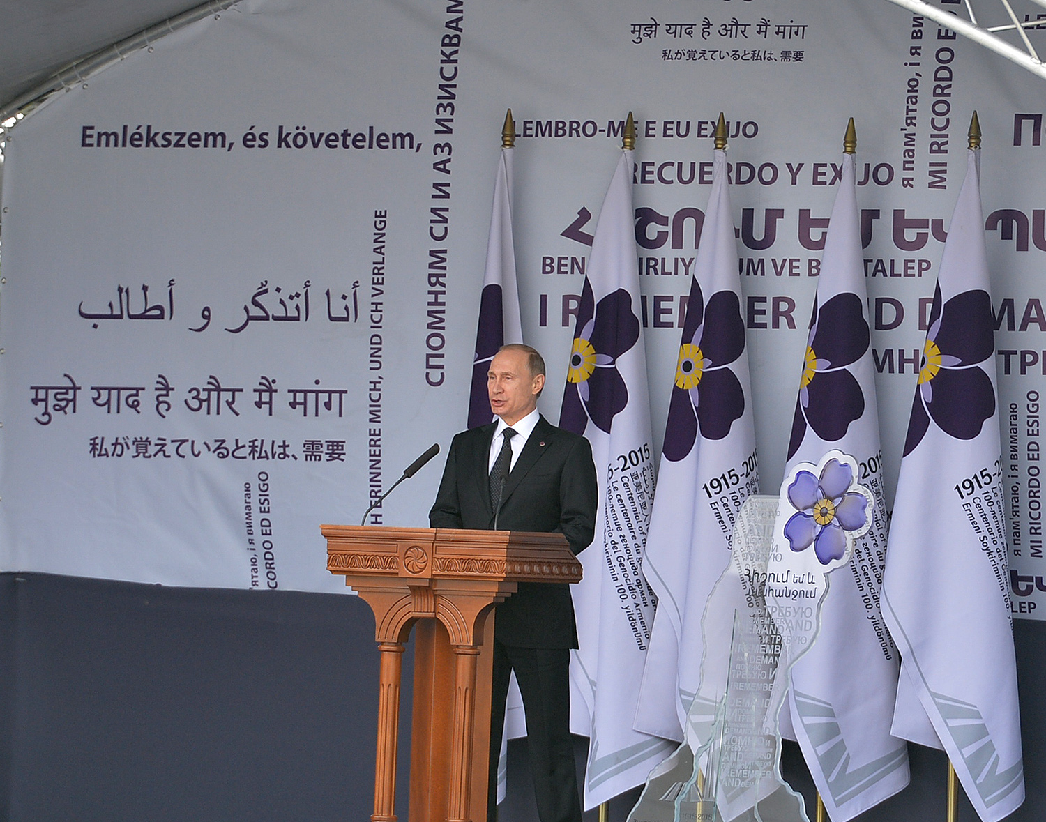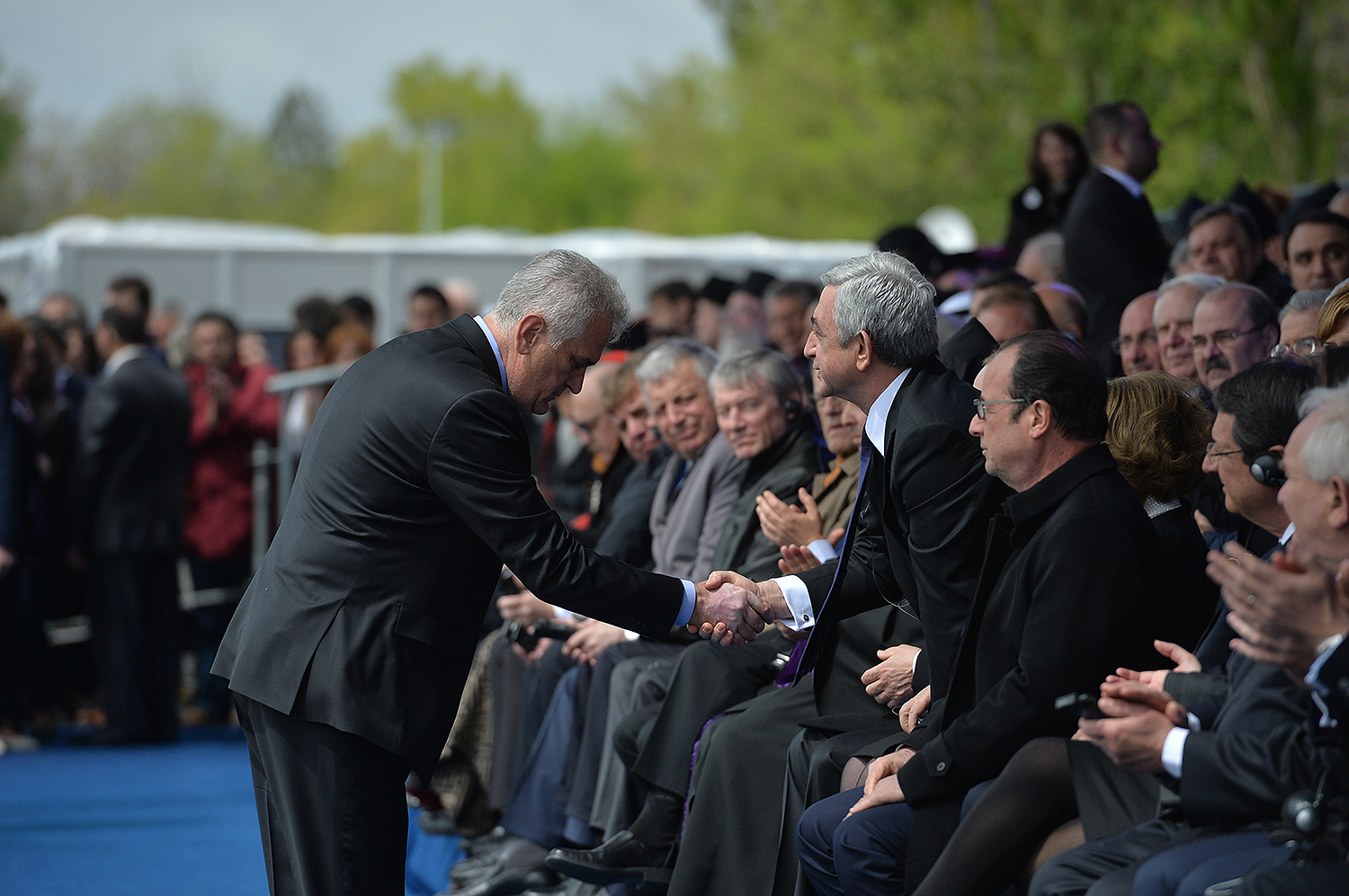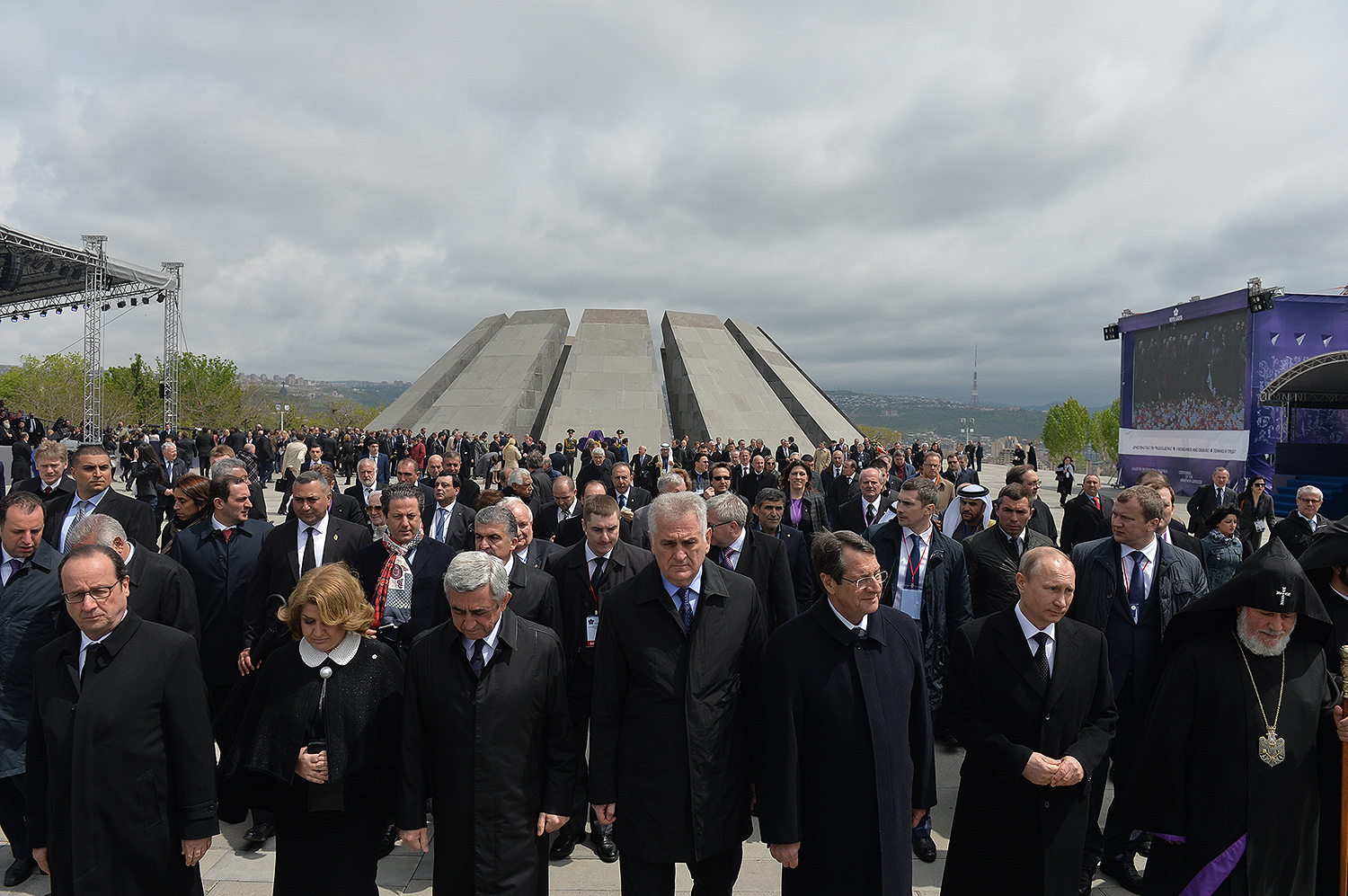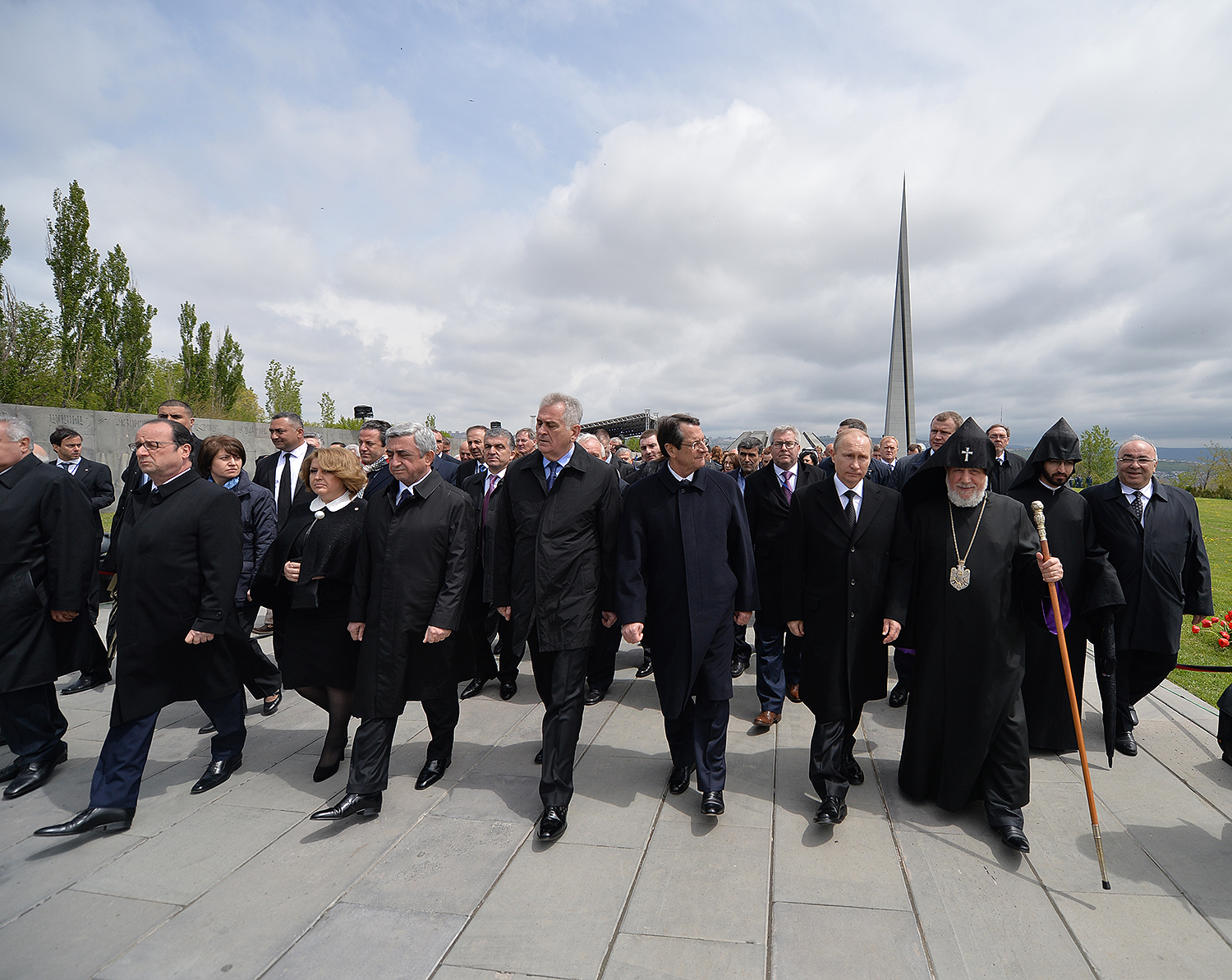 Hence, on behalf of all Armenians, I am grateful to you, President Anastasiades, President Nikolić, President Hollande, President Putin. I am grateful to the whole international community, represented here by many of your states and international organizations. I am grateful to all those that stand by our side, to all those that wish to be by our side. We are grateful to the global civil society and international press representatives that have been voicing the importance of the Armenian Genocide recognition. We are grateful to all people of good will — all those who stood by the side of the Armenian people in the course of commemoration events around the world this year. We are grateful to those who gathered at Taksim Square in Istanbul today: they are strong people who are standing for the right cause for their fatherland.