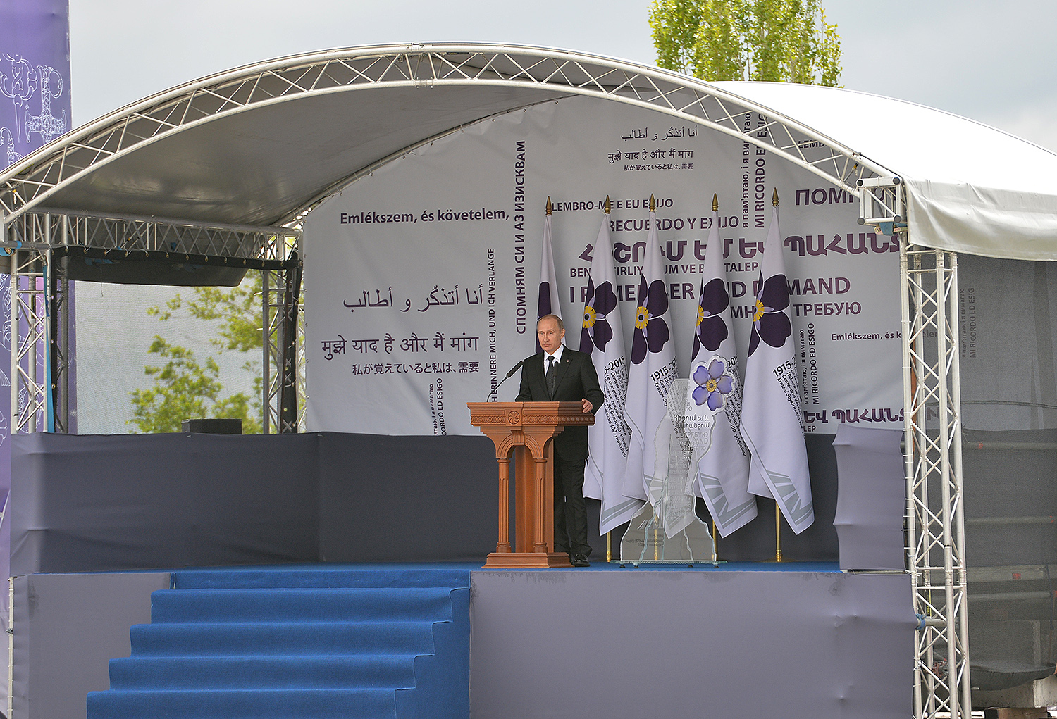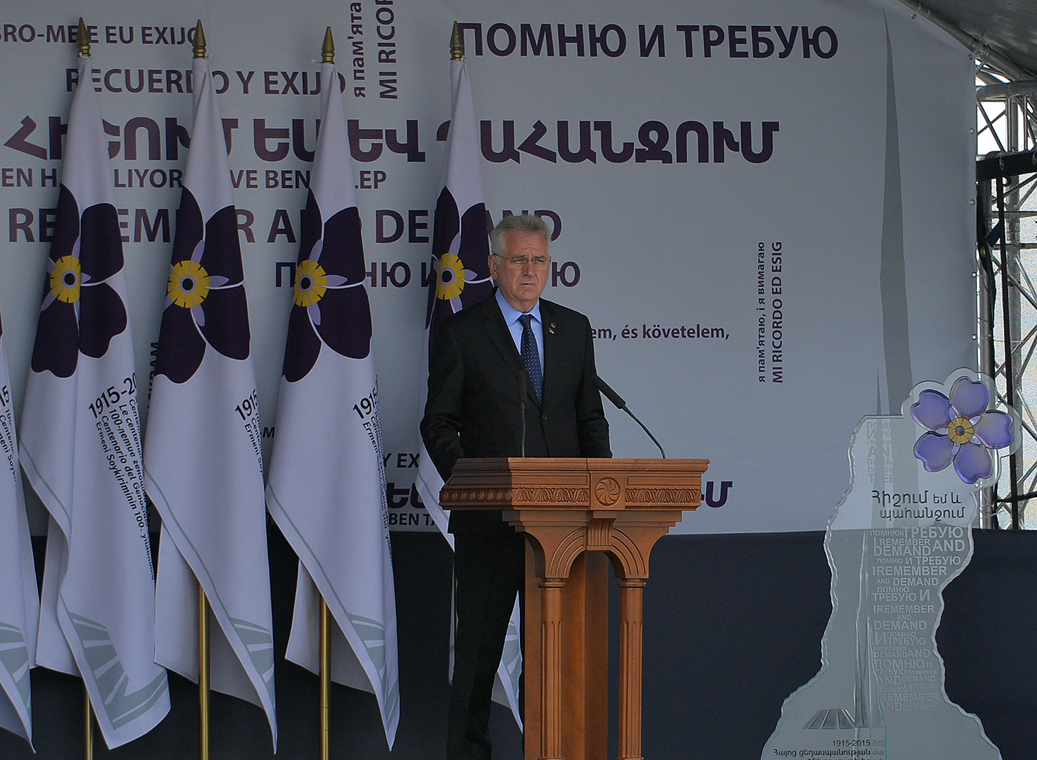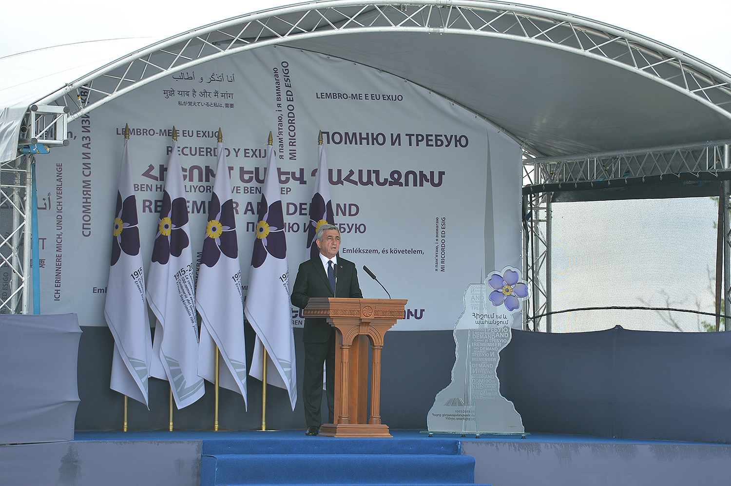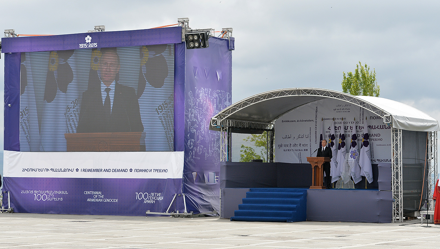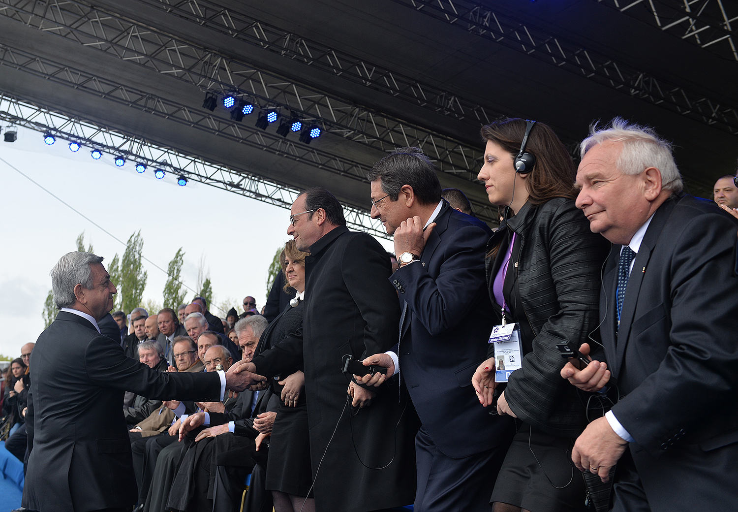 Hence, on behalf of all Armenians, I am grateful to you, President Anastasiades, President Nikolić, President Hollande, President Putin. I am grateful to the whole international community, represented here by many of your states and international organizations. I am grateful to all those that stand by our side, to all those that wish to be by our side. We are grateful to the global civil society and international press representatives that have been voicing the importance of the Armenian Genocide recognition. We are grateful to all people of good will — all those who stood by the side of the Armenian people in the course of commemoration events around the world this year. We are grateful to those who gathered at Taksim Square in Istanbul today: they are strong people who are standing for the right cause for their fatherland.