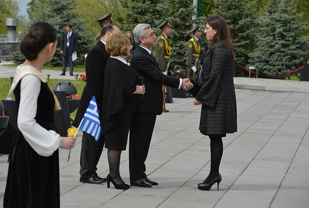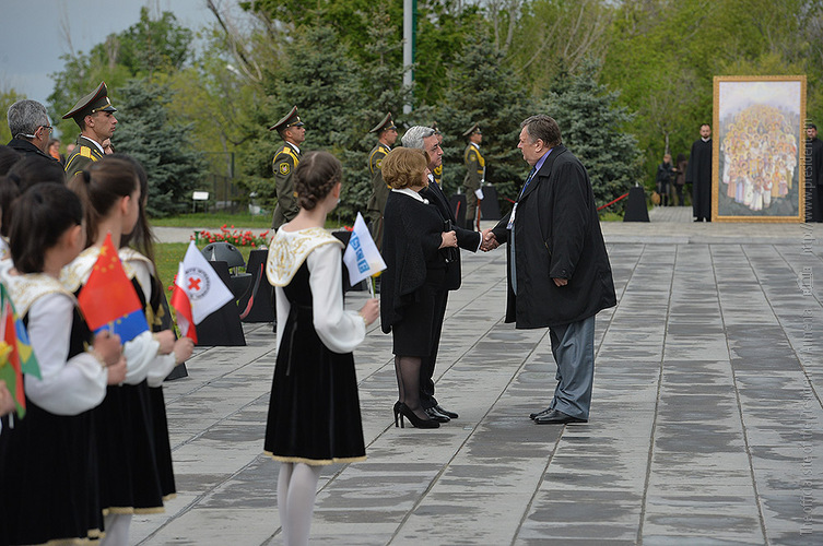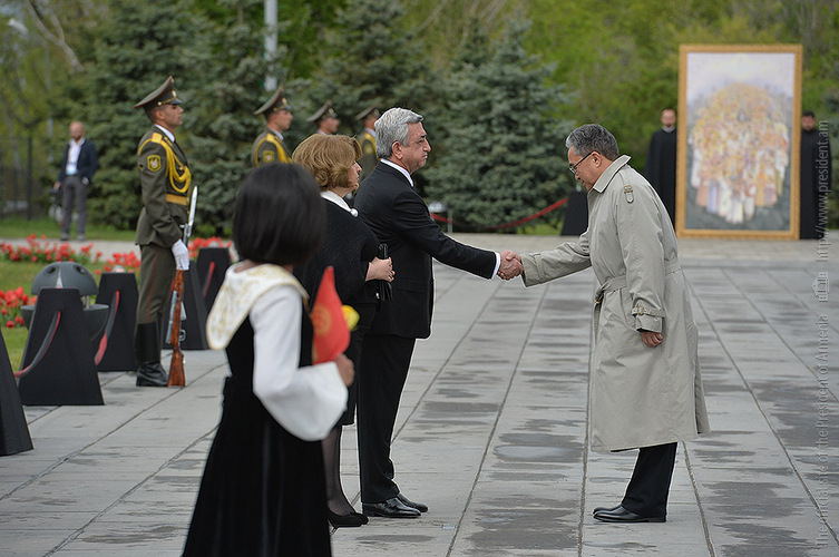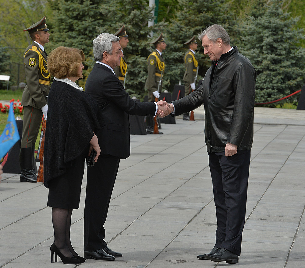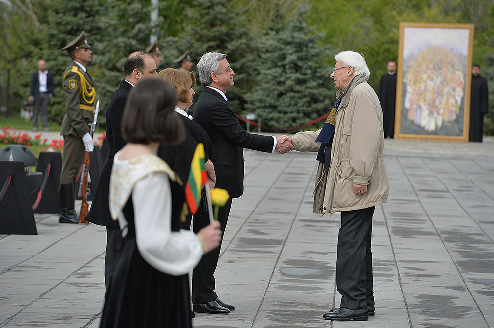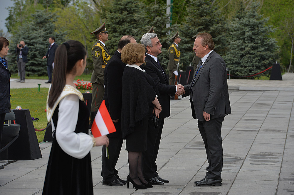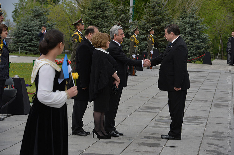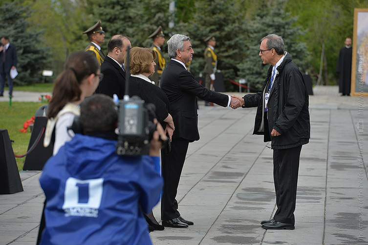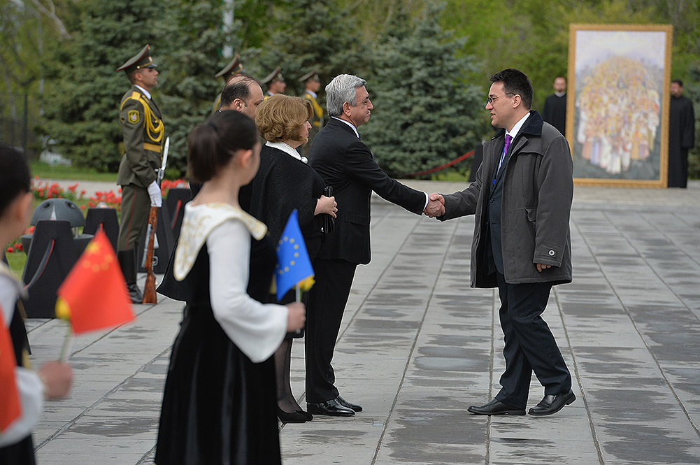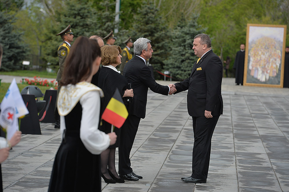 We stand on Tsitsernakaberd Hill today to commemorate the victims of the Armenian Genocide. On the 24th of April, this day a hundred years ago, the extensive enactment of one of the gravest crimes of the 20th century began with mass arrests of the Armenian intellectuals in Constantinople, the capital of the Ottoman Empire, and other cities of the empire. It had been preceded by the disarmament and massacre of the Armenian servicemen. What subsequently happened in 1915 and the years that followed was unprecedented in terms of volume and ramifications.