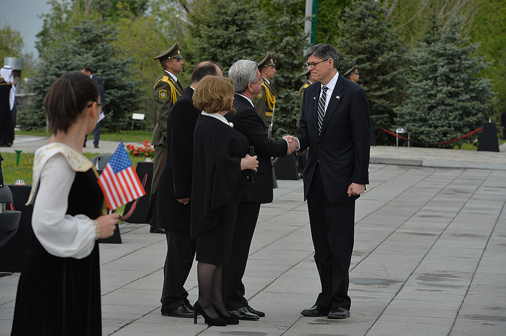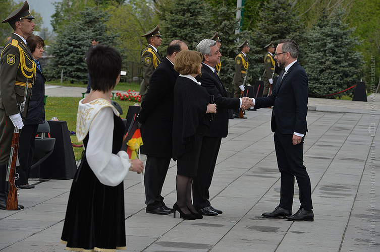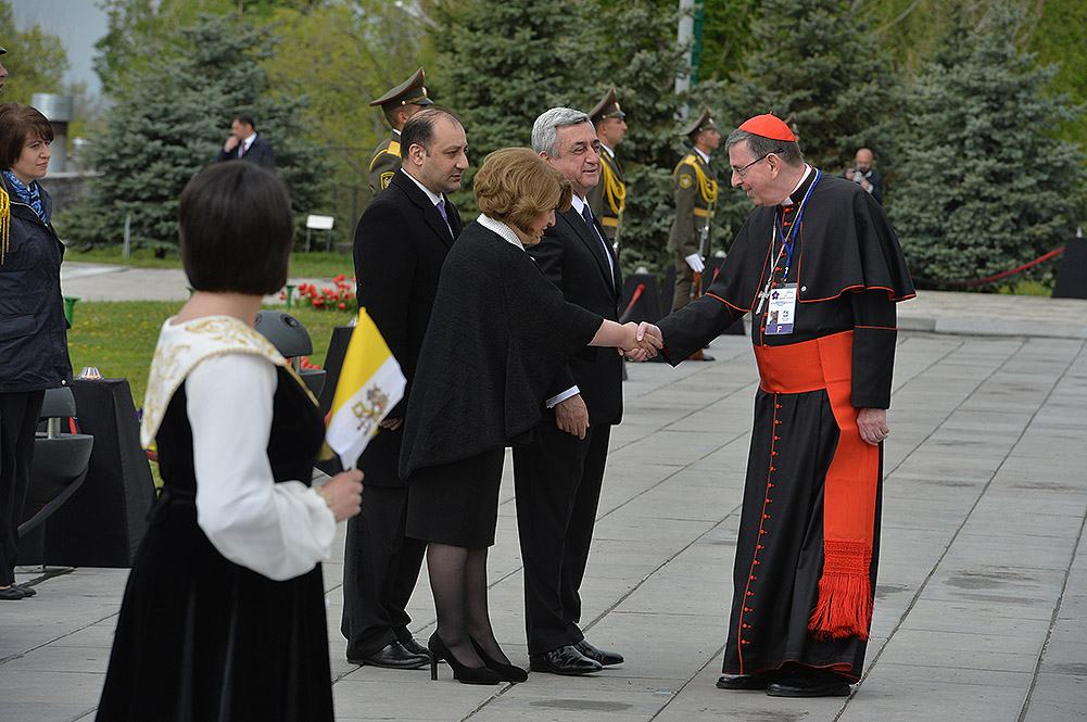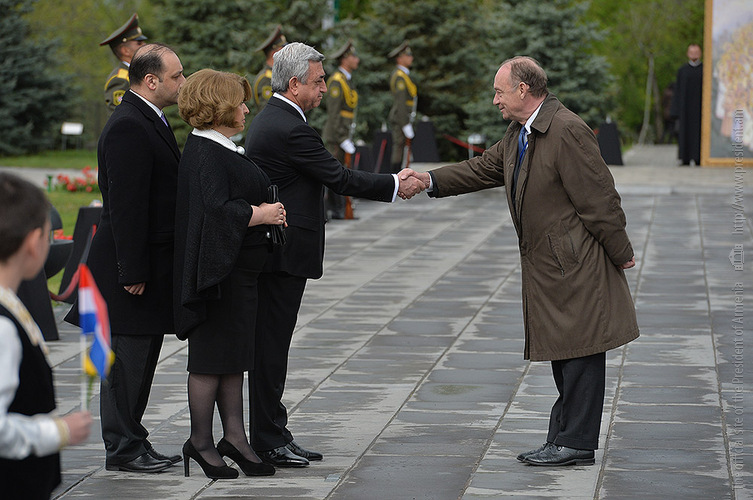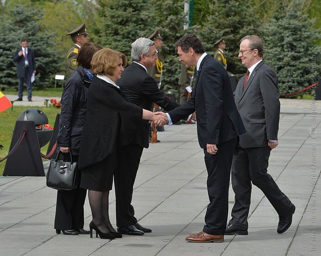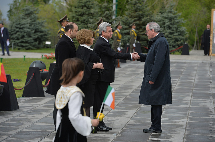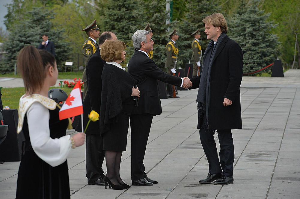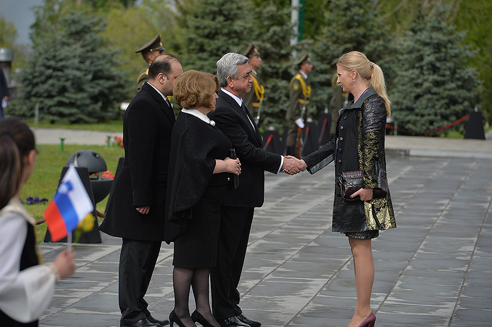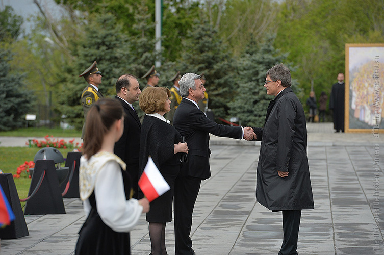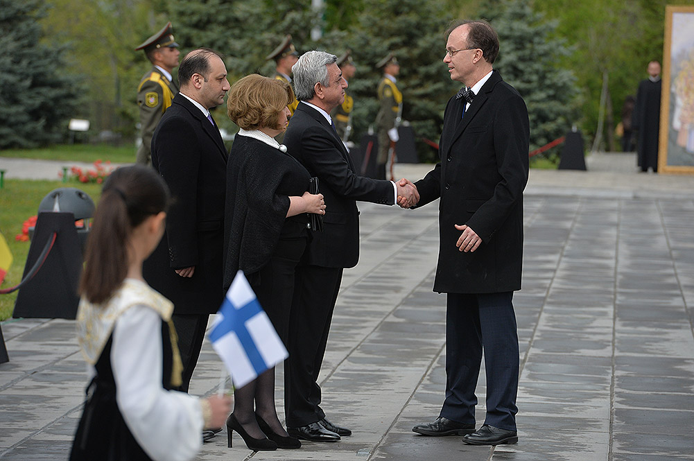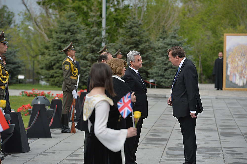 We stand on Tsitsernakaberd Hill today to commemorate the victims of the Armenian Genocide. On the 24th of April, this day a hundred years ago, the extensive enactment of one of the gravest crimes of the 20th century began with mass arrests of the Armenian intellectuals in Constantinople, the capital of the Ottoman Empire, and other cities of the empire. It had been preceded by the disarmament and massacre of the Armenian servicemen. What subsequently happened in 1915 and the years that followed was unprecedented in terms of volume and ramifications.