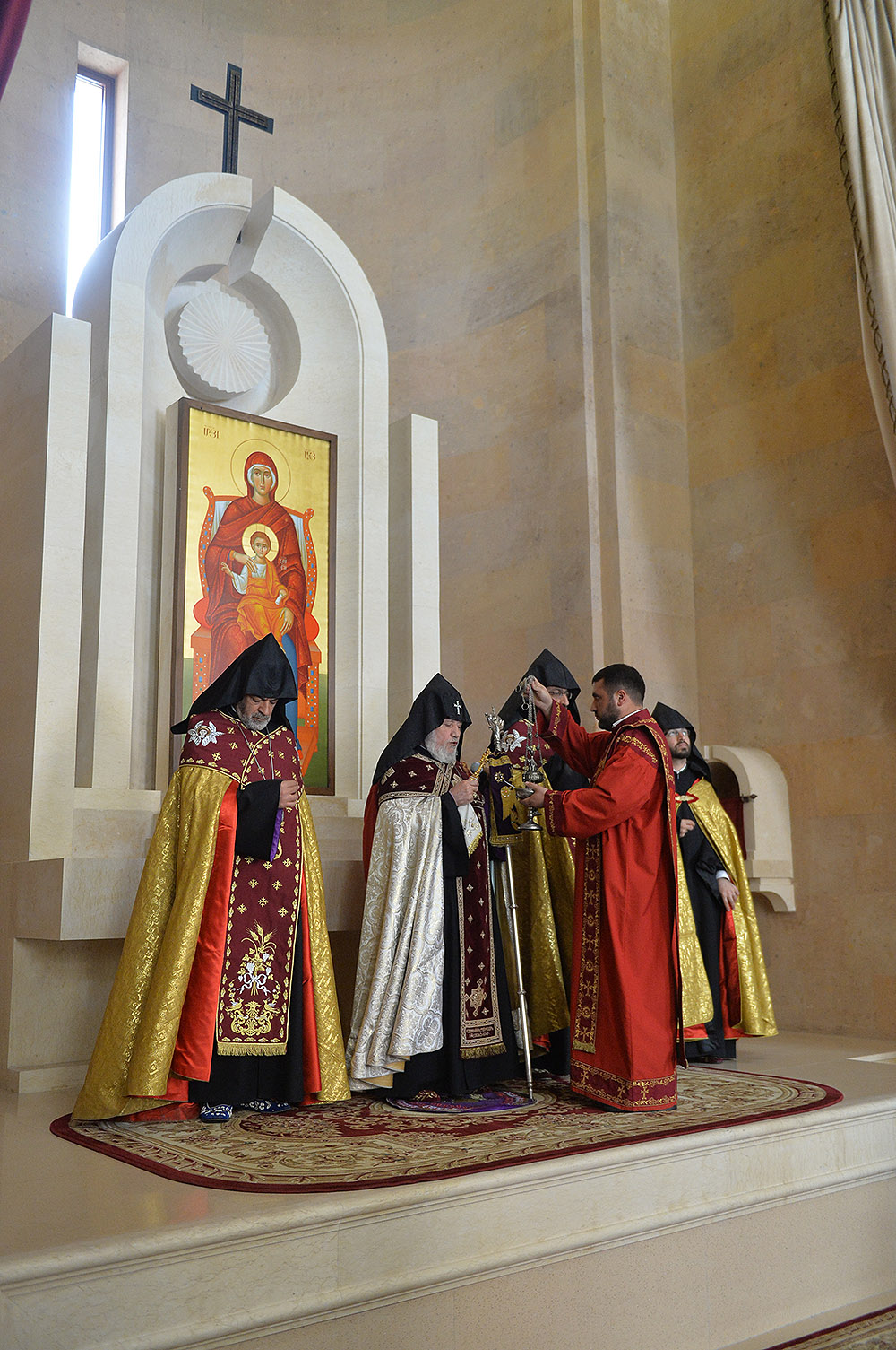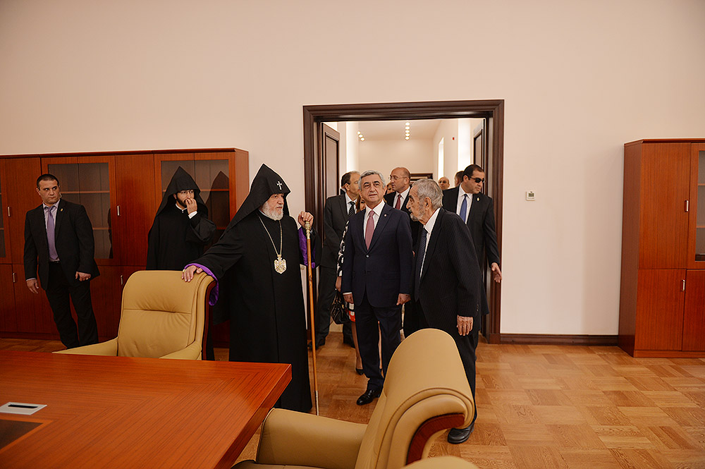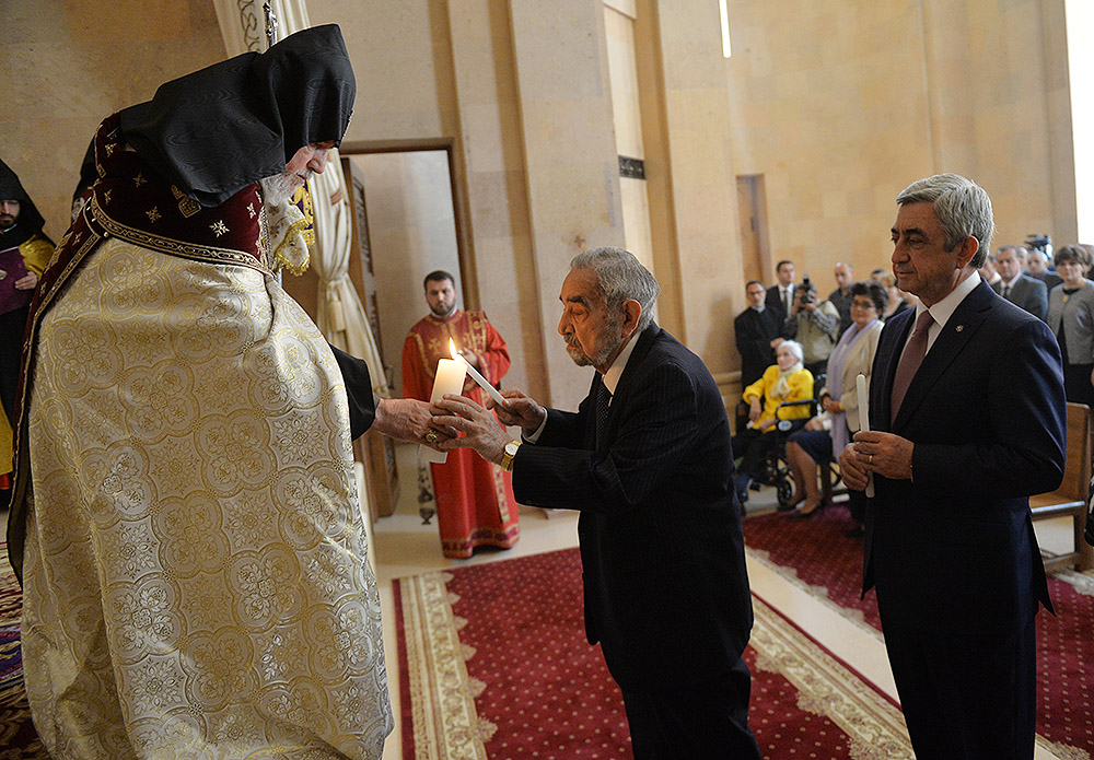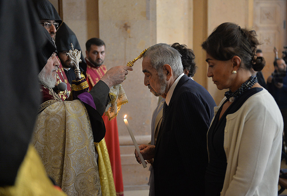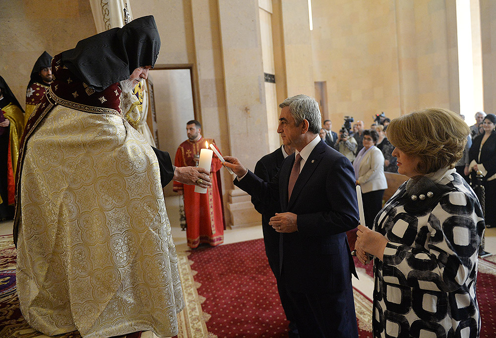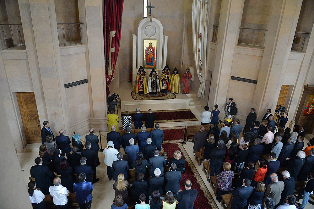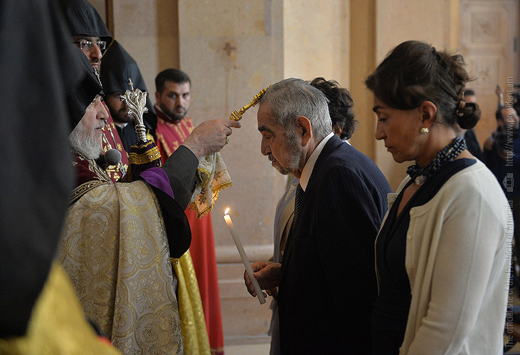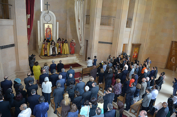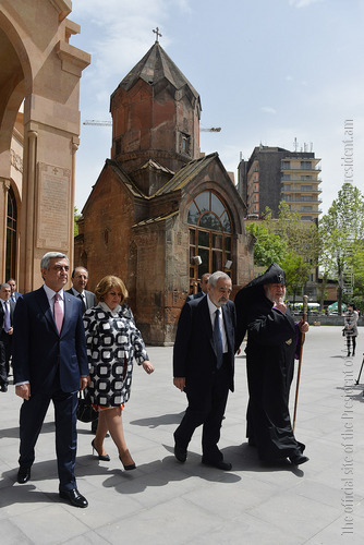 President Serzh Sargsyan and Mrs. Rita Sargsyan today attended the consecration ceremony of the newly-built St Anna Church located next to the Holy Mother of God Katoghike Church in Yerevan. The ceremony was presided over by His Holiness Karekin II, Supreme Patriarch and Catholicos of All Armenians.