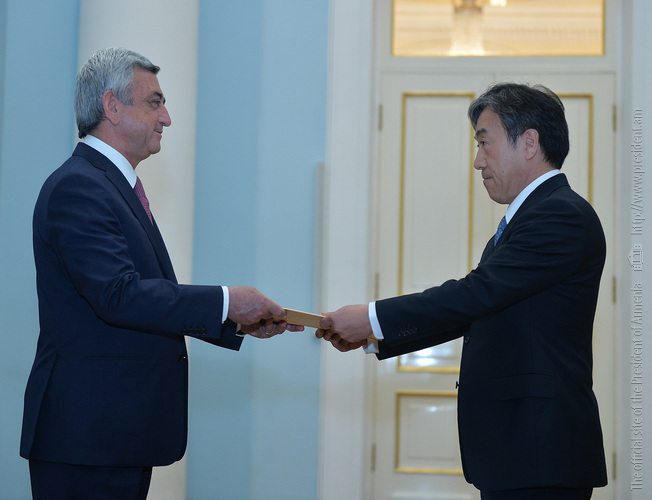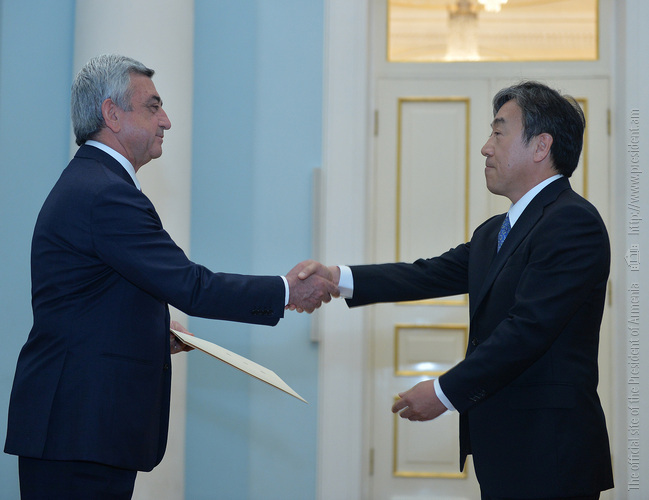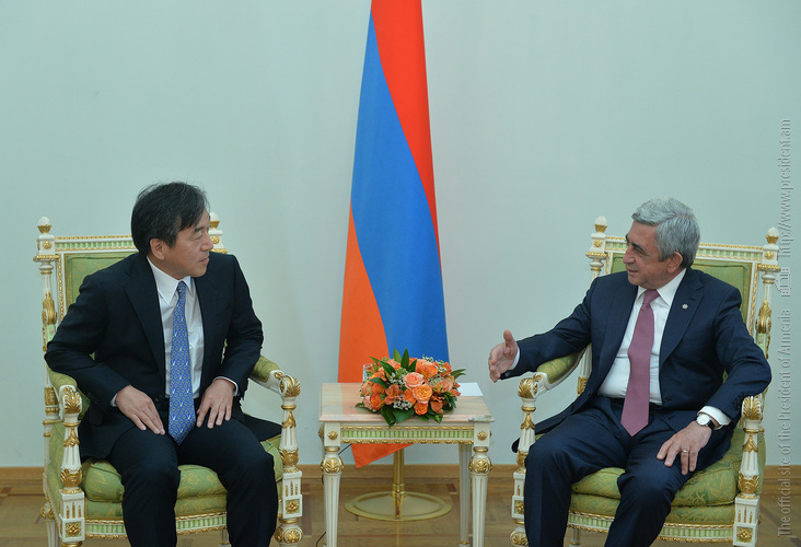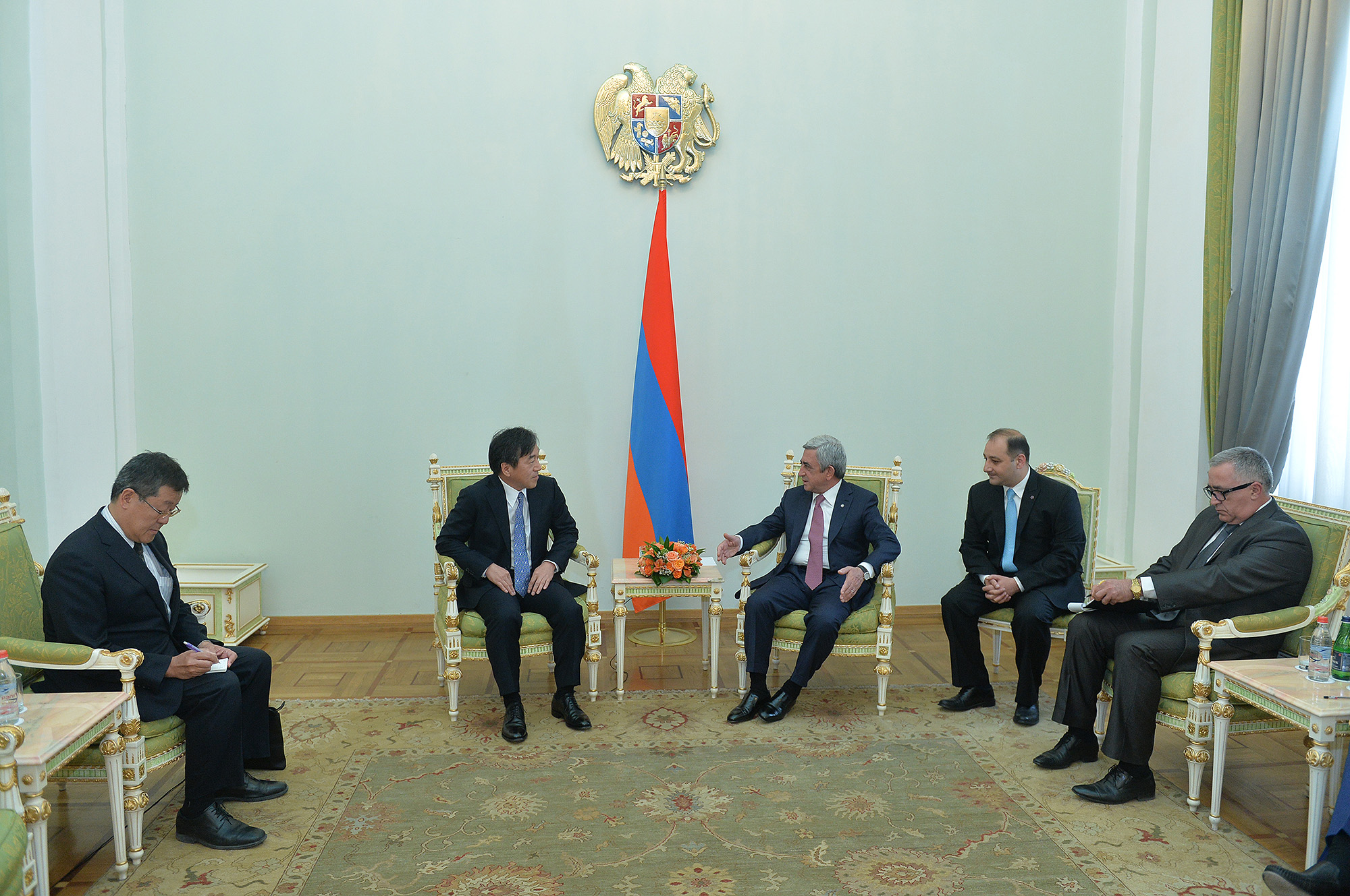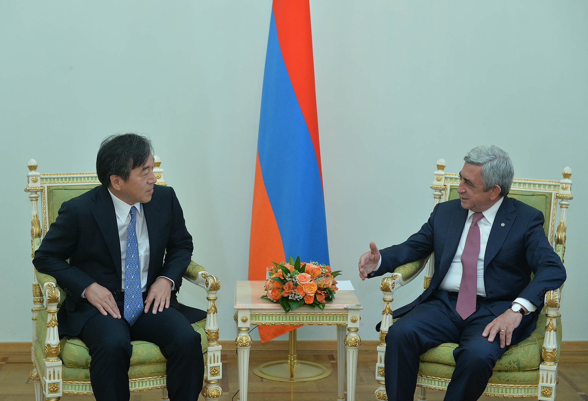 The Armenian president congratulated Ambassador Taguchi on his appointment and stressed that it is a great honor and responsibility to be the first resident ambassador and contribute to the continued strengthening of friendship between the two states and peoples. The president wished success to the newly-appointed Japanese ambassador in fulfilling that mission. Serzh Sargsyan expressed satisfaction with the positive dynamics of Armenian-Japanese relations achieved in recent years and expressed the hope that the activities of Japan’s newly-opened embassy in Armenia will help to maintain that dynamics, enhance multifaceted friendly ties between Armenia and Japan and bring to life the high-level bilateral agreements.