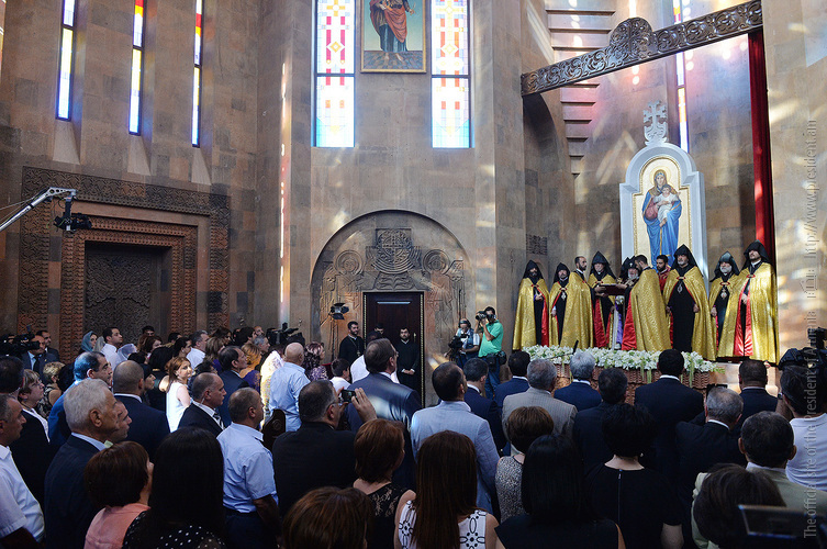 President Serzh Sargsyan attended today the consecration ceremony of newly-built St. Savior’s Church in Nor Hachen. The ceremony was led by His Holiness Karekin II, Supreme Patriarch and Catholicos of All Armenians.
