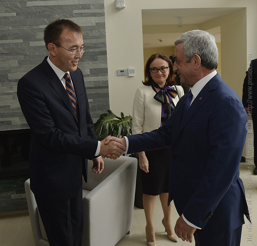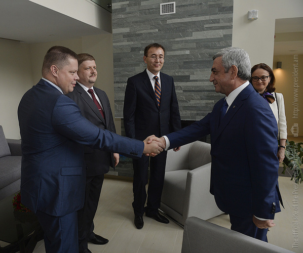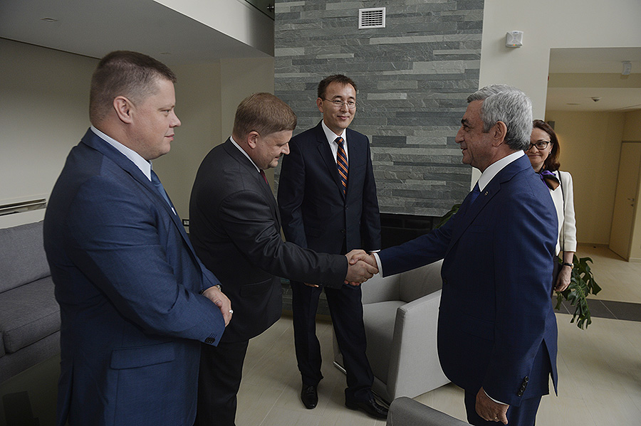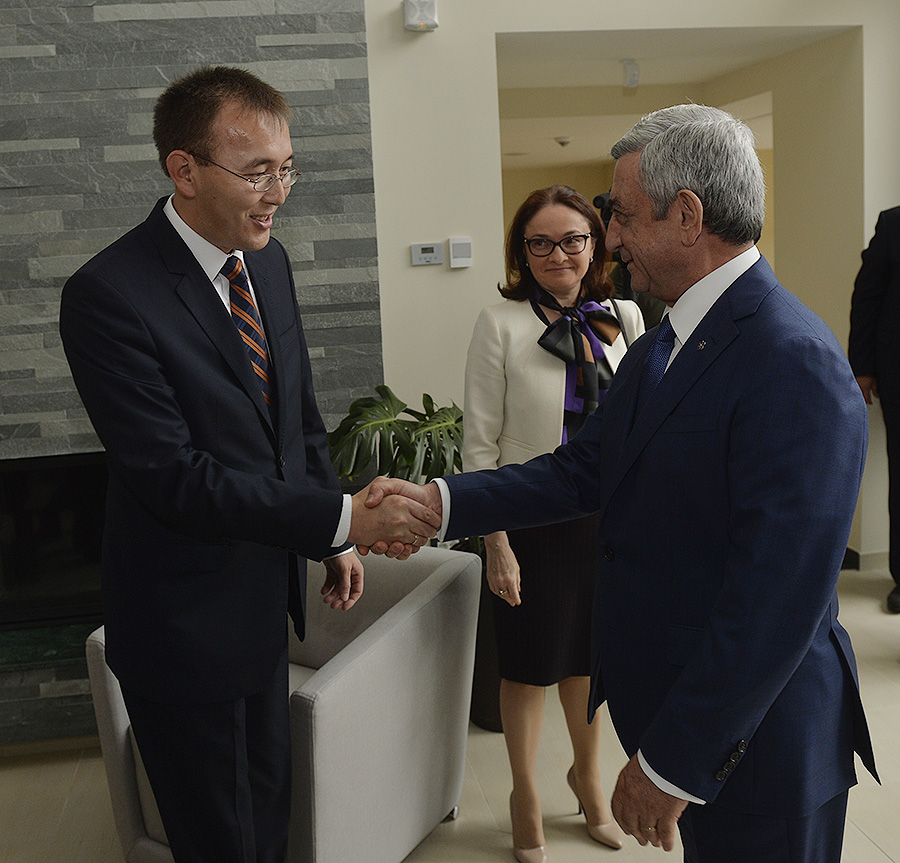 Today, at Dilijan Research and Training Center, President Serzh Sargsyan received the Governor of Bank of Russia, Elvira Nabiullina, the Chairman of the National Bank of the Kyrgyz Republic, Tolkunbek Abdygulov, the Deputy Chairman of the National Bank of the Republic of Belarus, Sergei Kalechits, and the Deputy Governor of the National Bank of Kazakhstan, Oleg Smolyakov, who have arrived in Armenia to take part in the 11th meeting of the Advisory Board on Monetary Policy of Central/National Banks of Member States of the Eurasian Economic Union (EAEU).