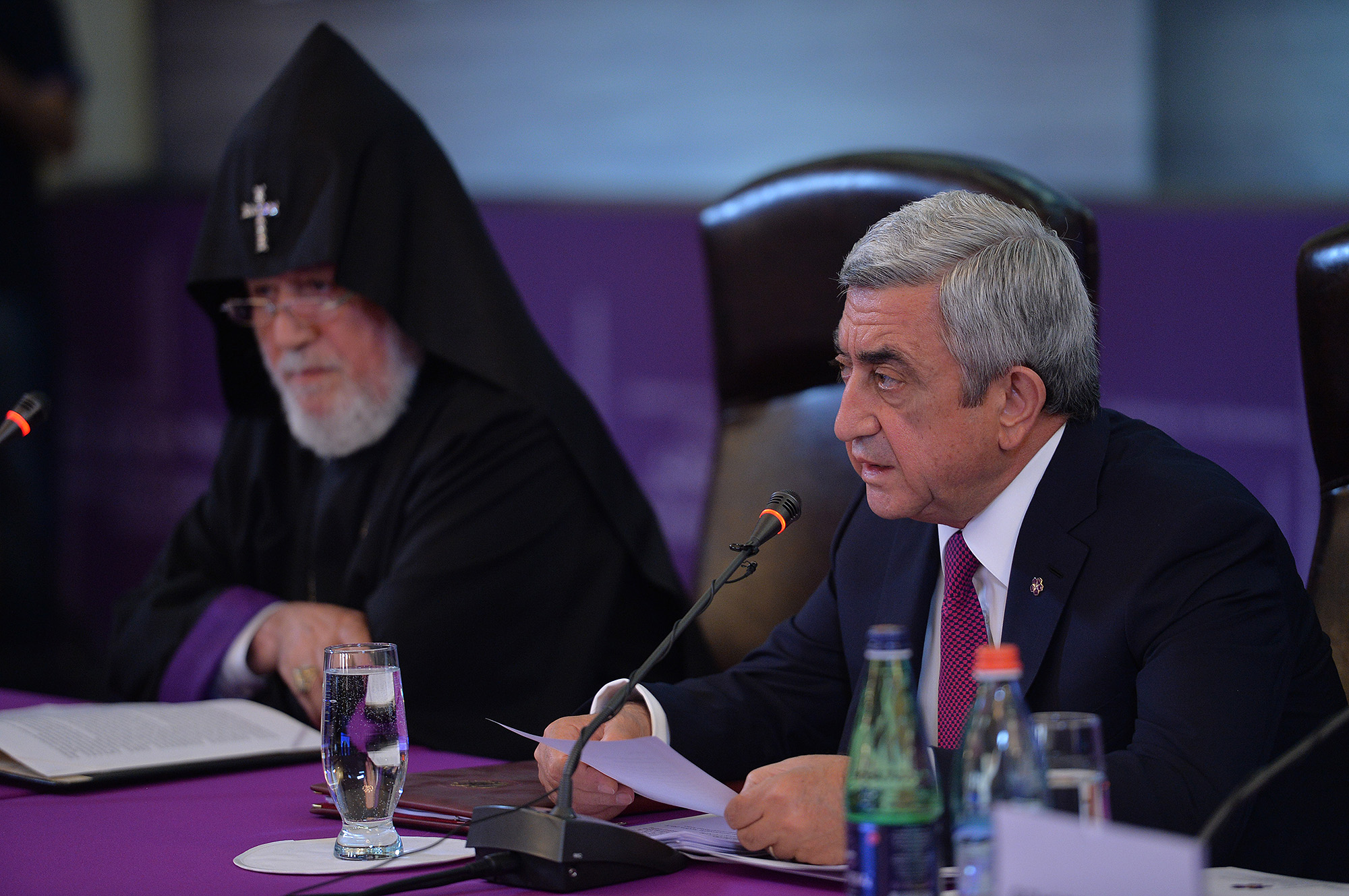Before going on to the discussion of the agenda items, the session participants kept a minute silence in tribute to the memory of commission member Nerses Bedros XIX, Armenian Catholic Catholicos-Patriarch of Cilicia, who made an exceptional contribution to the preservation of Armenian national identity in the diaspora. Armenia’s president informed the participants that in honor of the heavenly path covered by Patriarch Nerses Bedros XIX and taking into account his large-scale patriotic activities, he has issued a decree posthumously awarding him the Order of St Mesrop Mashtots. The president handed over the order to new commission member Krikor Bedros XX, the newly-elected Catholic Catholicos-Patriarch of Cilicia.