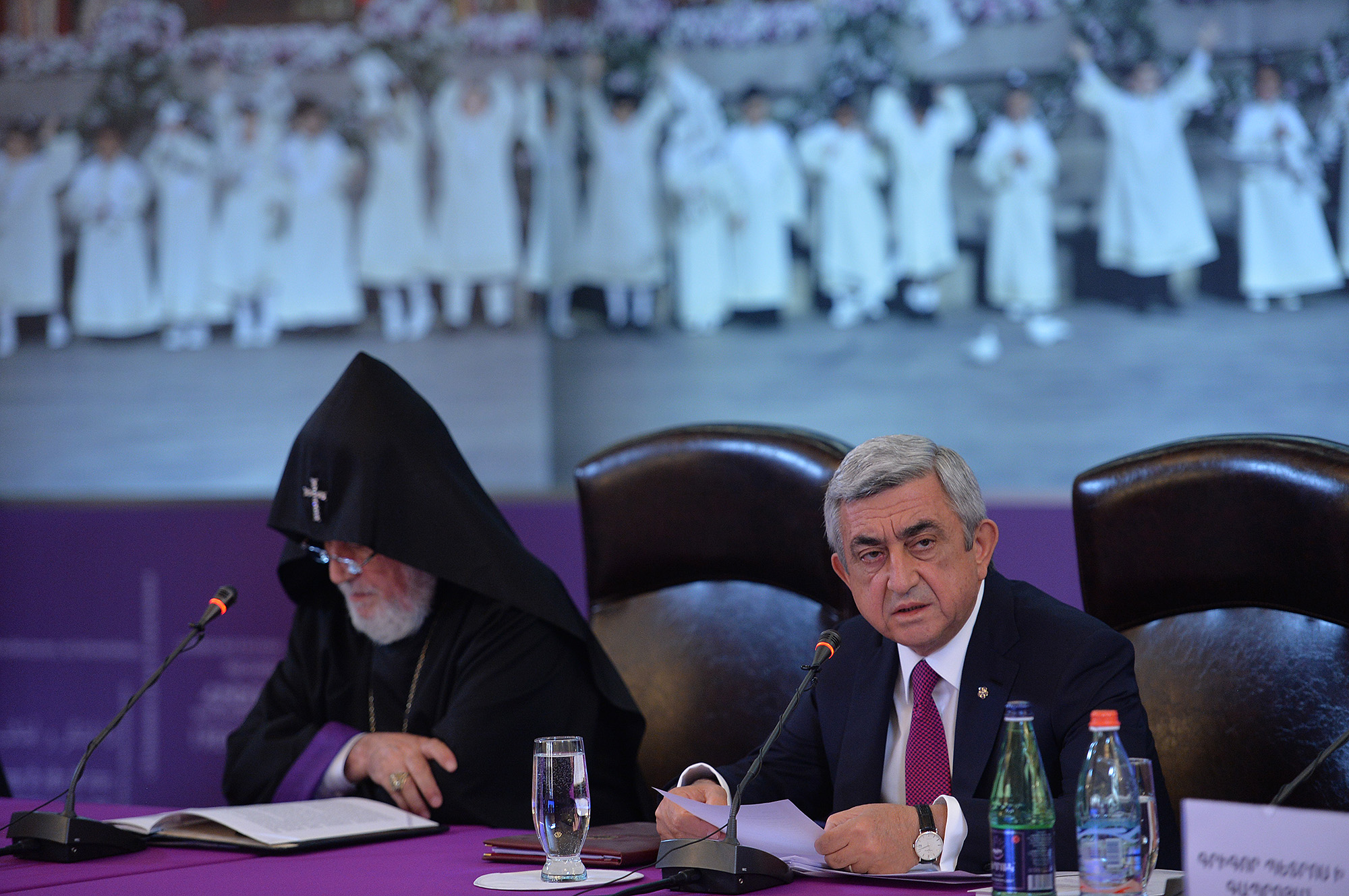 According to the president, the successors of Armenian genocide survivors share the fate of the peoples who once lent them a helping hand. They continue to suffer great human and material losses. Armenia’s president stressed that Armenia has opened its doors to everybody and has already accepted about 16.000 compatriots from Syria. Without exception all the Armenian public institutions are involved in the works aimed at dealing with Syrian-Armenians’ problems and facilitating the process of their integration into our society.