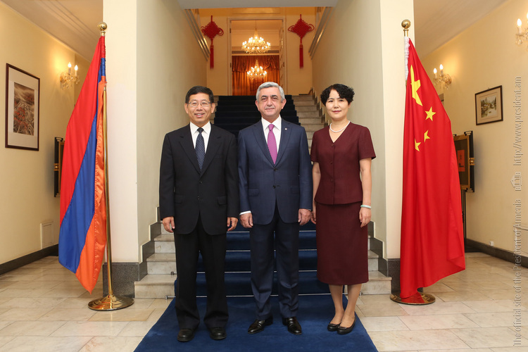 On the occasion of the PRC holiday, President Serzh Sargsyan visited today the PRC Embassy in the Republic of Armenia. On behalf of the Armenian people and on his own behalf, Armenia’s president congratulated Ambassador Tian Erlong and the embassy staff, and in the person of them, the friendly people of China on the occasion of the 66th anniversary of the founding of the People’s Republic of China.