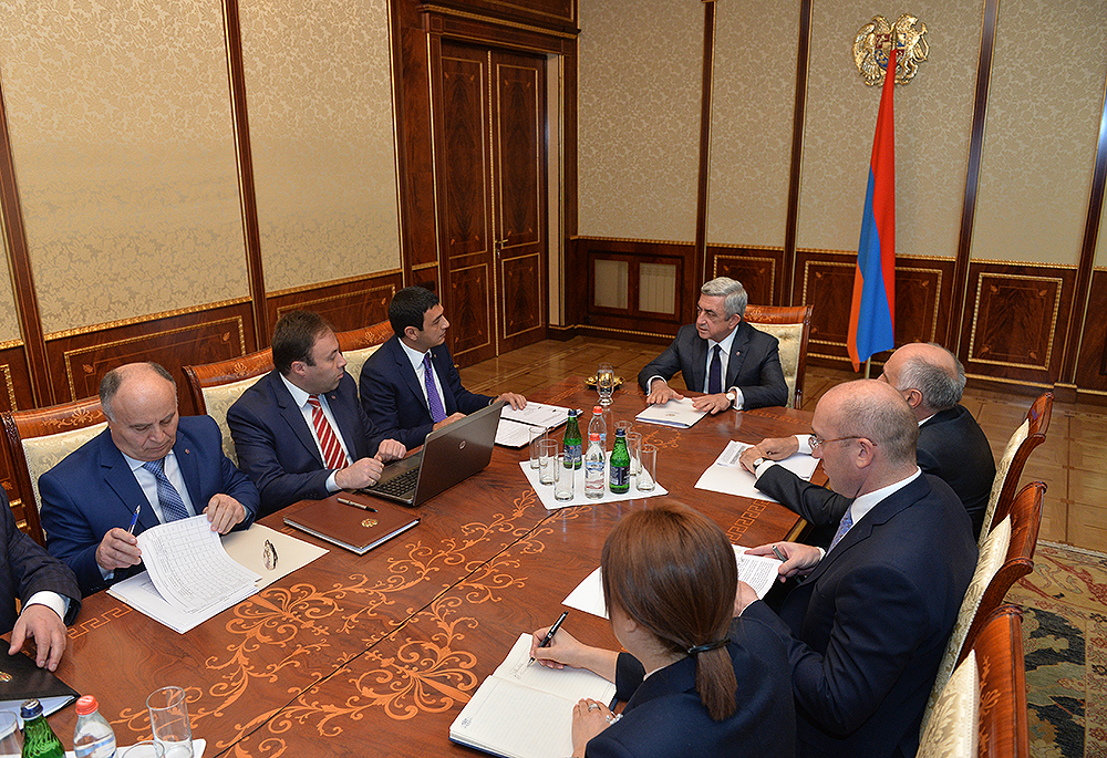 President Serzh Sargsyan held today a consultation with the Kotayk marzpet and marzpetaran staff to discuss the socio-economic situation of Kotayk Marz for 2014 and for the January-September of 2015 and the present problems, as well as to touch upon the marz priorities and development programs.