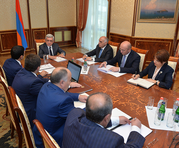At the end of the consultation President Serzh Sargsyan gave a number of instructions. Particularly, the Kotayk marzpet and the agriculture minister were instructed to develop a list of continued measures and a timetable to raise the level of purposefully exploiting the marz’s arable lands, presenting proposals to the RA government for approval,