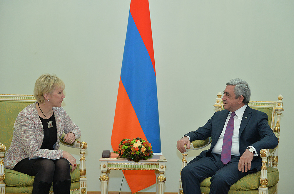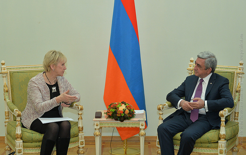 Speaking about the Armenia-EU cooperation, Serzh Sargsyan underscored that as a friendly state Sweden has a considerable role in strengthening the relations between Armenia and the European Union. Foreign Minister Margot Wallström assured that Armenia may continue to count of Sweden’s assistance and be assured that her delegation has arrived to Armenia as a friend of the EU Eastern Partnership and the region. The Foreign Minister of Sweden expressed view that cooperation in the mentioned format is yet another opportunity for strengthening the bilateral ties.