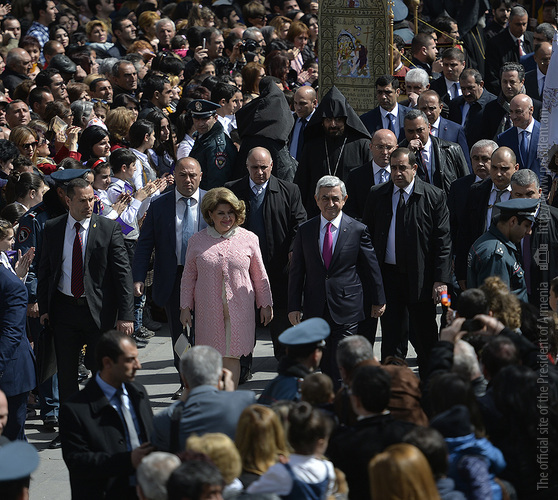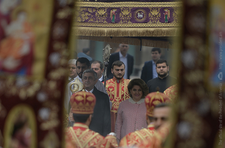 In the Mother See of Holy Etchmiadzin, President Serzh Sargsyan and Mrs. Rita Sargsyan attended the Patriarchal Divine Liturgy celebrated on the occasion of Easter – the Glorious Resurrection of Our Lord Jesus Christ.