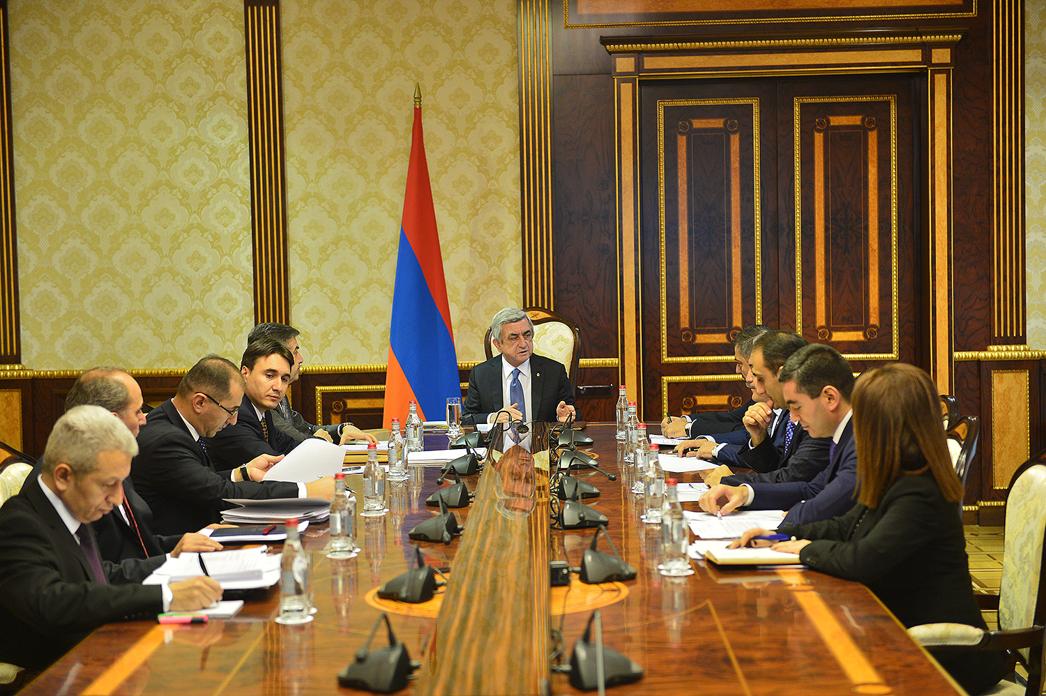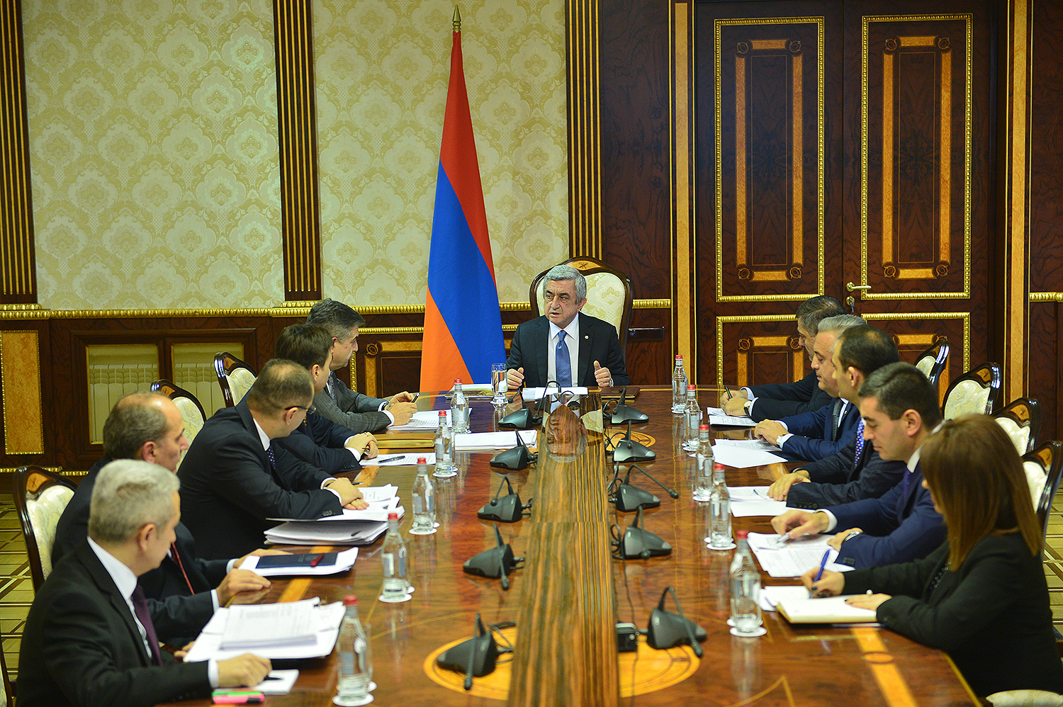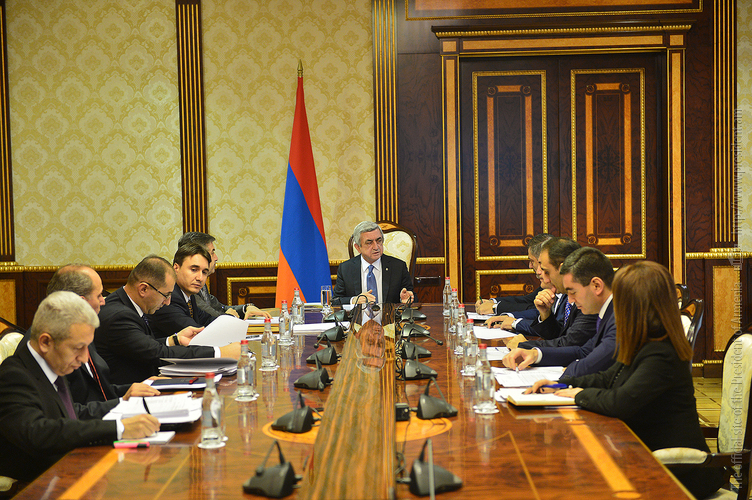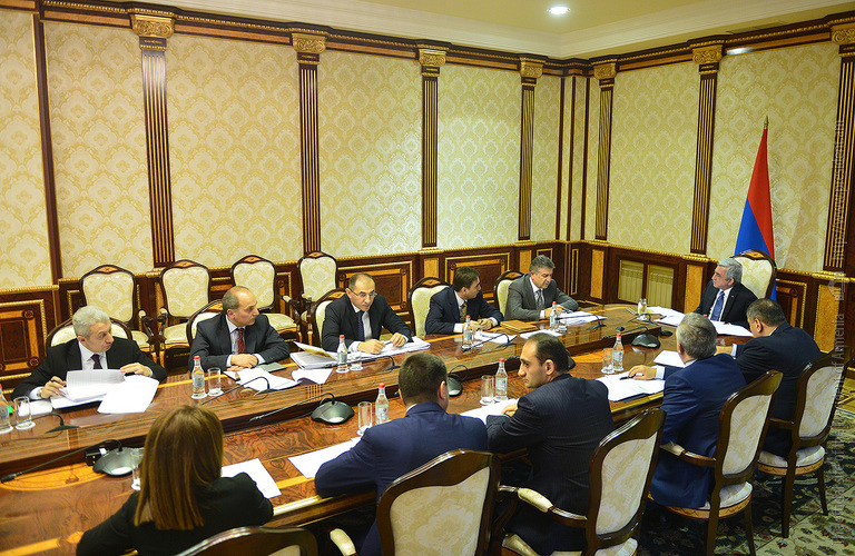 President Serzh Sargsyan invited today a meeting on the macroeconomic developments in Armenia and indicators of the state budget for year 2017. Minister of Finance Vardan Aramian presented the expectative and macroeconomic annual indicators for year 2016, state budget streams, including budget revenues and expectative indicators of spending, deviation from the programed indicators and pertinent explanations. The Minister of Finance presented also this phase of the draft state budget for year 2017, existing risks, possible scenarios to manage them as well as gave information on the proposals with regard to the state budget 2017 received in the wake of the discussions at the National Assembly.