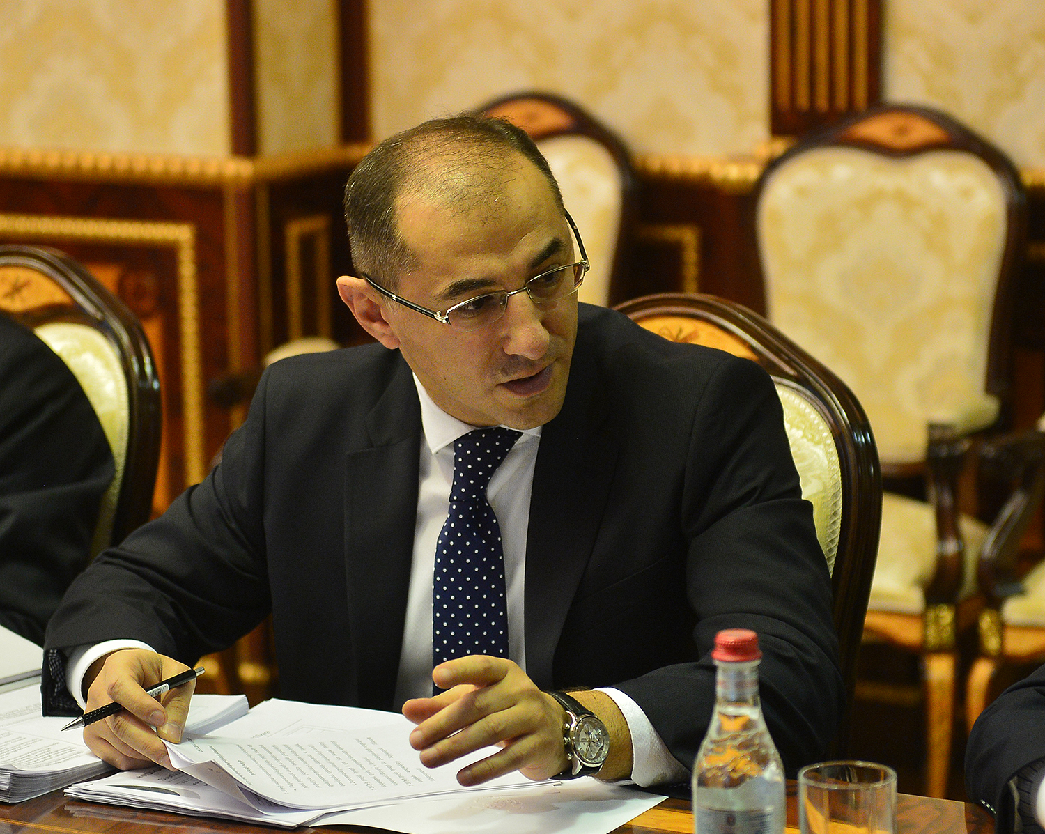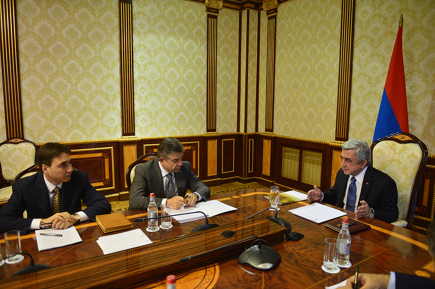 Present at the meeting were Prime Minister Karen Karapetian, Vice Prime Minister, Minister for International Economic Integration and Reforms Vache Gabrielian, Head of Presidential Administration Armen Gevorkian, Chairman of the RA Central Bank Arthur Javadian, Minister of Finance Vardan Aramian, Chief Advisor to the President Aram Gharibian, Head of State Revenue Committee Vardan Harutyunian, First Deputy Minister of Finance Atom Janjaghuzian, Deputy Head of State Revenue Committee Vakhtang Mirumian.