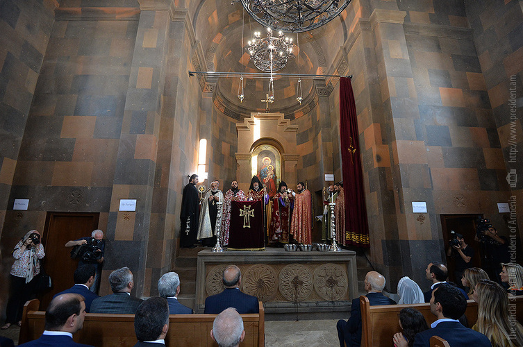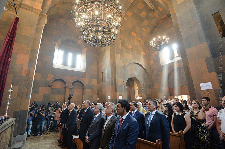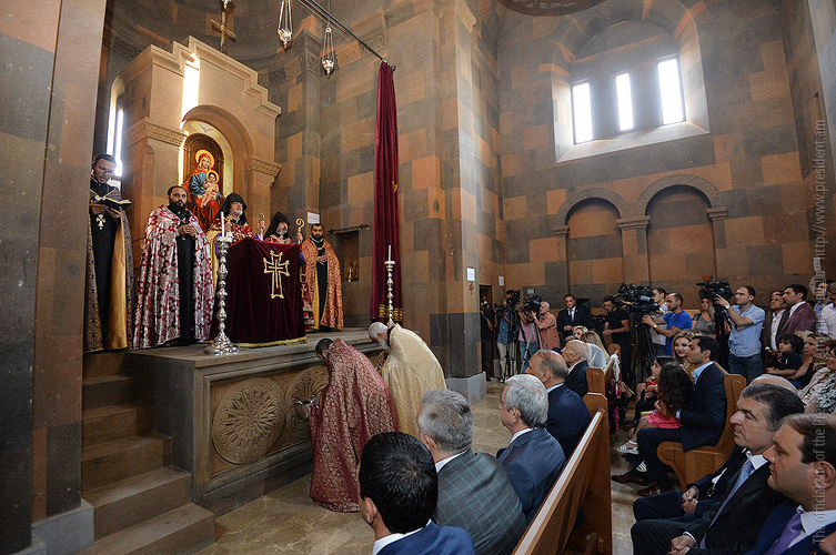 President Serzh Sargsyan attended today the consecration of the newly built St. Sargis Church in Yeghvard, which is a benefaction of the Khachatryan family.