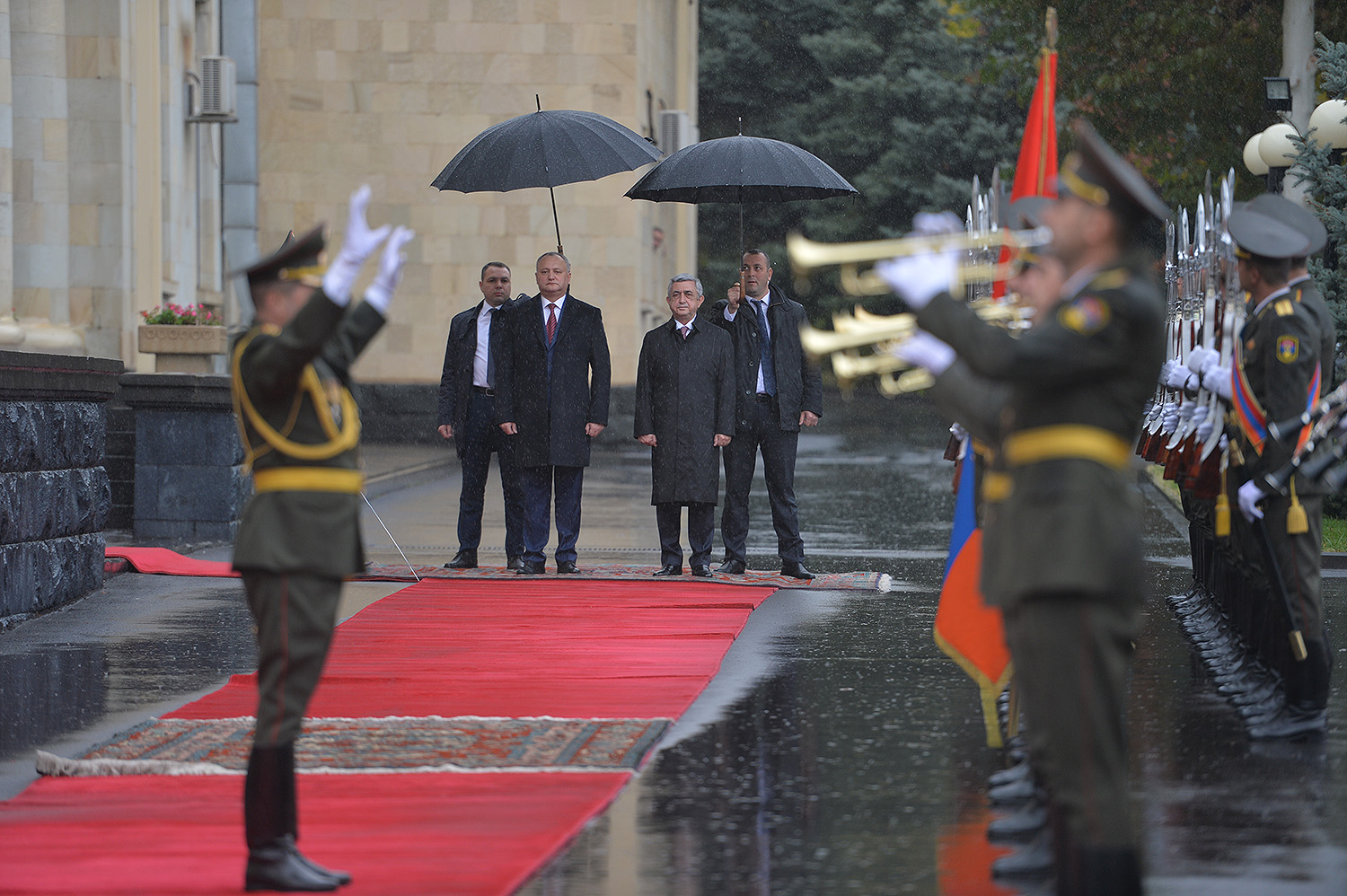 The official farewell ceremony for Moldovan President Igor Dodon, who arrived in Armenia on official visit, was held today at the Presidential Palace. During their private meeting, the leaders of the two countries appreciated the results of negotiations, which will give new impetus to the development of Armenian-Moldovan friendly relations and the deepening of cooperation in the spheres of mutual interest.