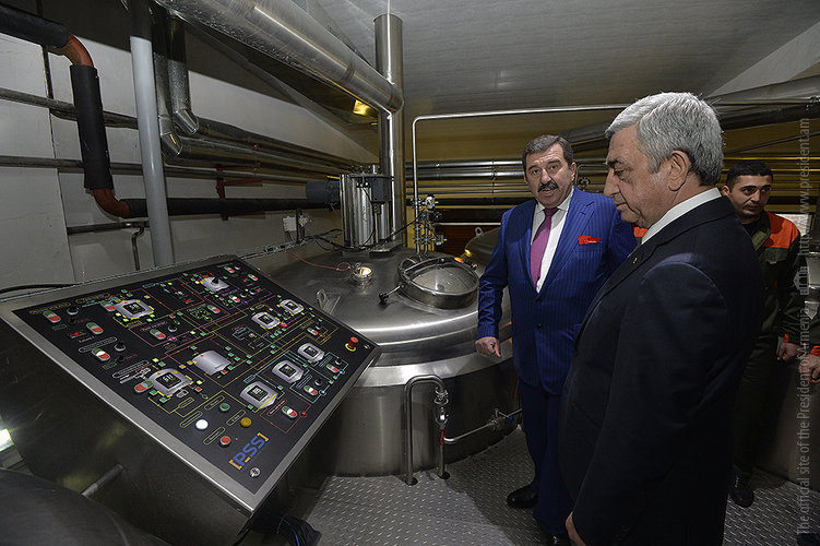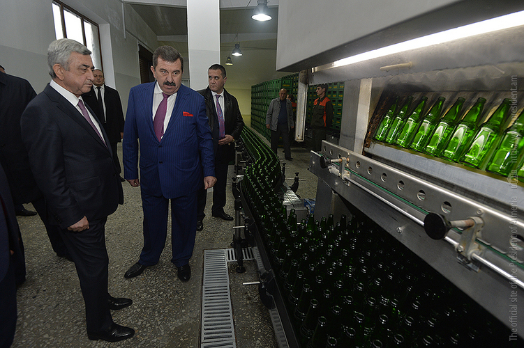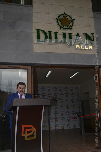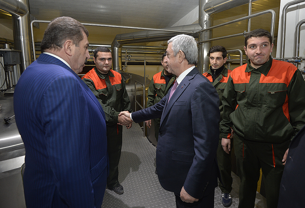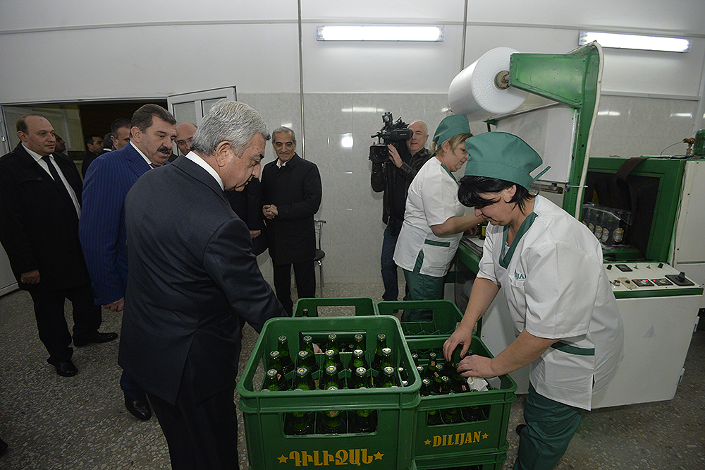 President Serzh Sargsyan paid a working visit to Dilijan, Tavush Marz, where he attended the opening of the Dilijan beer factory. Accompanied by the Minister of Economic Development and Investments, factory management and guests, The President toured the newly opened factory to get acquainted with the work done, the investments made and the jobs created at Dilijan beer factory, which is owned by H & T Hakobyans Company.
