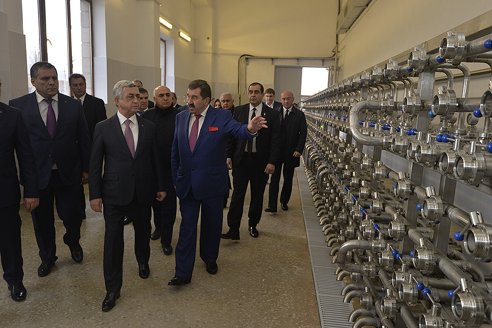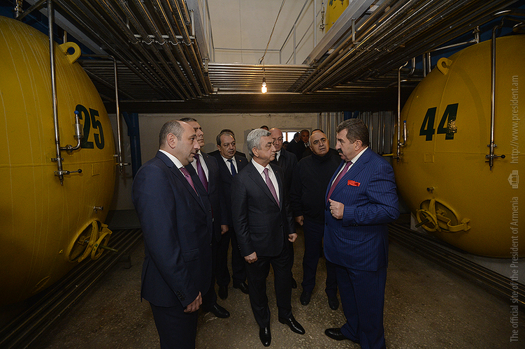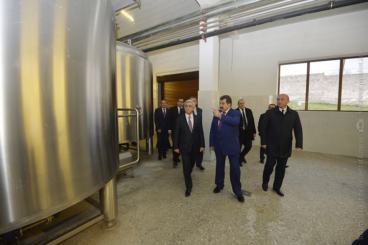 The President was told that the nearly AMD2.5 billion-worth investment project is expected to have an annual capacity of 10 million liters. Started as early as in April, 2013, the construction came to completion in September, 2017. The factory itself was commissioned on August 15.