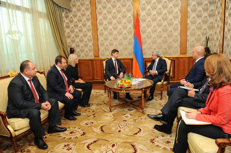 Today, President Serzh Sargsyan received a delegation of Russia’s ruling United Russia Party, a majority political faction in the State Duma of the Federal Assembly of the Russian Federation. The delegation features members of the International Affairs Committee of the State Duma.
