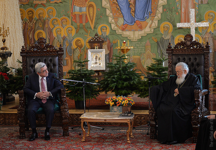 During the meeting, the Head of the Armenian State briefed the Catholicos-Patriarch on the results of yesterday’s meeting with President Margvelashvili, noting with satisfaction that key agreements had been reached. The Catholicos-Patriarch of All Georgia Ilia II asked President Sargsyan to convey his warm greetings and good wishes to the Catholicos of All Armenians.