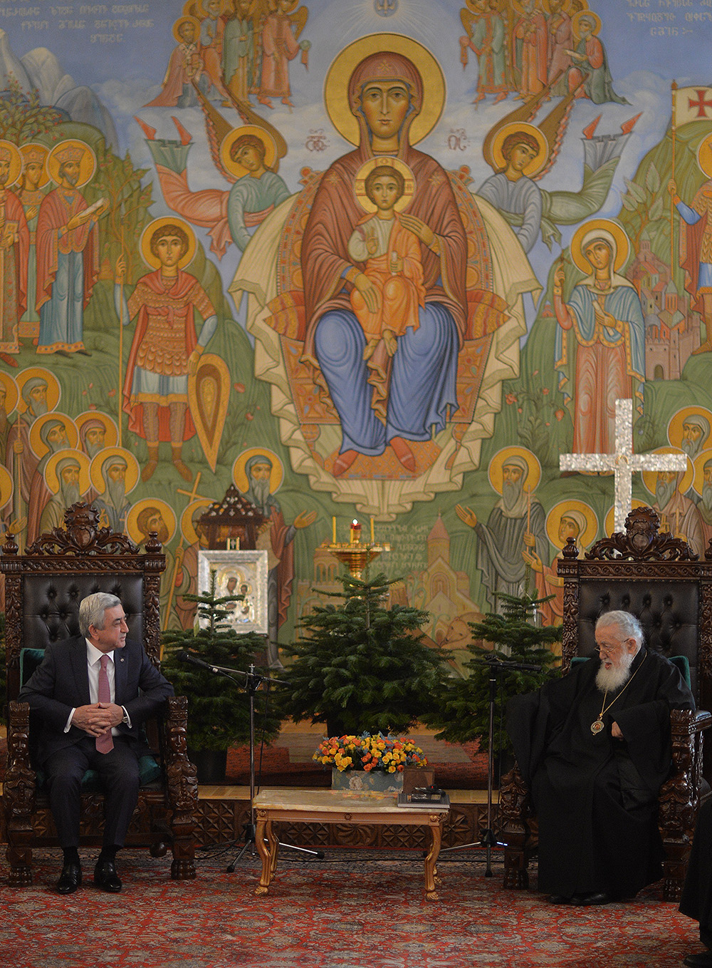 President Serzh Sargsyan and Catholicos Patriarch of All Georgia Ilia II stressed the important role of the Armenian Apostolic and Georgian Orthodox Churches in developing good-neighborly Armenian-Georgian relations.