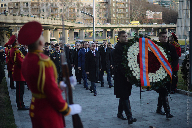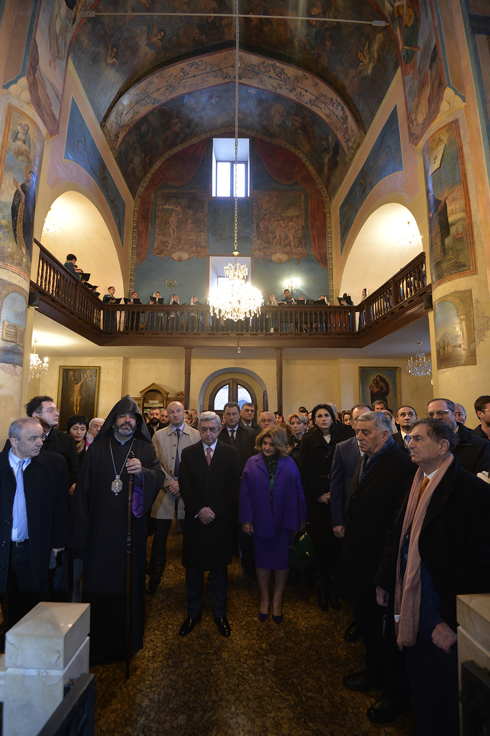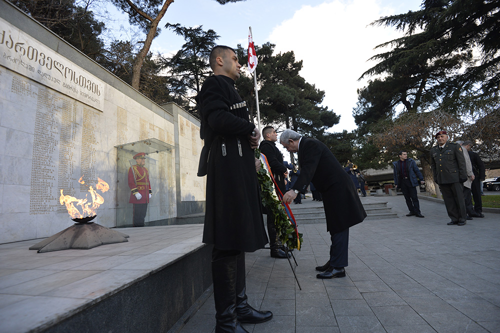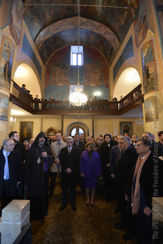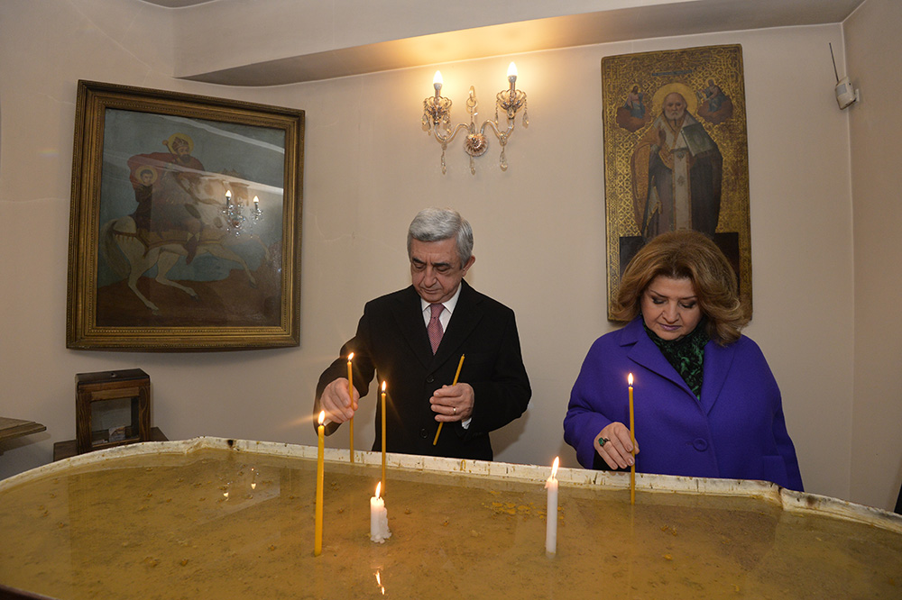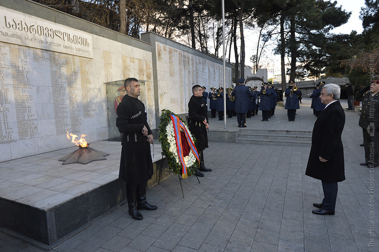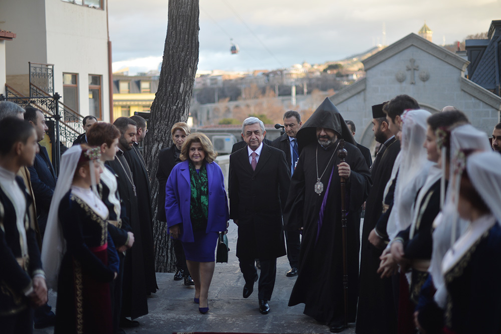 Within the framework of his official visit to Georgia, before holding the scheduled bilateral meetings, President Serzh Sargsyan joined the representatives of the Armenian community in Tbilisi to visit the Church of St. George of the prelacy of the Georgian Diocese of the Armenian Apostolic Church this morning, after which he went to Heroes Square and laid a wreath at the memorial and paid tribute.