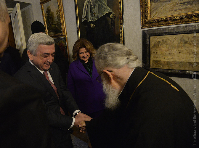 The President expressed gratitude to the Catholicos-Patriarch of All Georgia for his prayers for the sake of preserving and deepening the friendship of the Armenian and Georgian peoples. President Sargsyan and Ilia II stressed the importance of relations between the State and the Church. The President of Armenia highly appreciated the role of the Armenian Church in the life of the Armenian people, especially as the Church replaced the State in the most difficult situations when statehood was absent by keeping up the people’s faith and national identity.