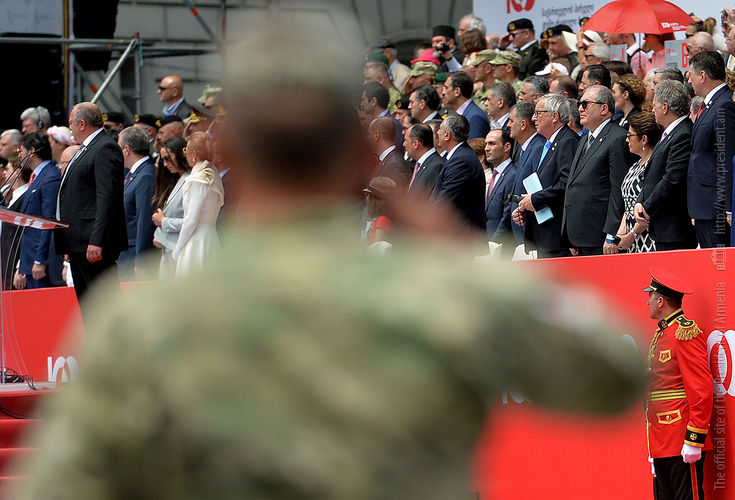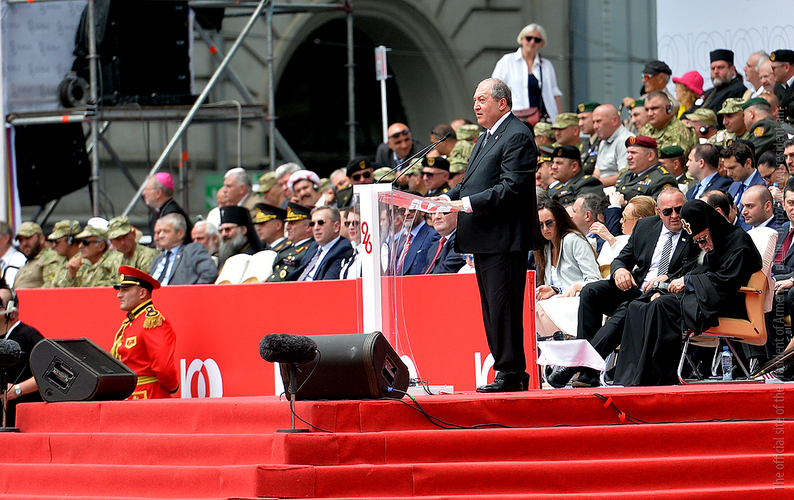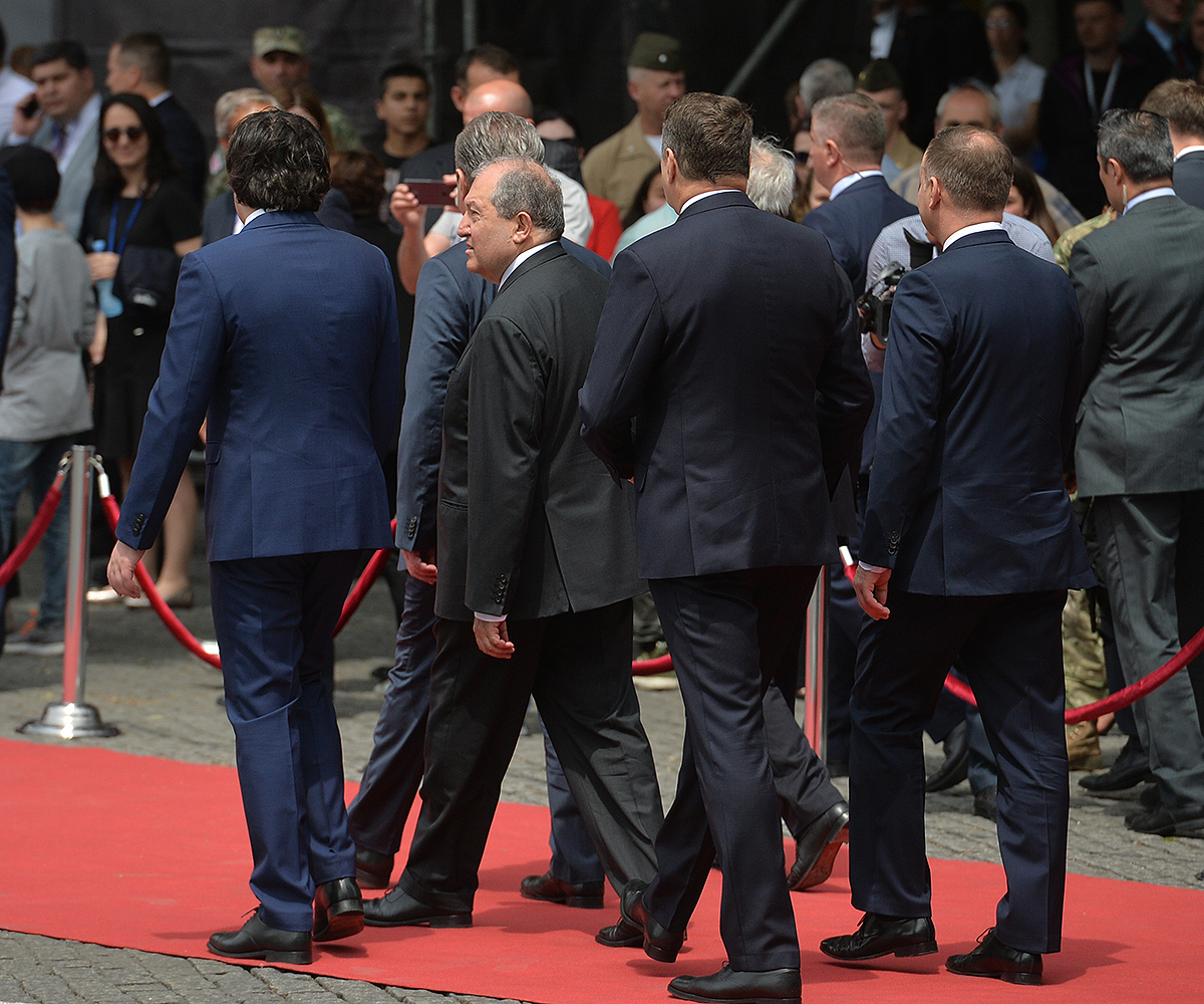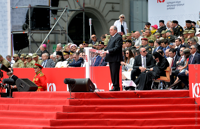 On May 26, President Armen Sarkissian was present at the festive event dedicated to the 100th anniversary of the First Democratic Republic of Georgia which took place at the Independence Square in Tbilisi.