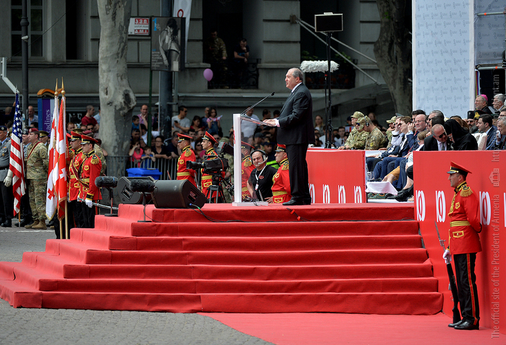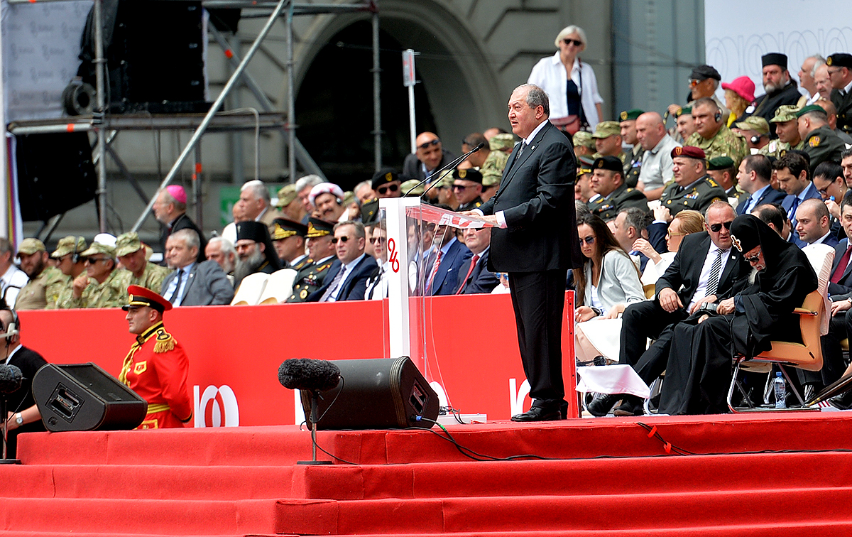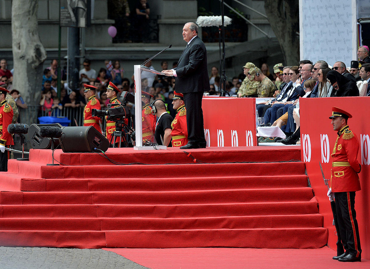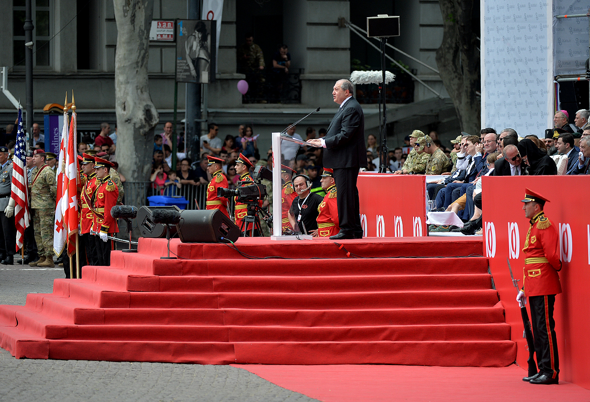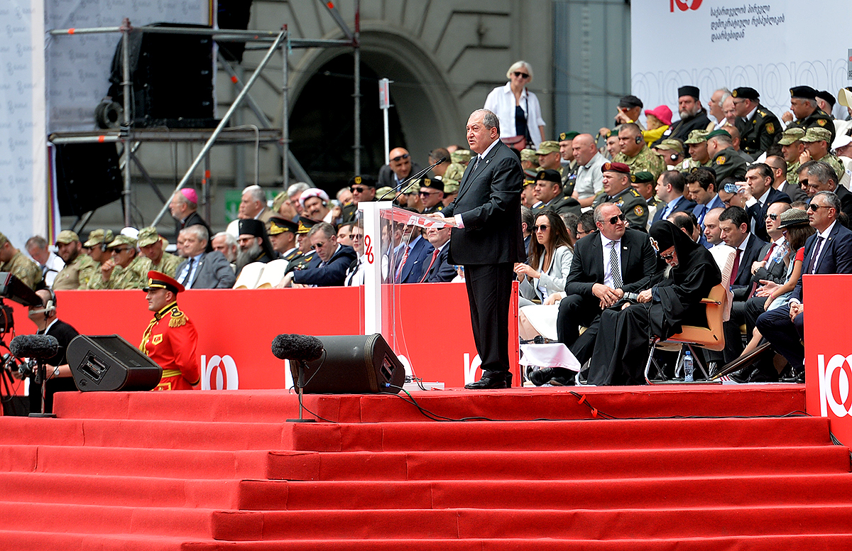 In his remarks, the President of Armenia warmly congratulated the friendly people of Georgia on the occasion of National holiday – the 100th anniversary of the restoration of state independence and noted that it was an honor for him to be present on that wonderful day here where Georgians and Armenians share the same glorious holiday, “in two days, on May 28 my country too will be celebrating the centennial of the First Republic.”