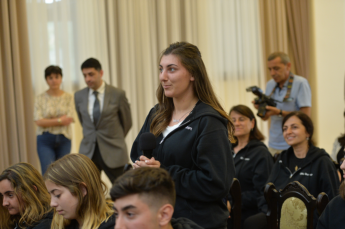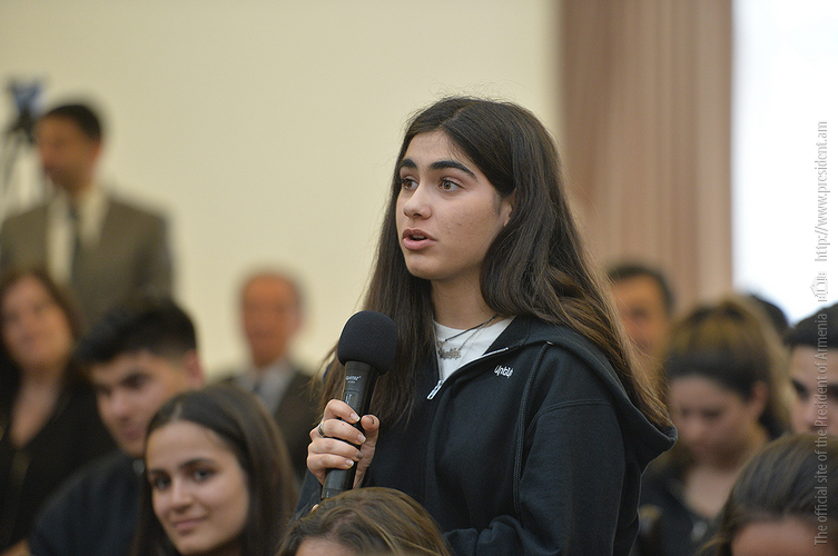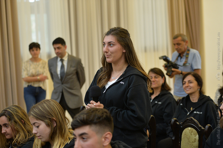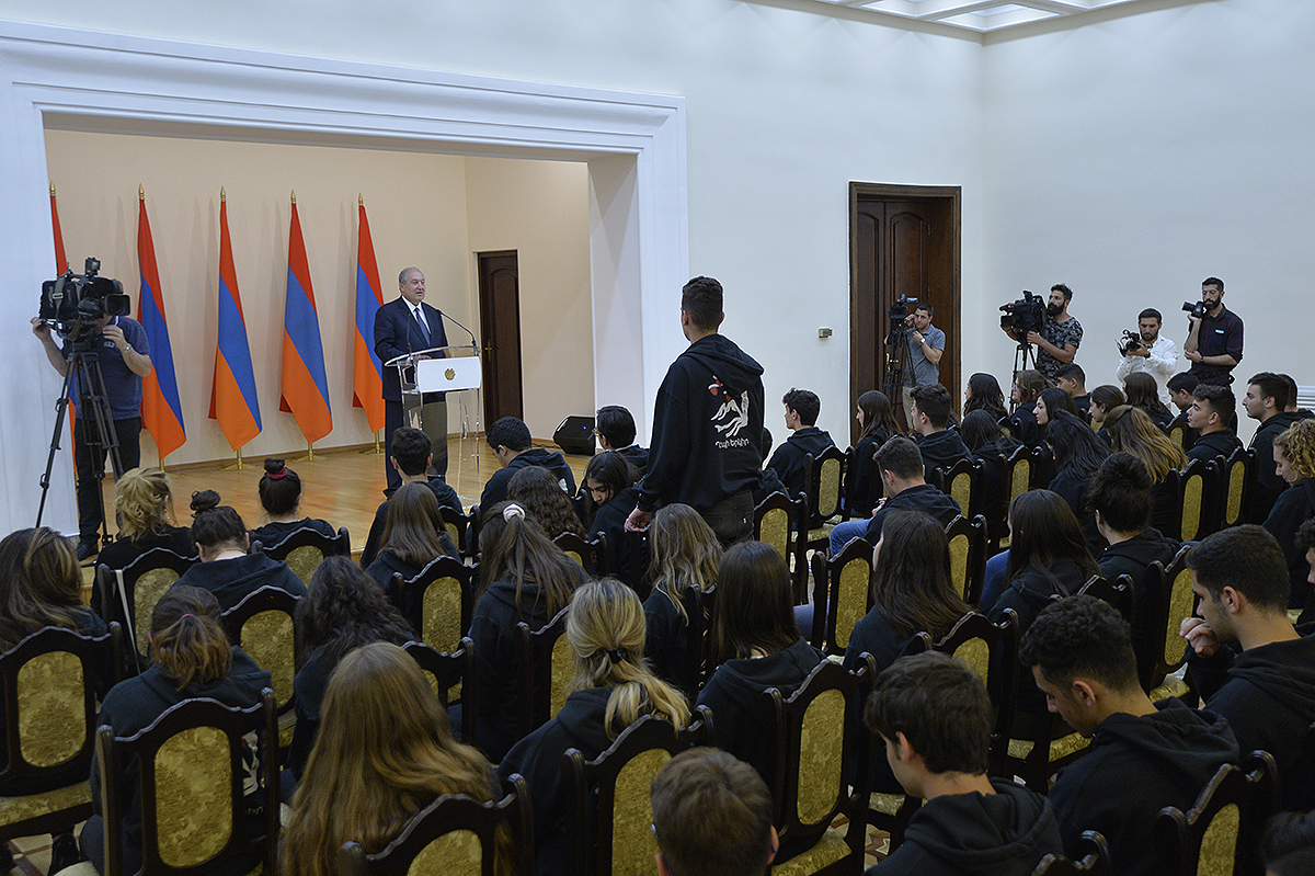 At the meeting, the students of the Armenian School noted that they were glad to visit Fatherland, have already visited Artsakh and shared their impressions. The President conversed with the students from Diaspora, listened to their views and opinions, responded to the inquires which were related mostly to the empowerment and development of Fatherland, attraction of Spyurk potential, etc.