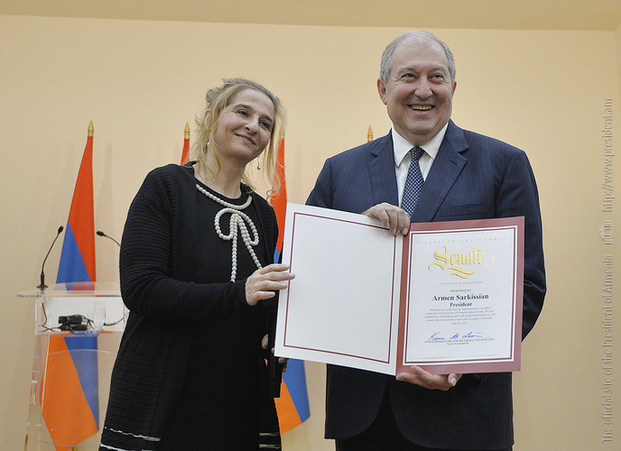 At the conclusion of the meeting, Paytsar Tovmassian conveyed to the President of Armenia congratulations of the President of California State Senate and added that generations raised in Spyurk are also ready to serve for Fatherland.