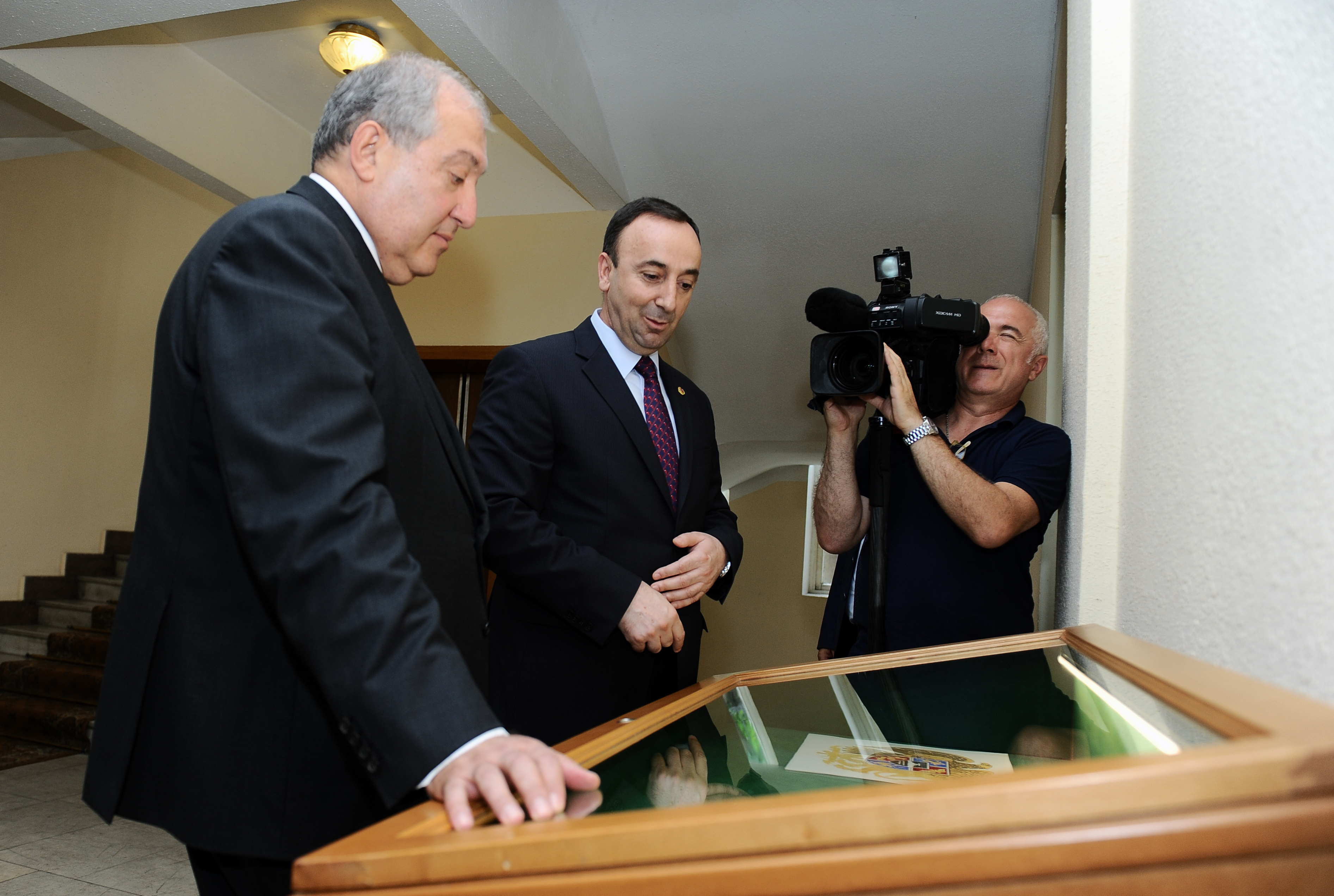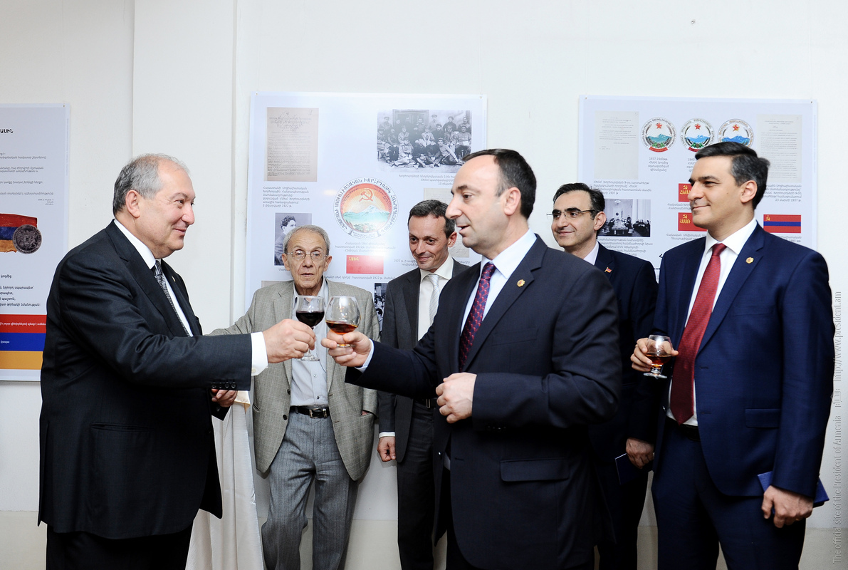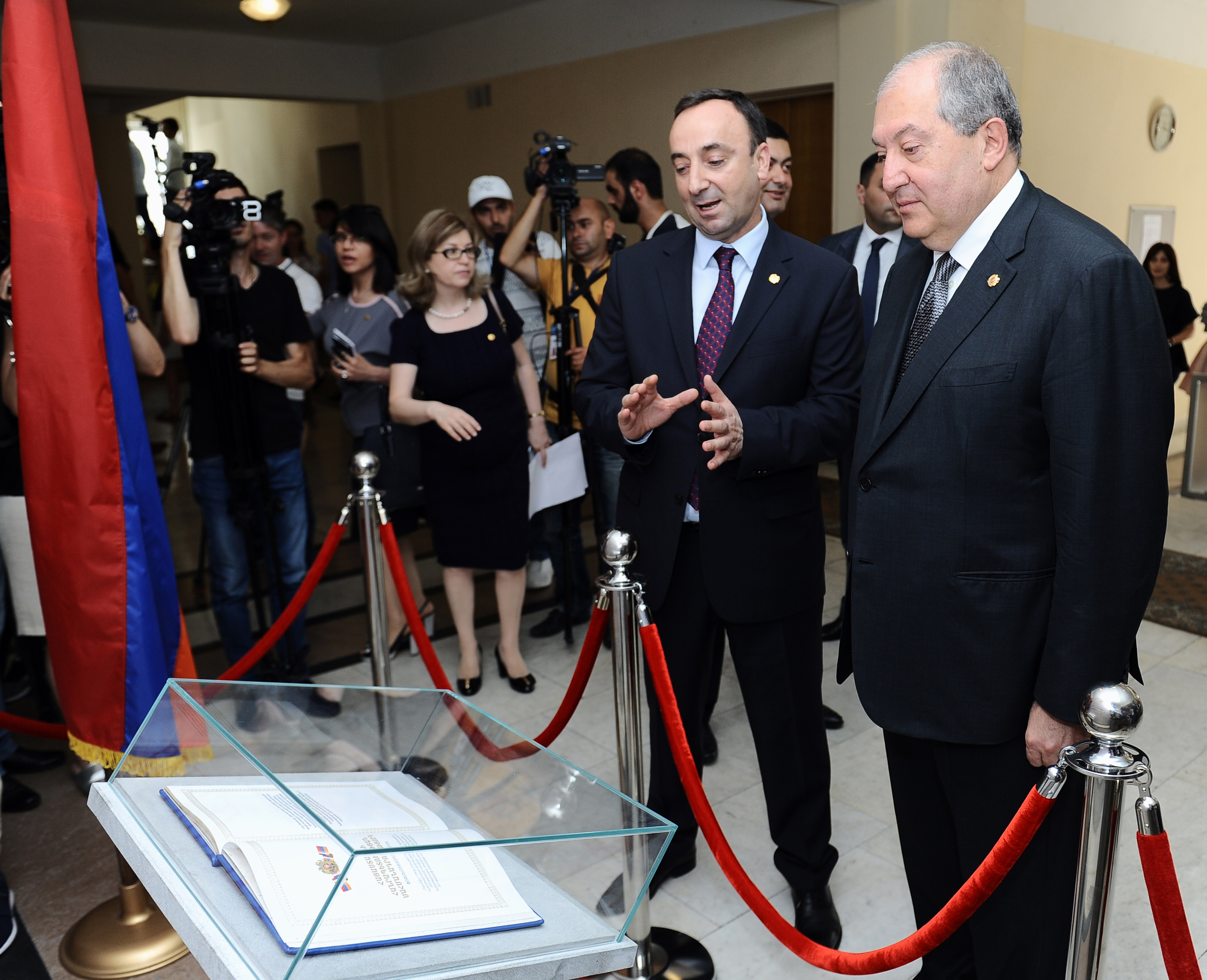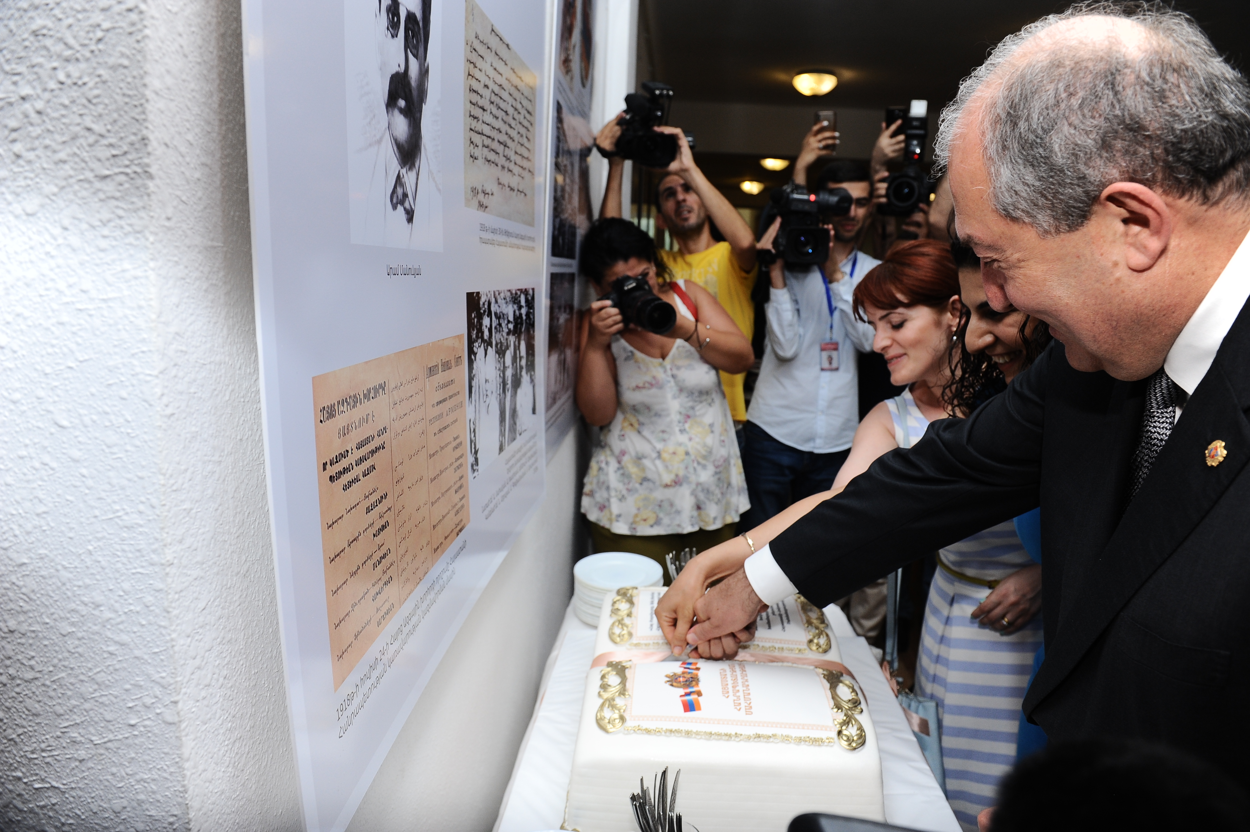 The President of Armenia observed the exhibition dedicated to the Constitution of Armenia and state symbols, participated at the reception and cut the festive cake.