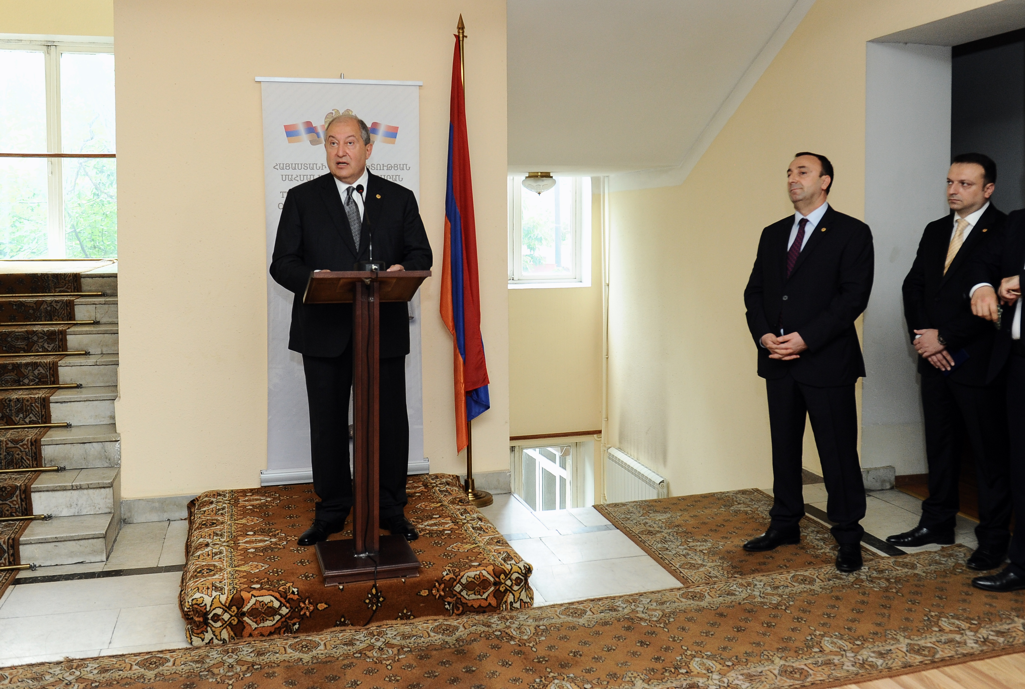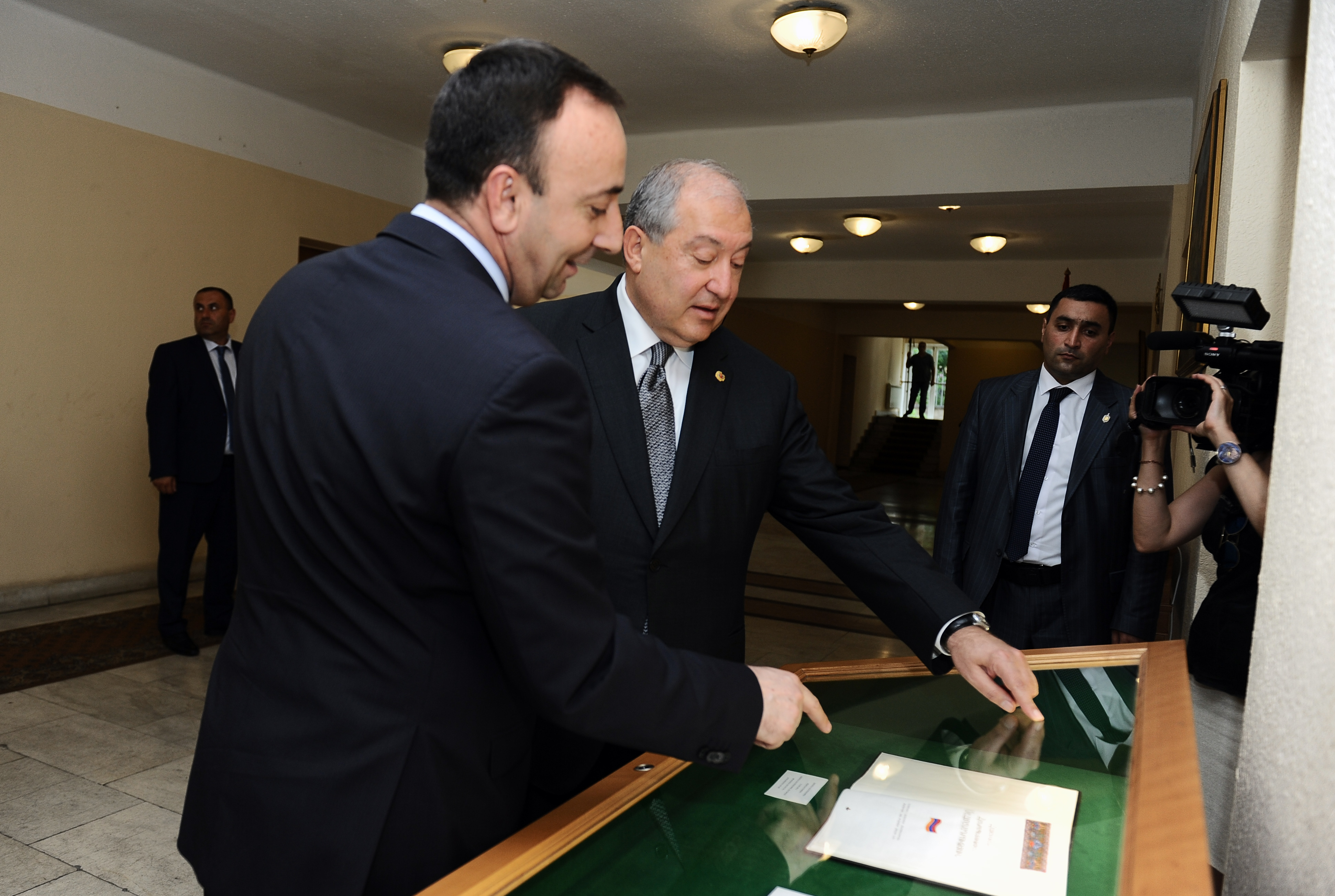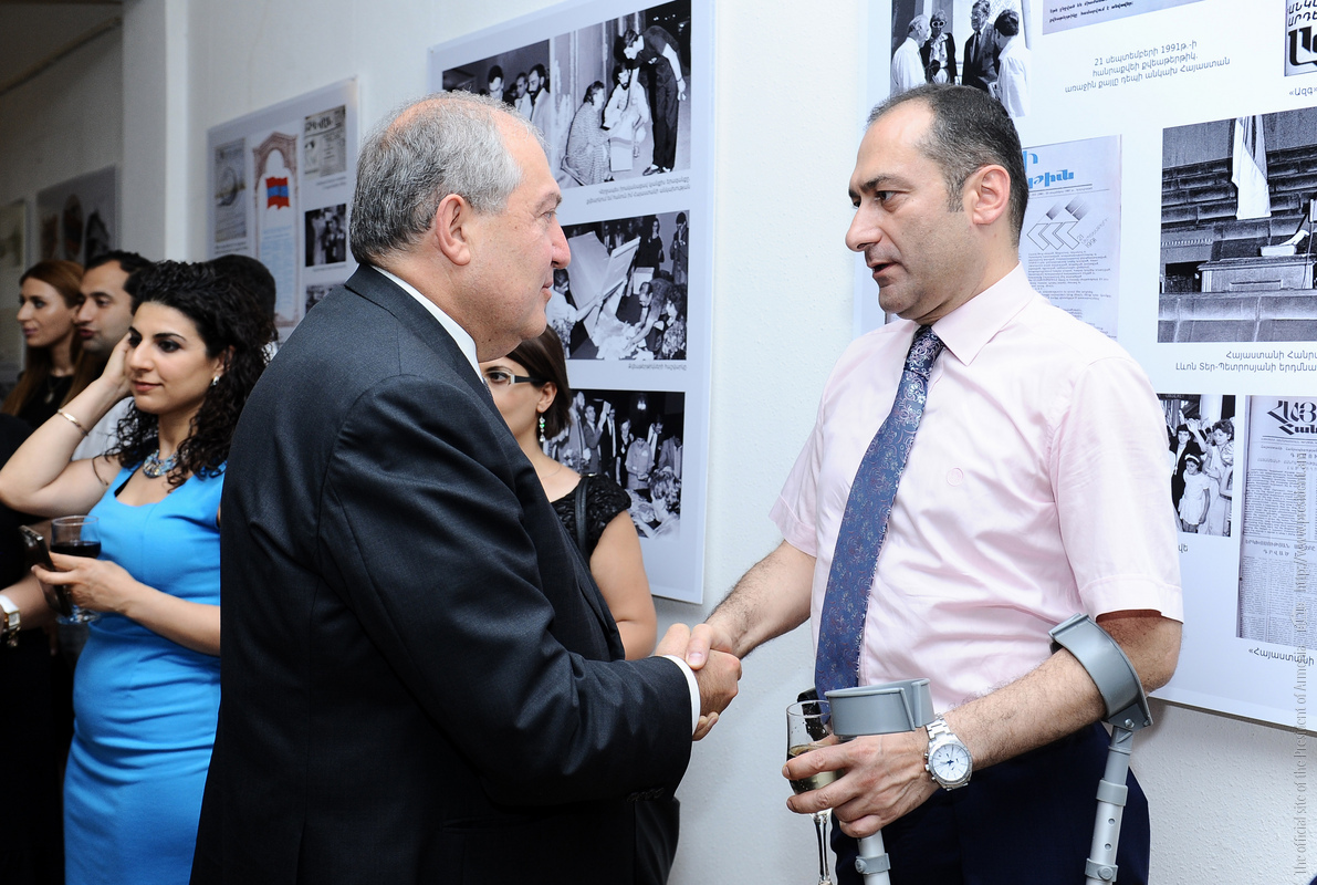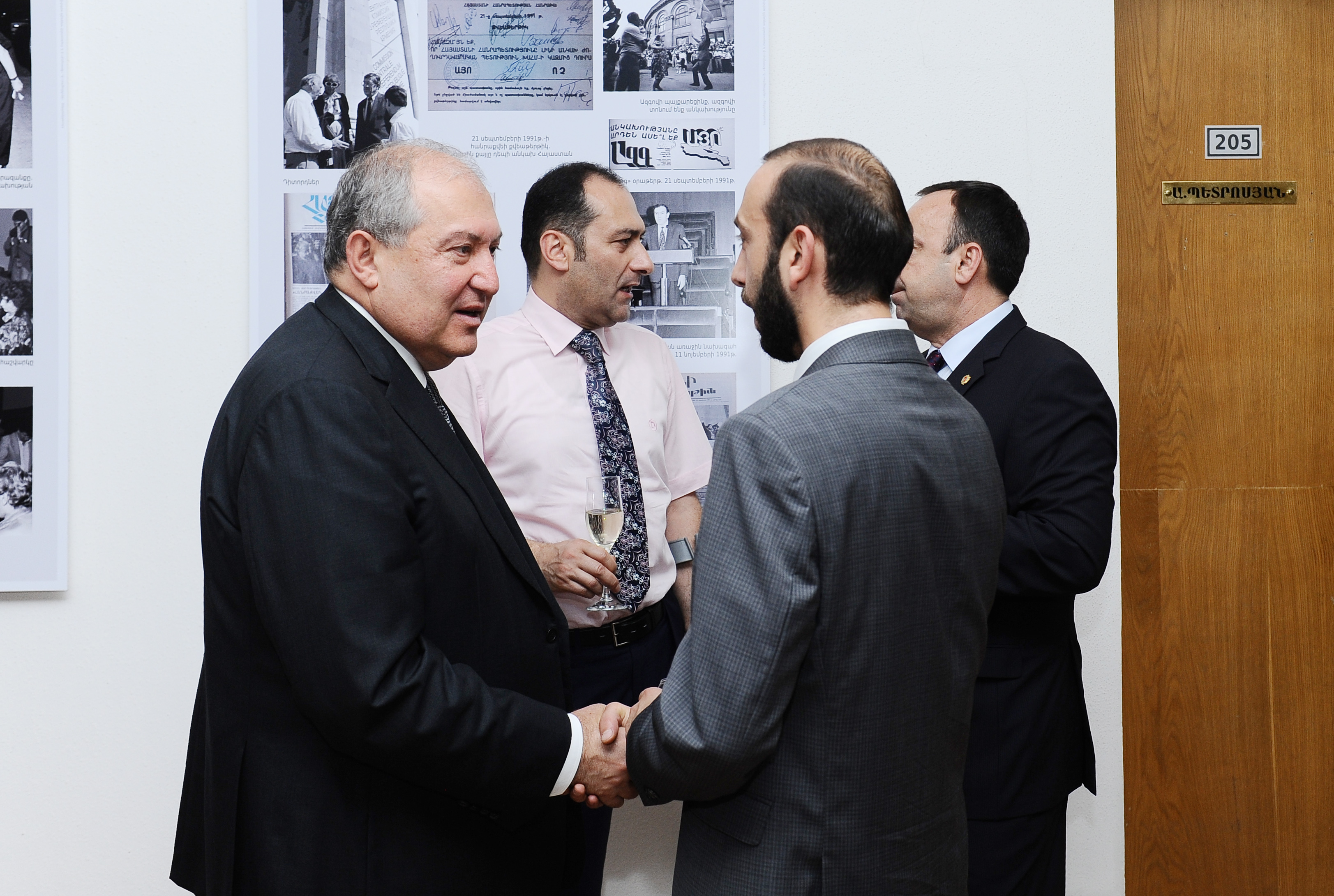 The President of Armenia observed the exhibition dedicated to the Constitution of Armenia and state symbols, participated at the reception and cut the festive cake.