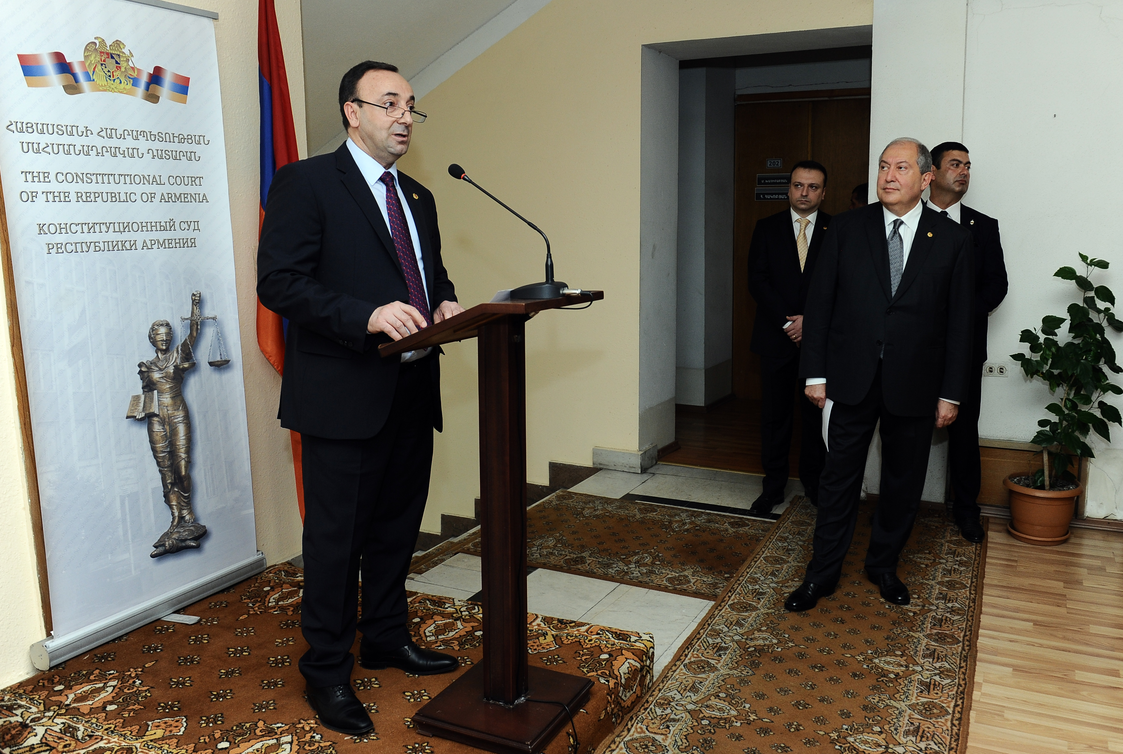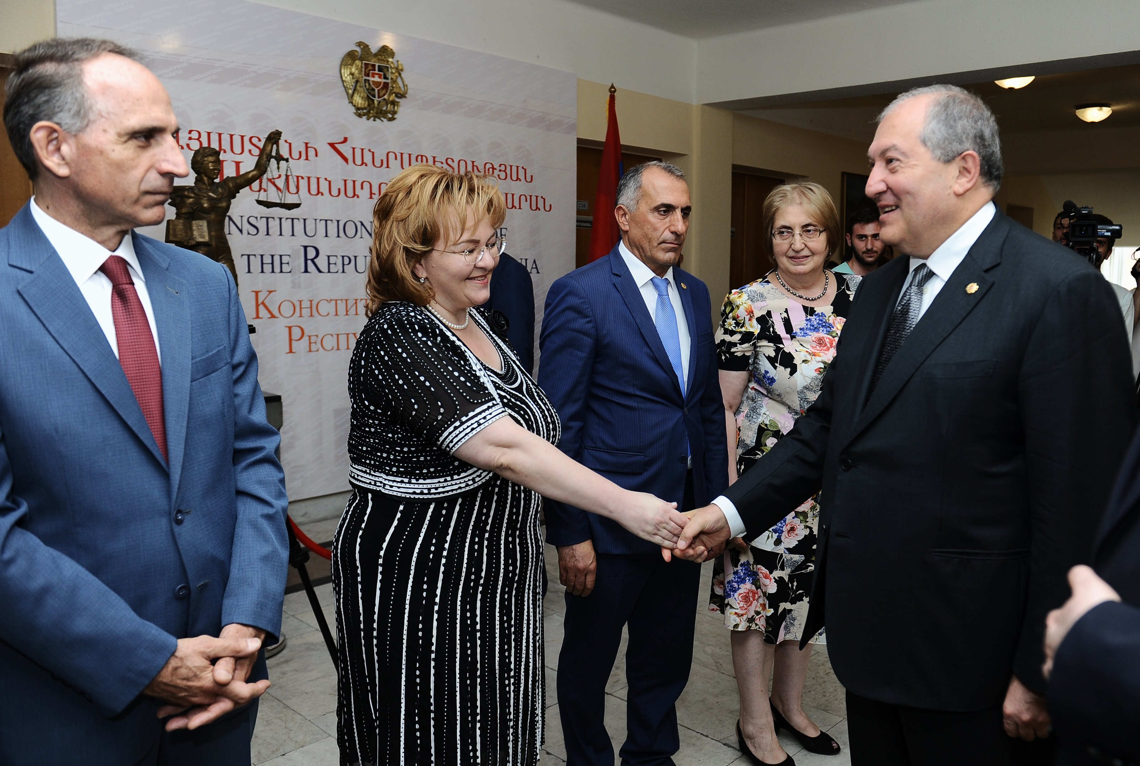 Today, President Armen Sarkissian participated at the festive events dedicated to the Constitution of the Republic of Armenia and state symbols which took place at the Constitutional Court.