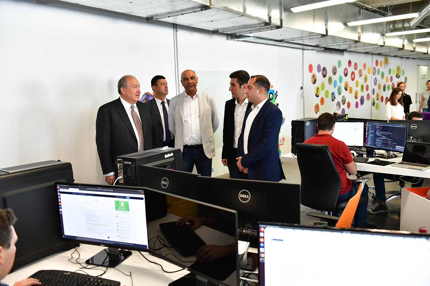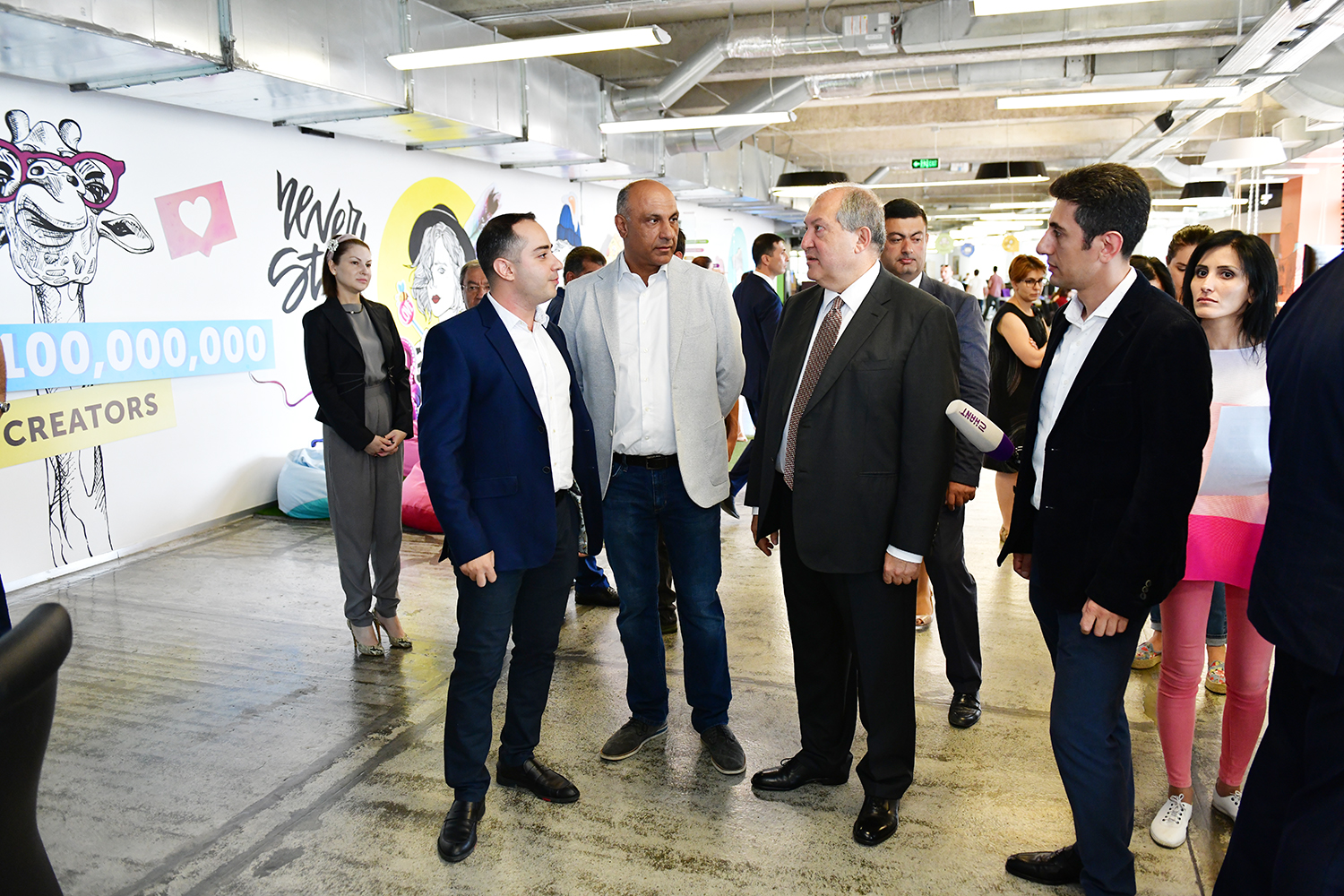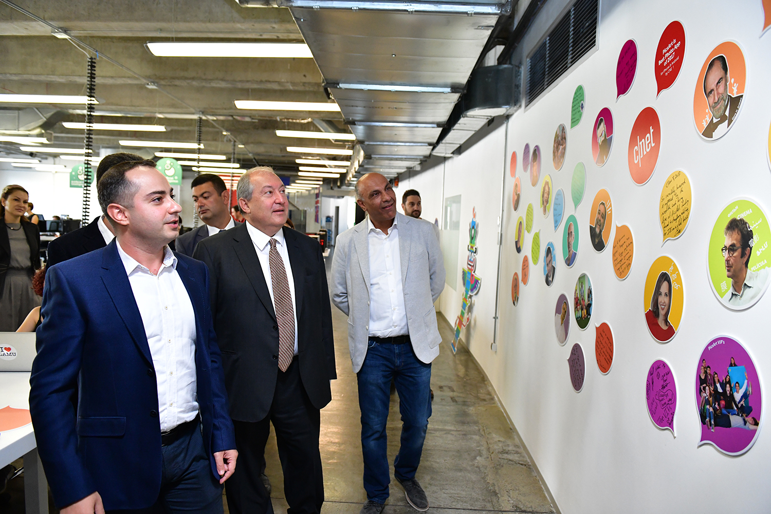 During the tour, the founder and Executive Director of the PicsArt Hovhannes Avoyan and General Director Michael Vardanian presented to Armen Sarkissian the particularities of the company, approaches of the management system, the structure, general policies, as well as the opportunities offered by the PicsArt application. It was noted that currently the application is accessible in 30 languages all over the world through the iOs, Android and Windows platforms. Each month, the application has more than 100 million active users, who create and edit over a one billion images and videos.