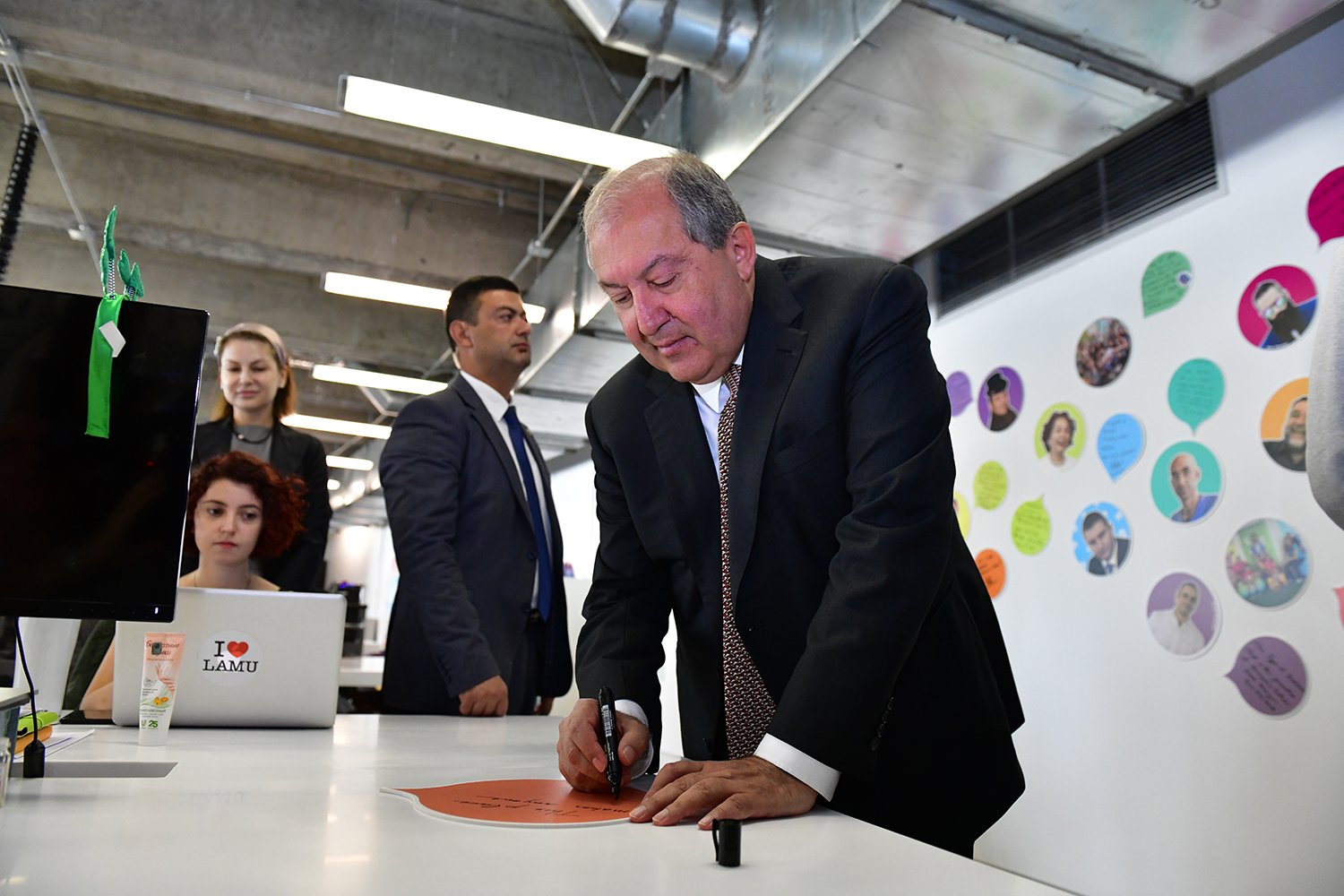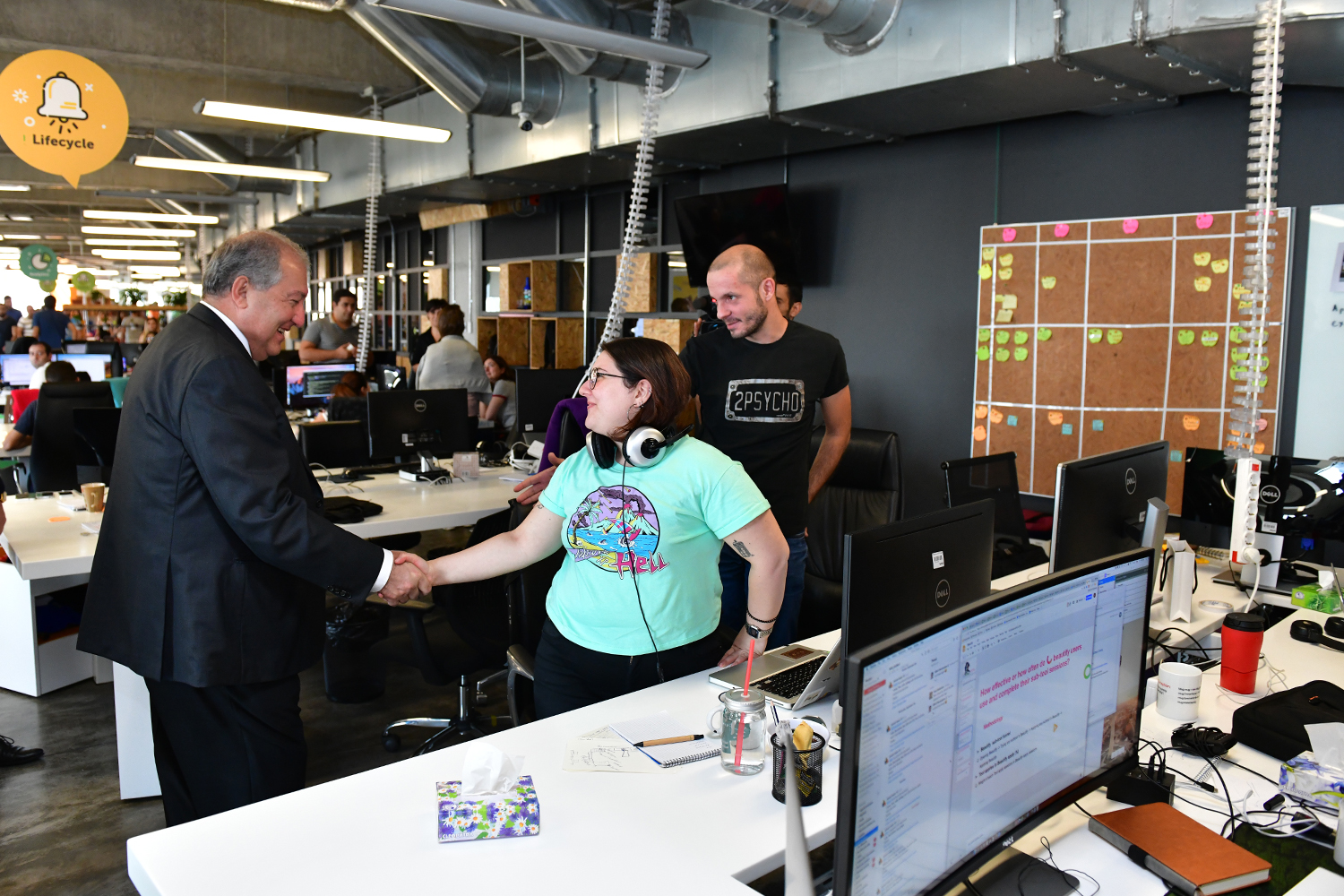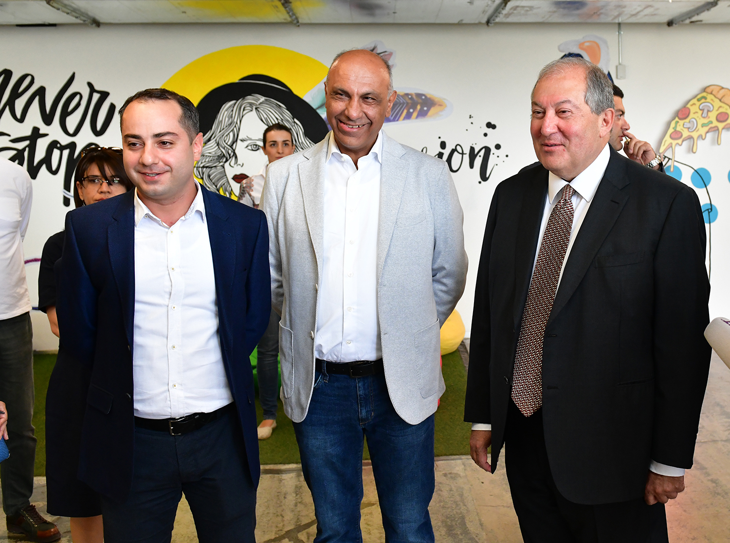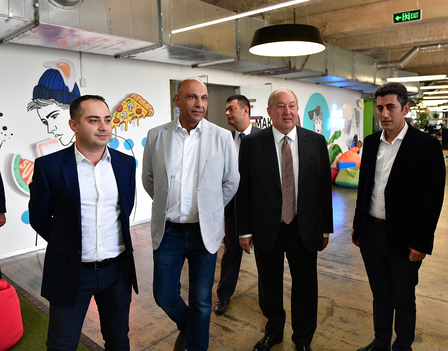 During the tour, the founder and Executive Director of the PicsArt Hovhannes Avoyan and General Director Michael Vardanian presented to Armen Sarkissian the particularities of the company, approaches of the management system, the structure, general policies, as well as the opportunities offered by the PicsArt application. It was noted that currently the application is accessible in 30 languages all over the world through the iOs, Android and Windows platforms. Each month, the application has more than 100 million active users, who create and edit over a one billion images and videos.