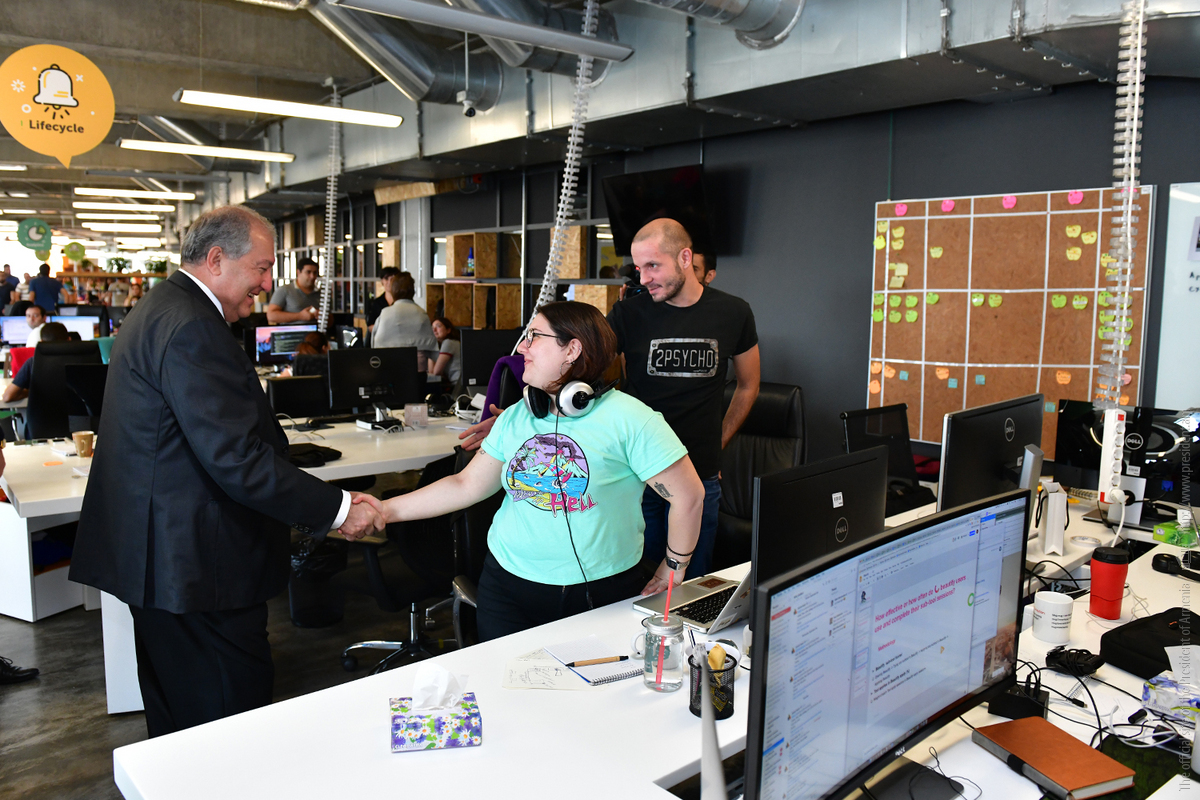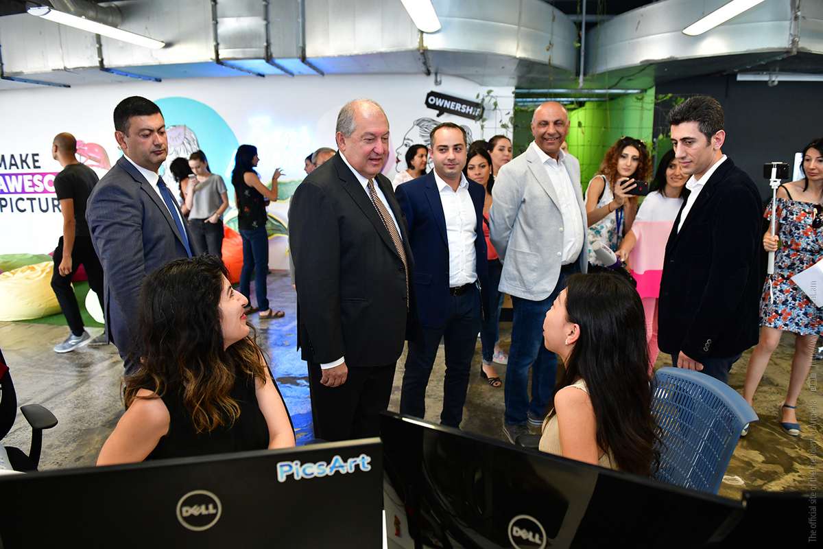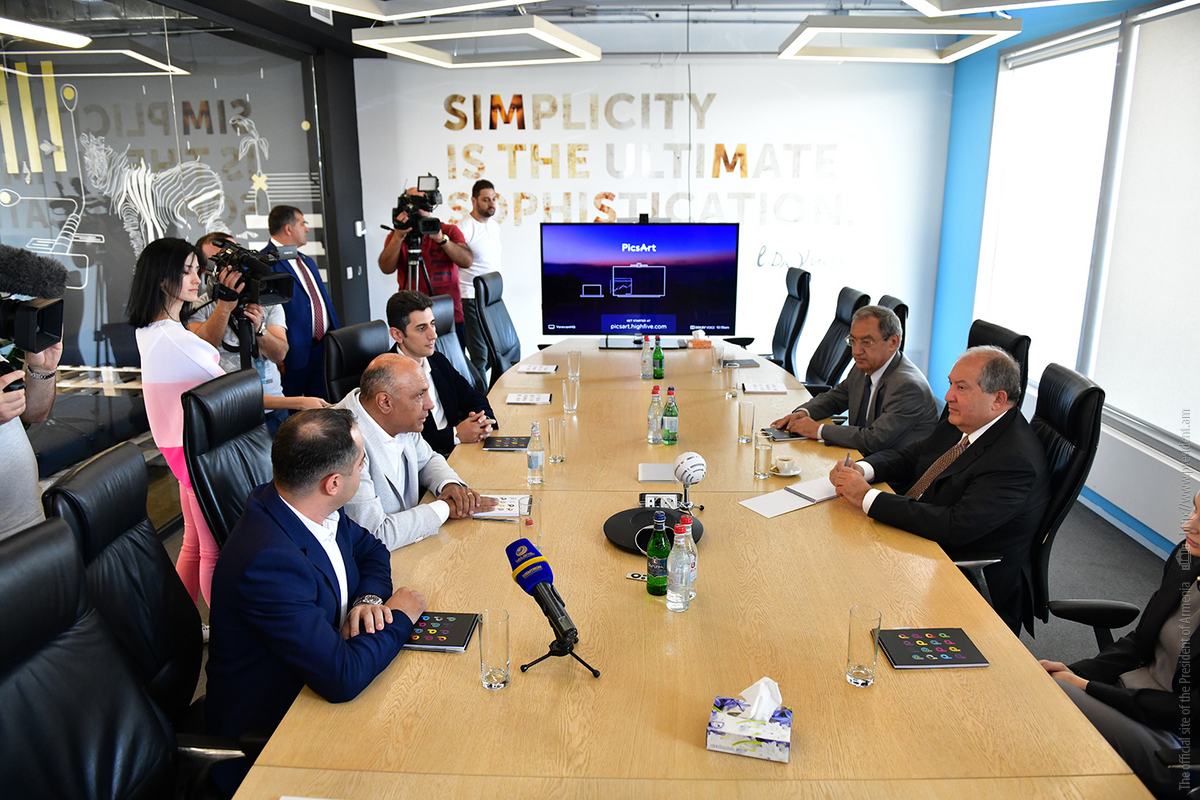 President Armen Sarkissian visited today the PicsArt company, familiarized with the programs and activities of the company which specializes in information technologies.