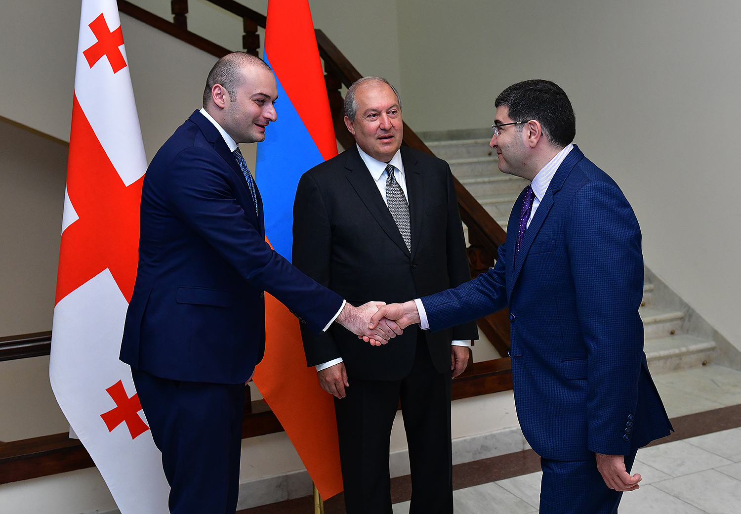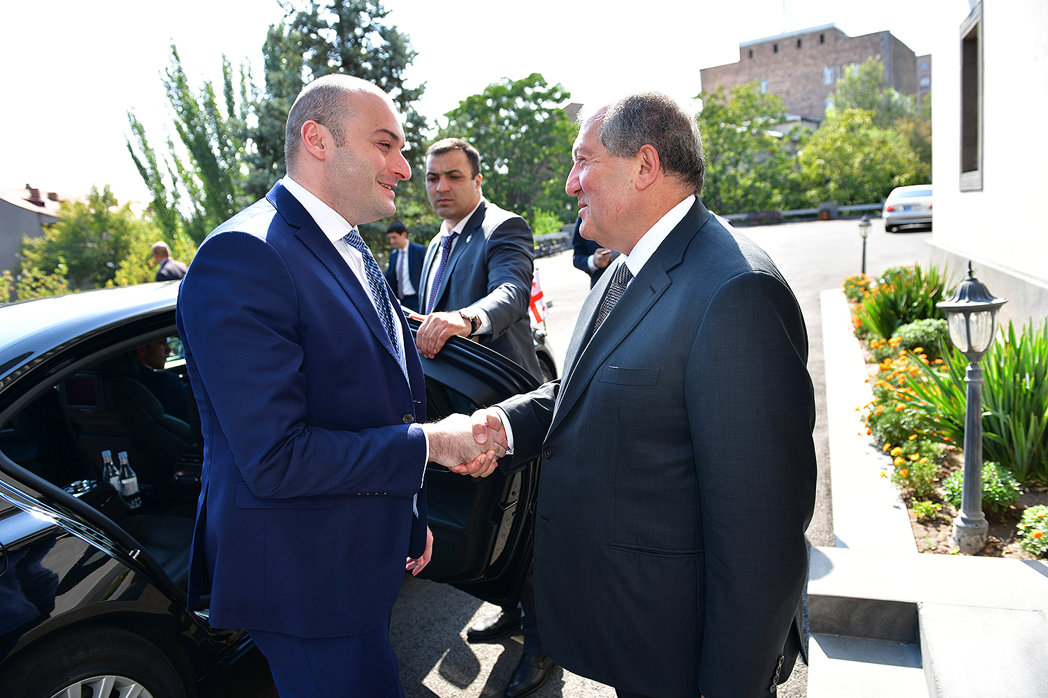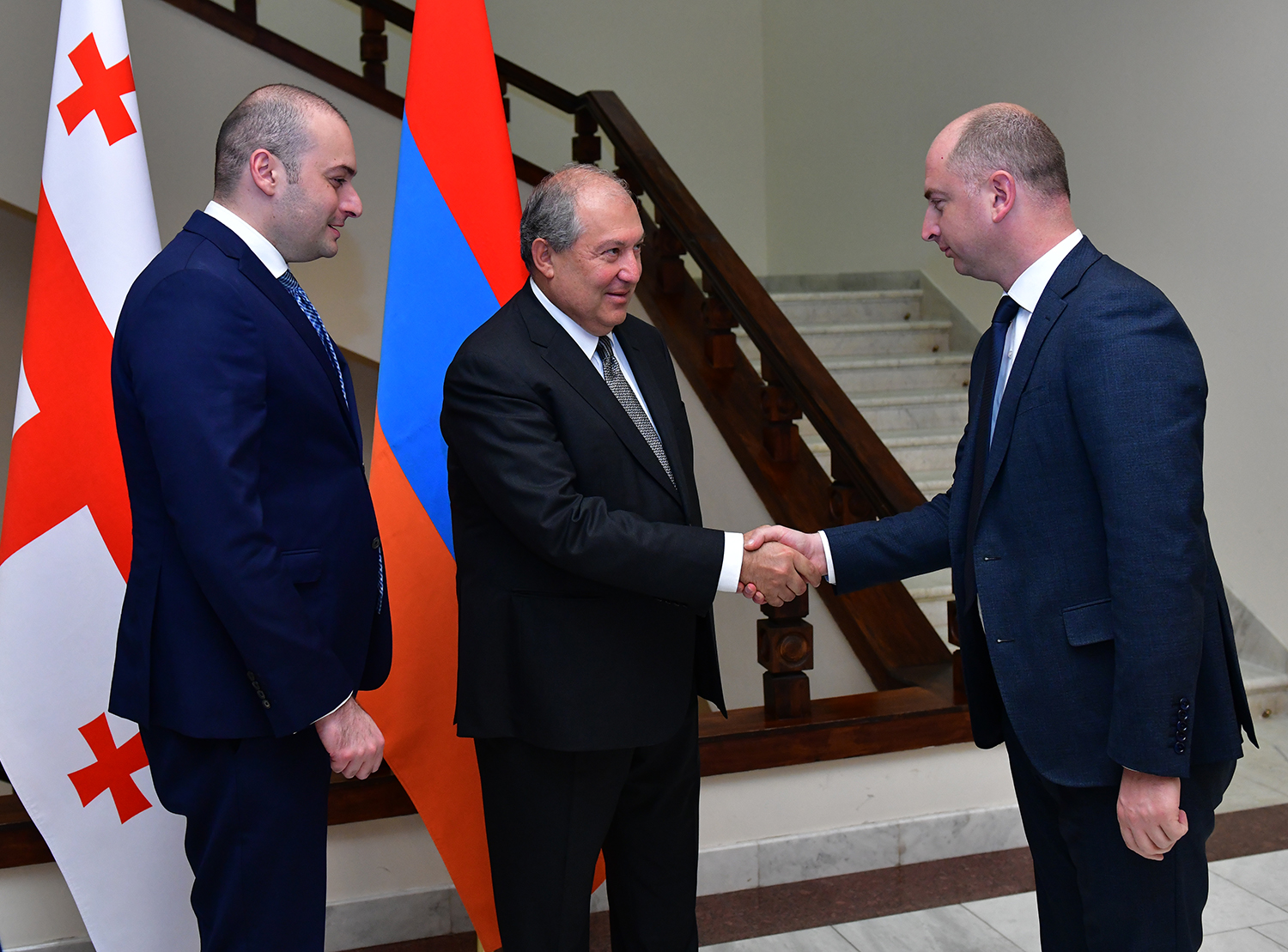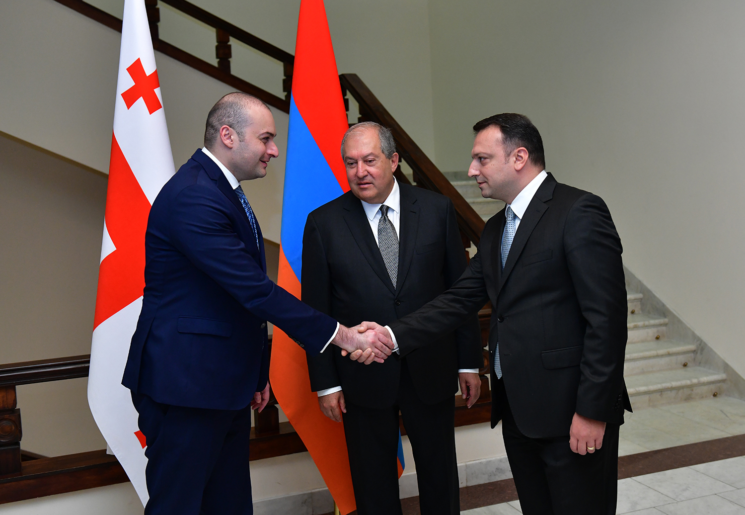 President Sarkissian welcomed Prime Minister Bakhtadze and his delegation to Armenia and underscored that the friendship between Armenia and Georgia has deep historical roots. “Today, the two countries are entering a period of the modern history which without any hesitation can be called the period of brotherhood and partnership. There is no doubt that this vital historic legacy creates prerequisites for pinpointing new directions of cooperation and calling them to life. Currently, our political relations are on a high level; however, there exists a great untapped potential, particularly, in the economic area. I am confident that your visit will give a boost which will allow to elevate our relations to a higher level,” President Armen Sarkissian said.