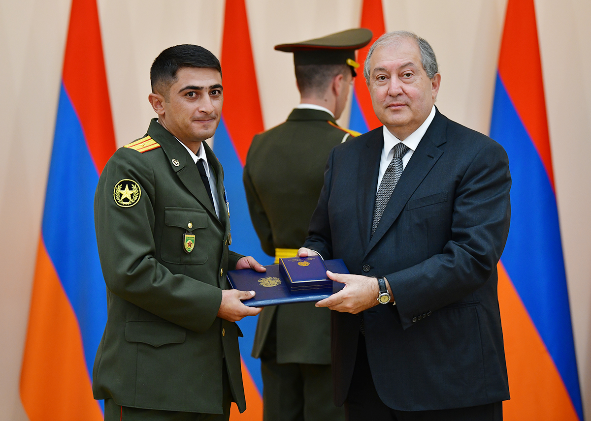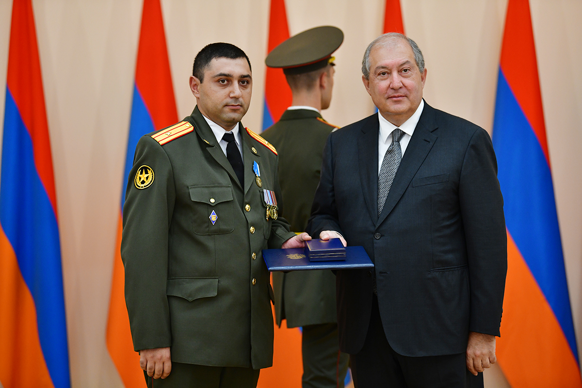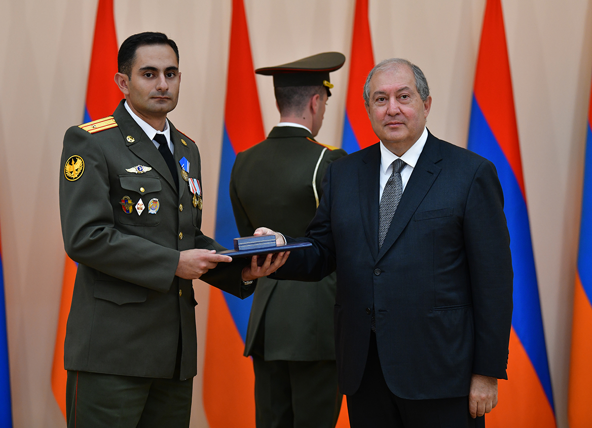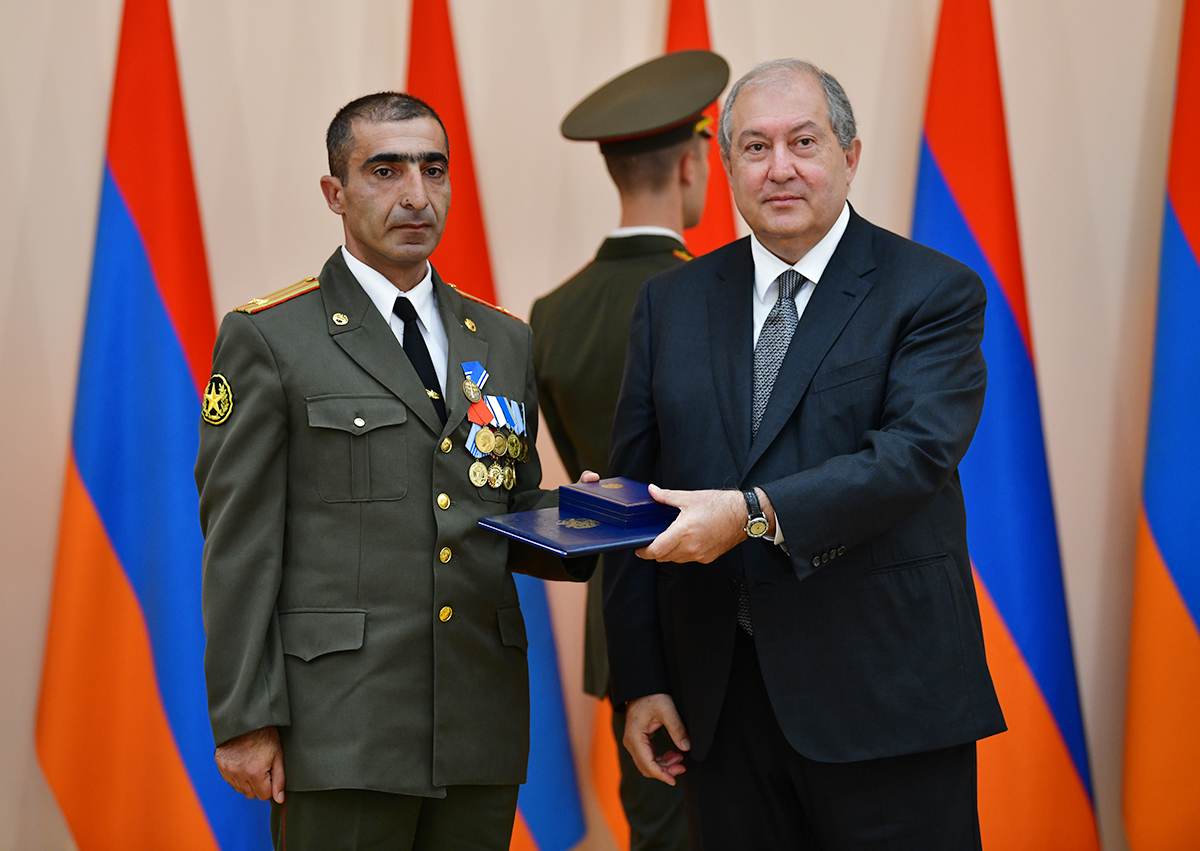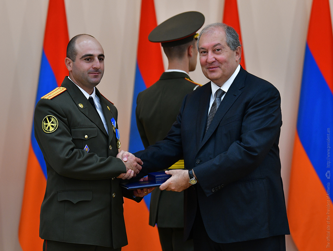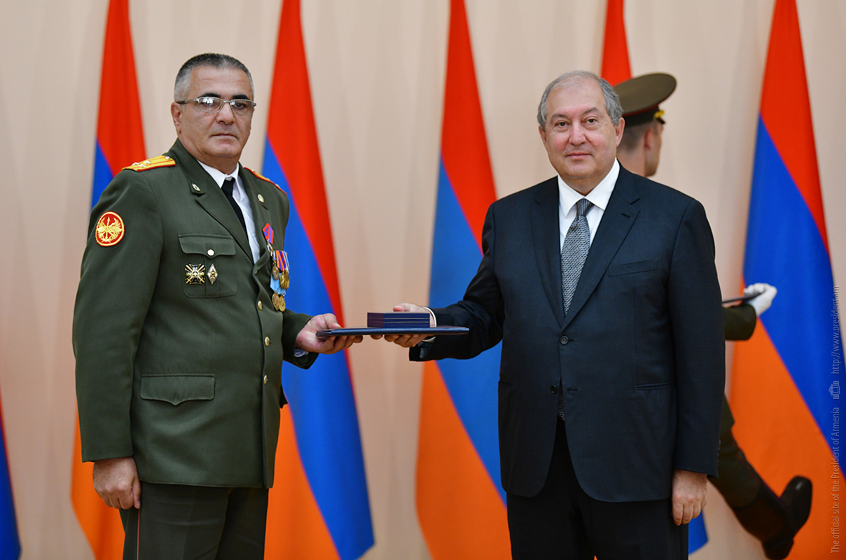 On the occasion of the 27th anniversary of independence of the Republic of Armenia, by the decision of President Armen Sarkissian a group of representatives of the RA Armed Forces and RA Police for the valor and dedication as well as for the strengthening the law enforcement structure and contribution to the protection of public order were awarded the highest honors of the Republic of Armenia and military ranks.