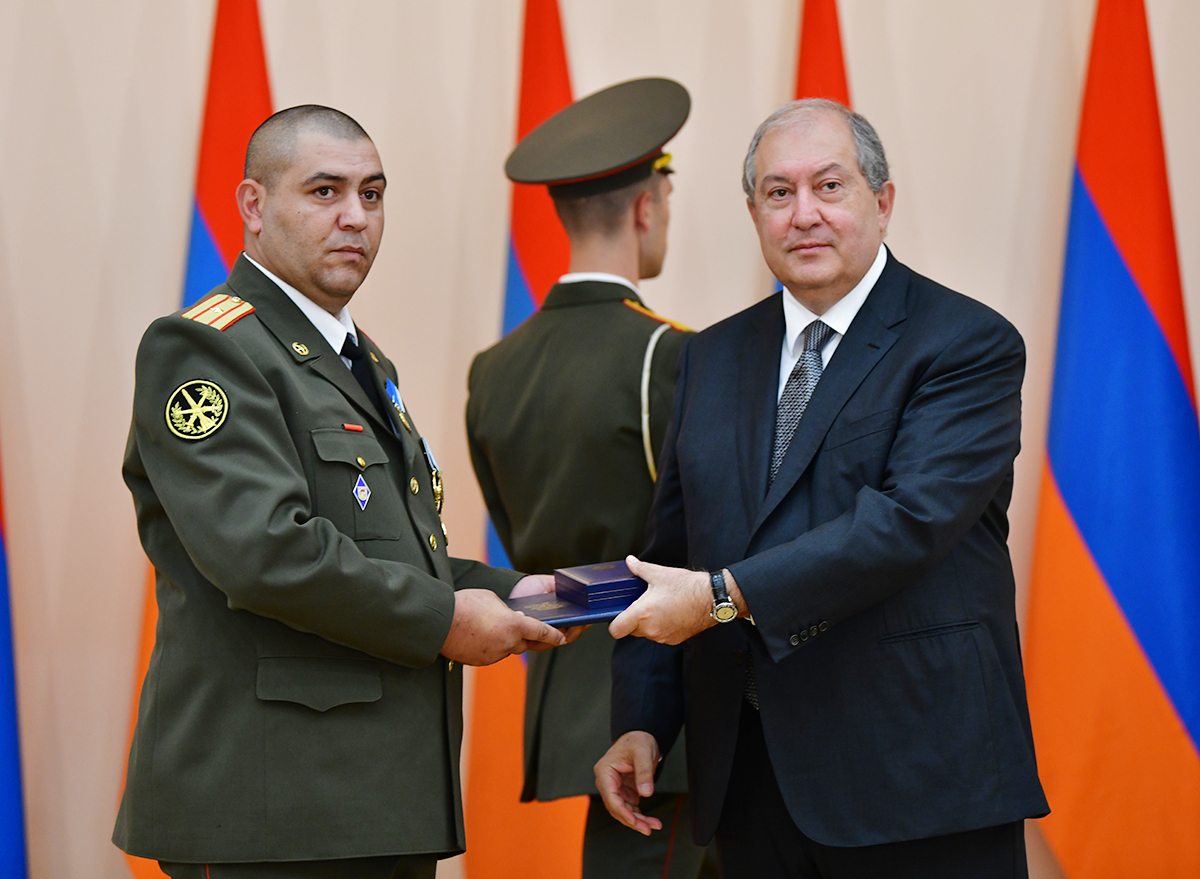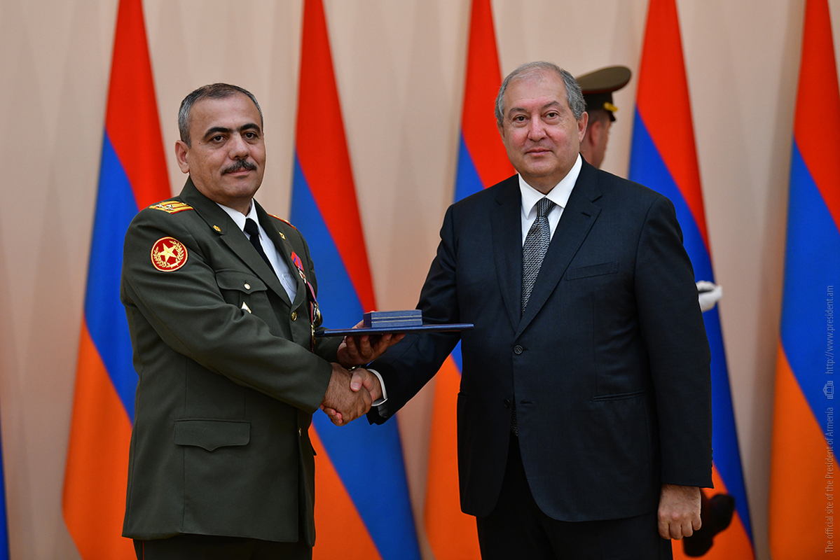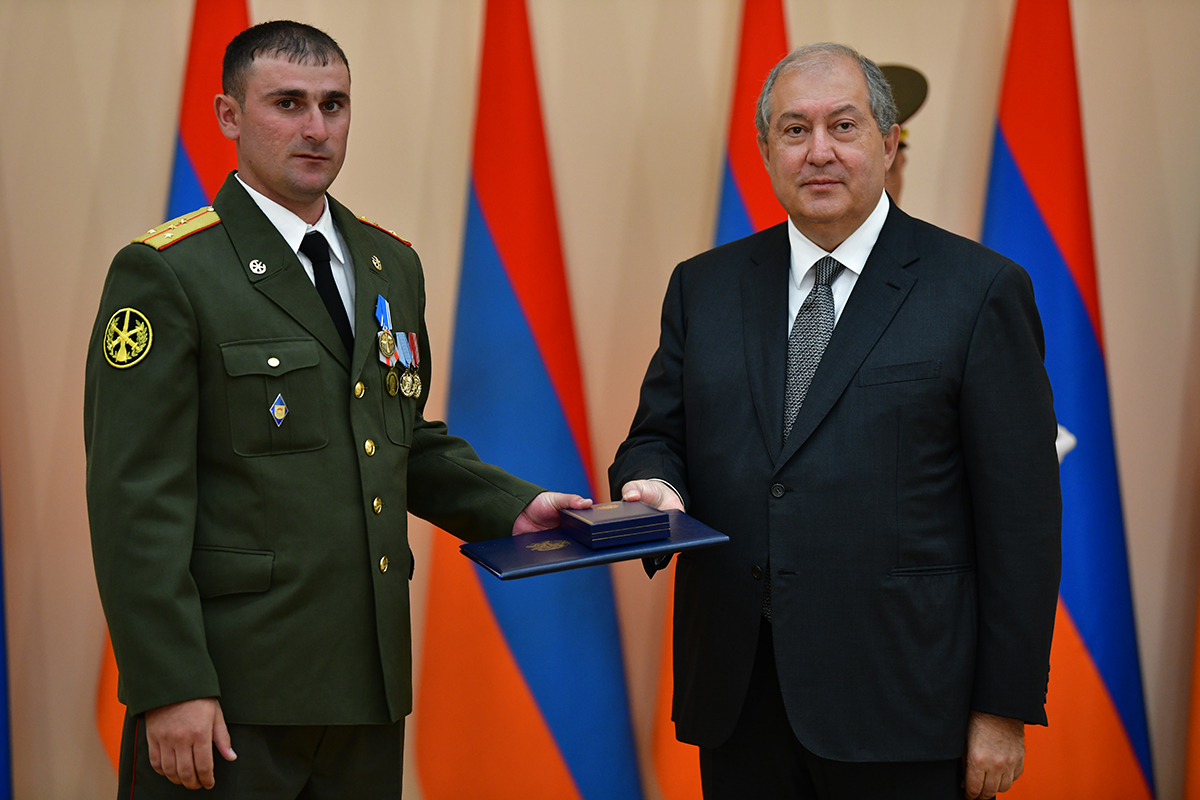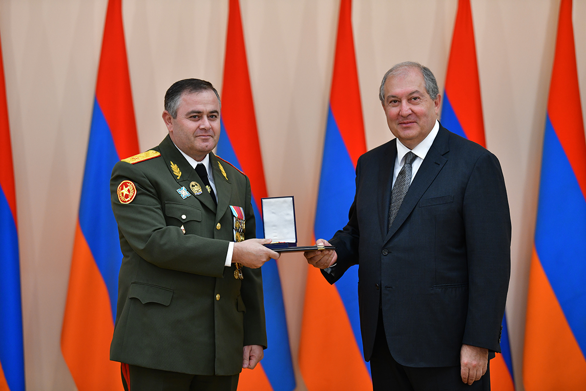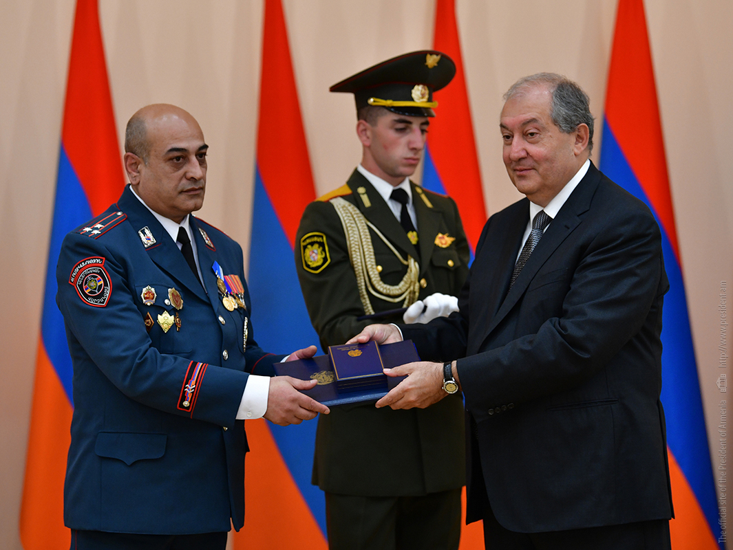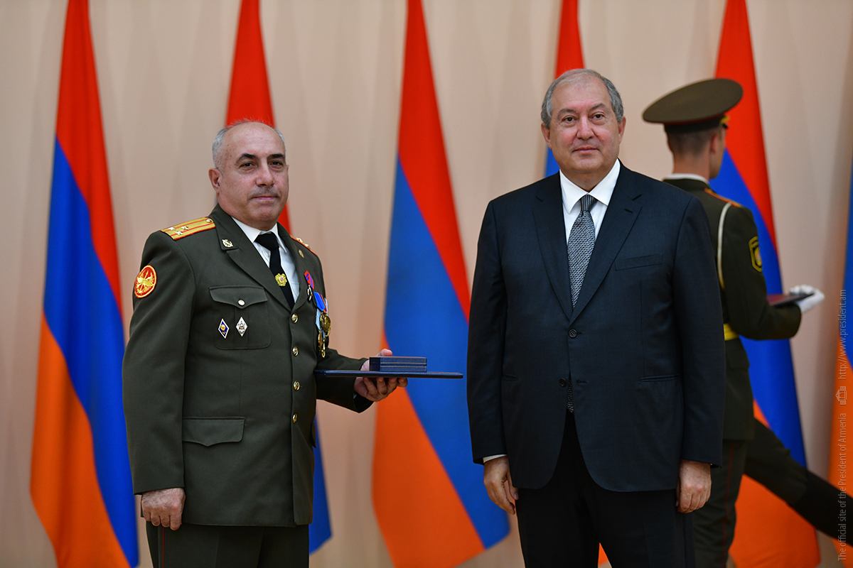 On the occasion of the 27th anniversary of independence of the Republic of Armenia, by the decision of President Armen Sarkissian a group of representatives of the RA Armed Forces and RA Police for the valor and dedication as well as for the strengthening the law enforcement structure and contribution to the protection of public order were awarded the highest honors of the Republic of Armenia and military ranks.