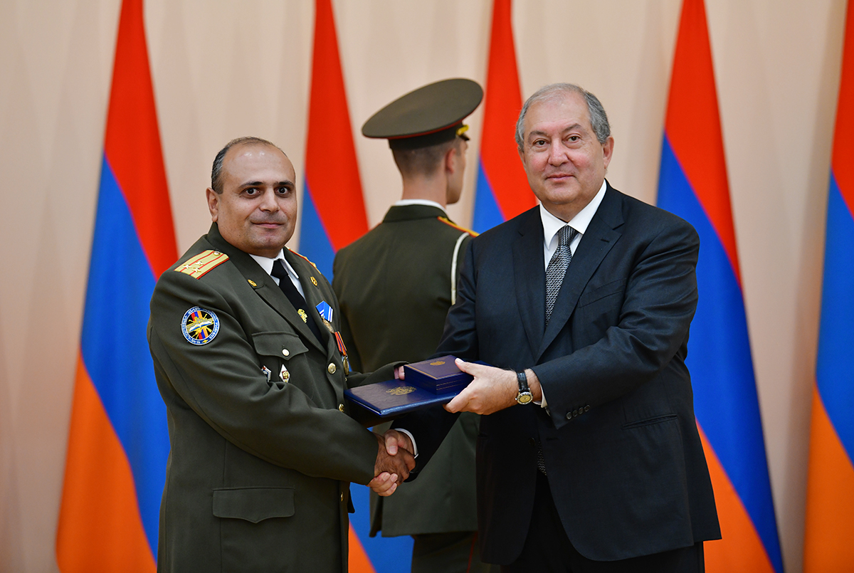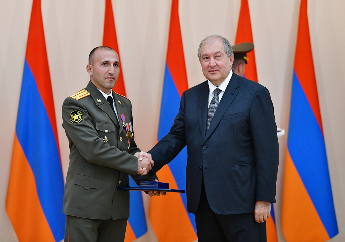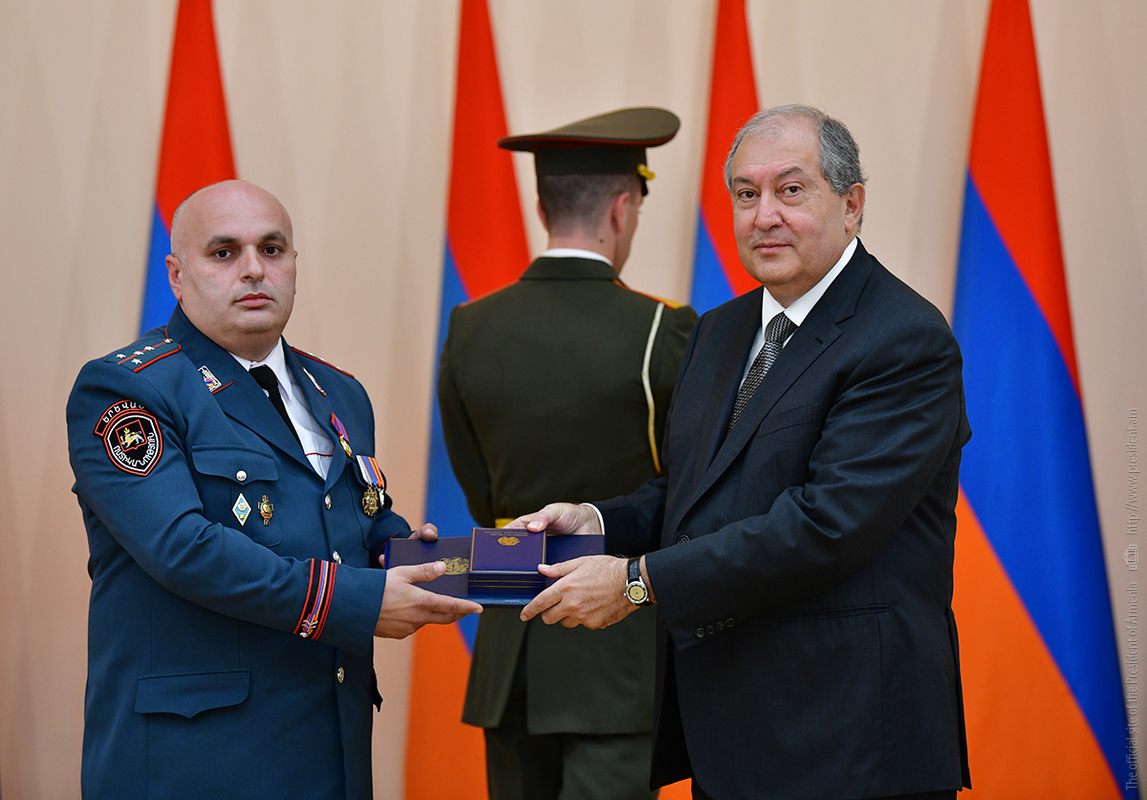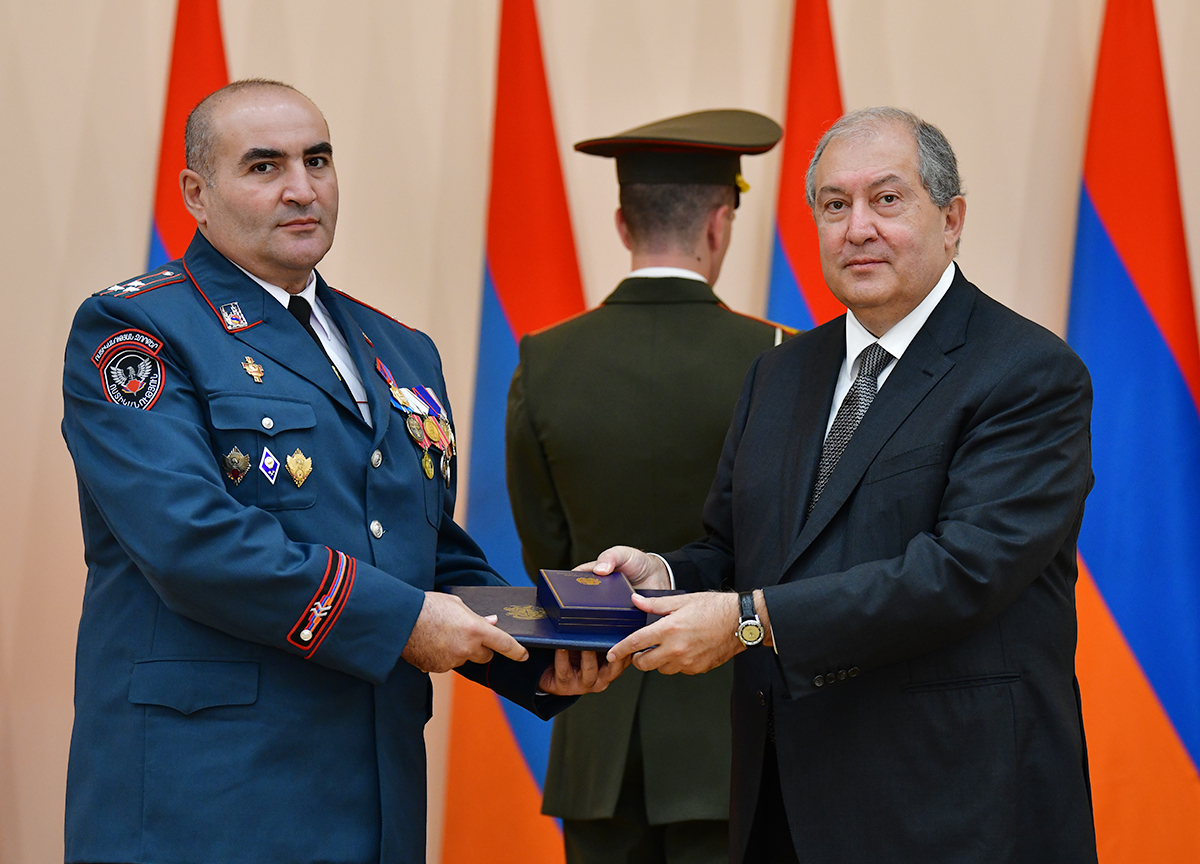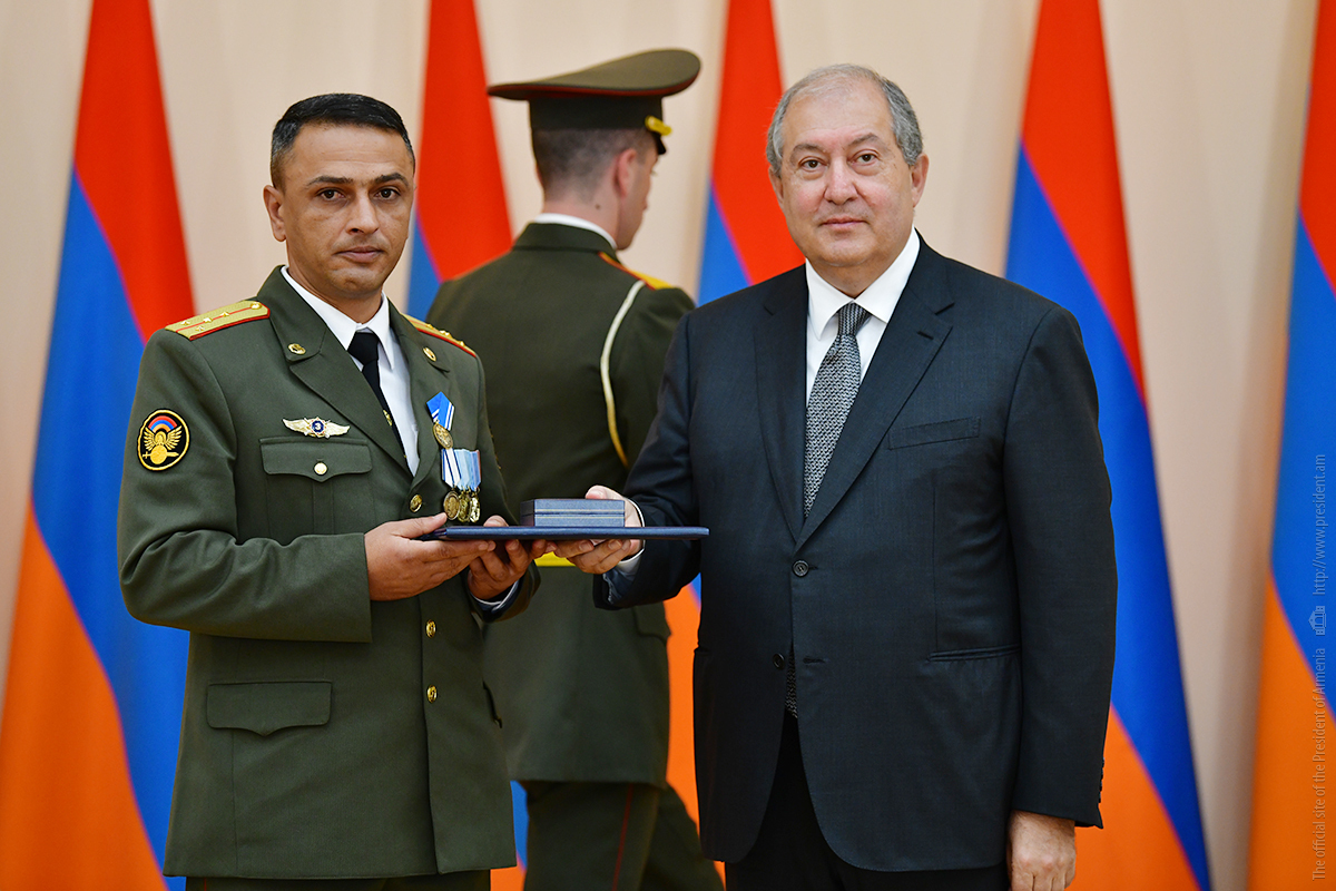On the occasion of the 27th anniversary of independence of the Republic of Armenia, by the decision of President Armen Sarkissian a group of representatives of the RA Armed Forces and RA Police for the valor and dedication as well as for the strengthening the law enforcement structure and contribution to the protection of public order were awarded the highest honors of the Republic of Armenia and military ranks.