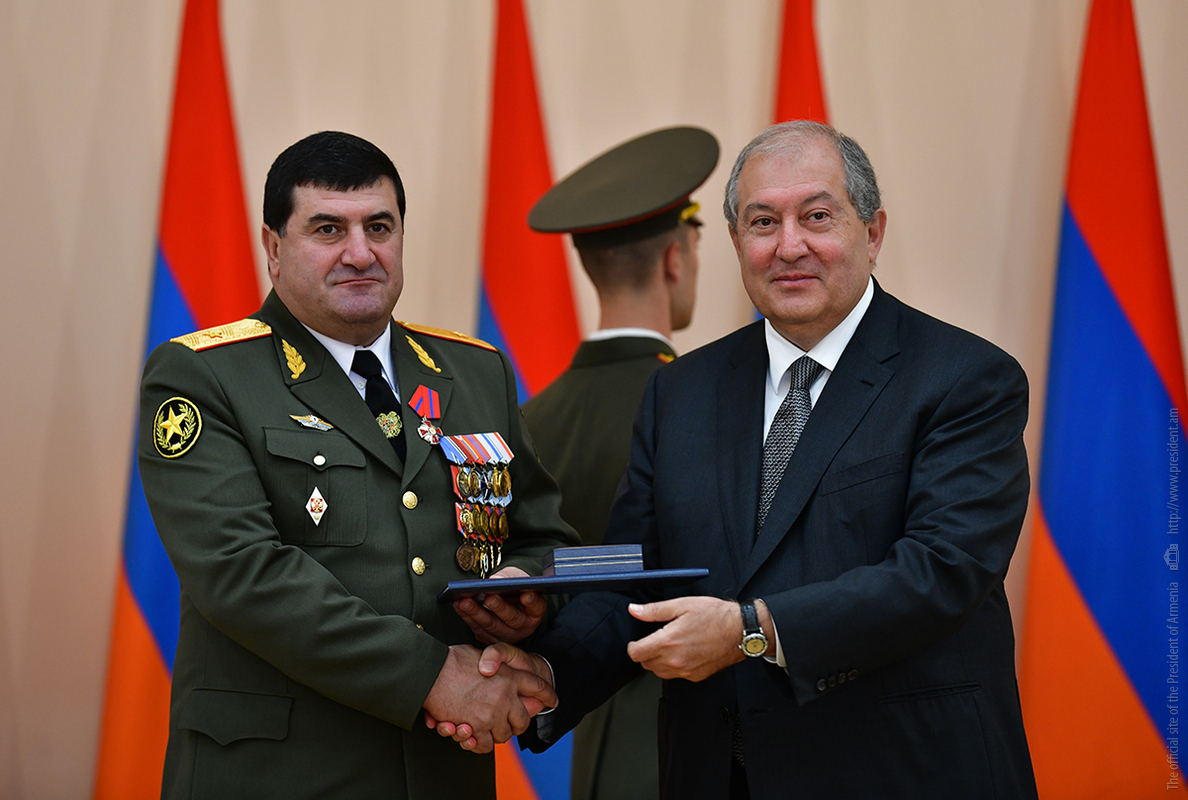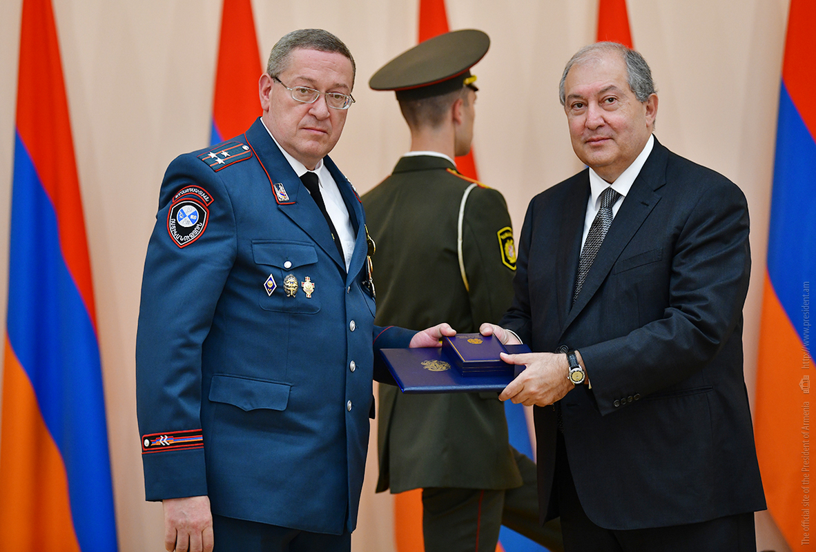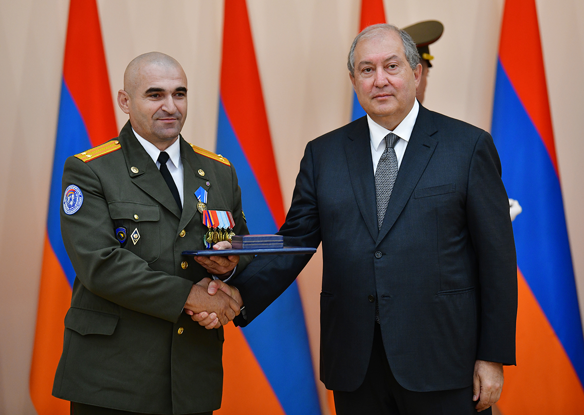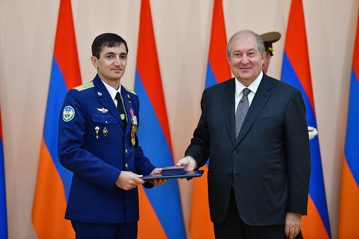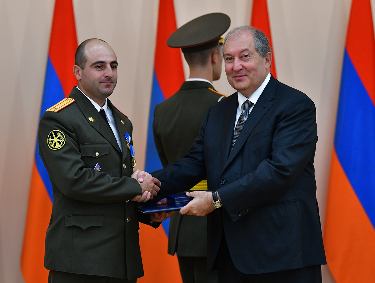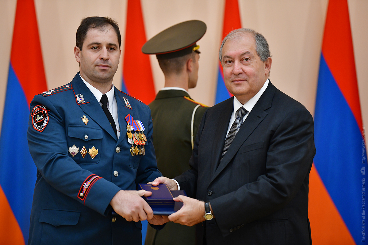 On the occasion of the 27th anniversary of independence of the Republic of Armenia, by the decision of President Armen Sarkissian a group of representatives of the RA Armed Forces and RA Police for the valor and dedication as well as for the strengthening the law enforcement structure and contribution to the protection of public order were awarded the highest honors of the Republic of Armenia and military ranks.