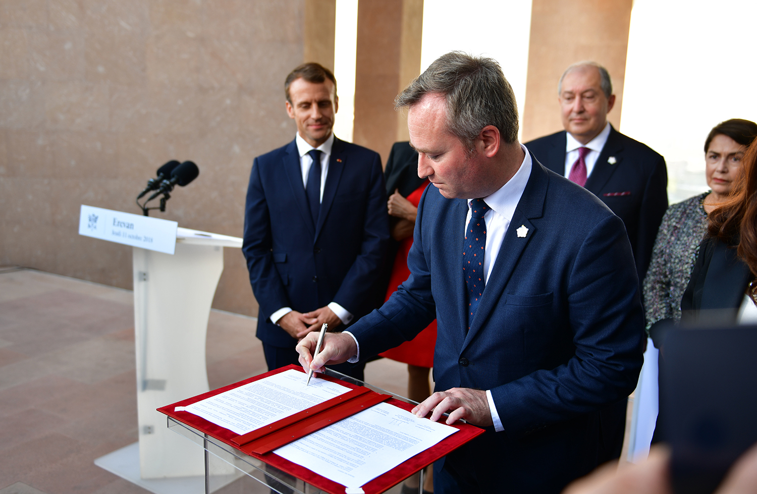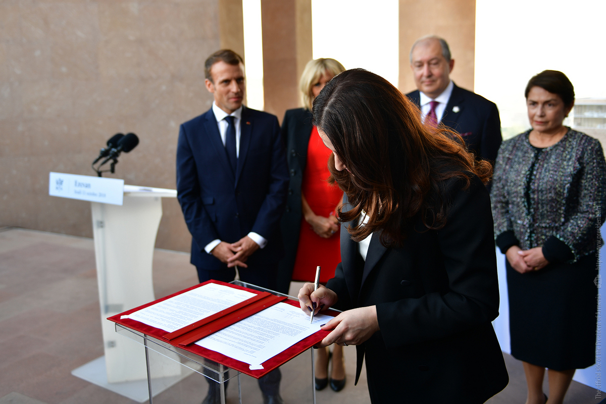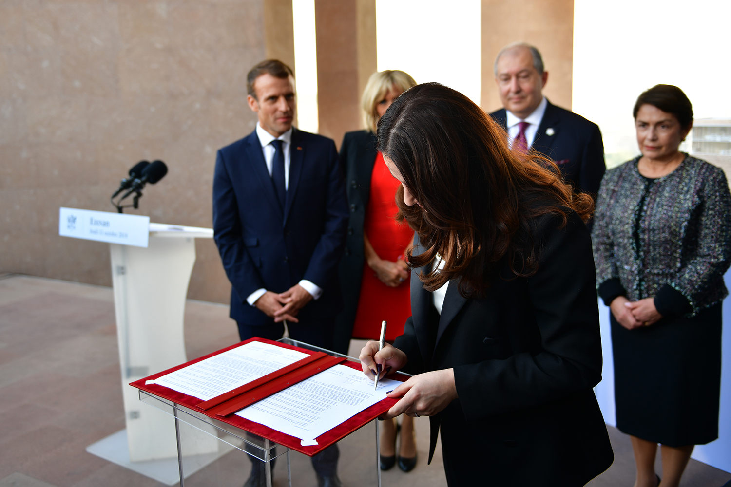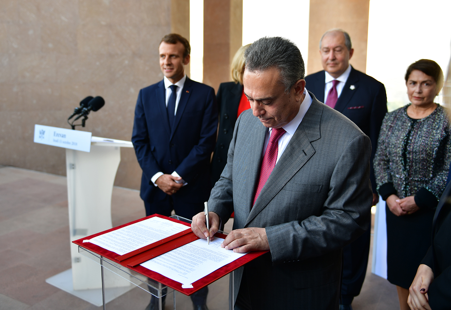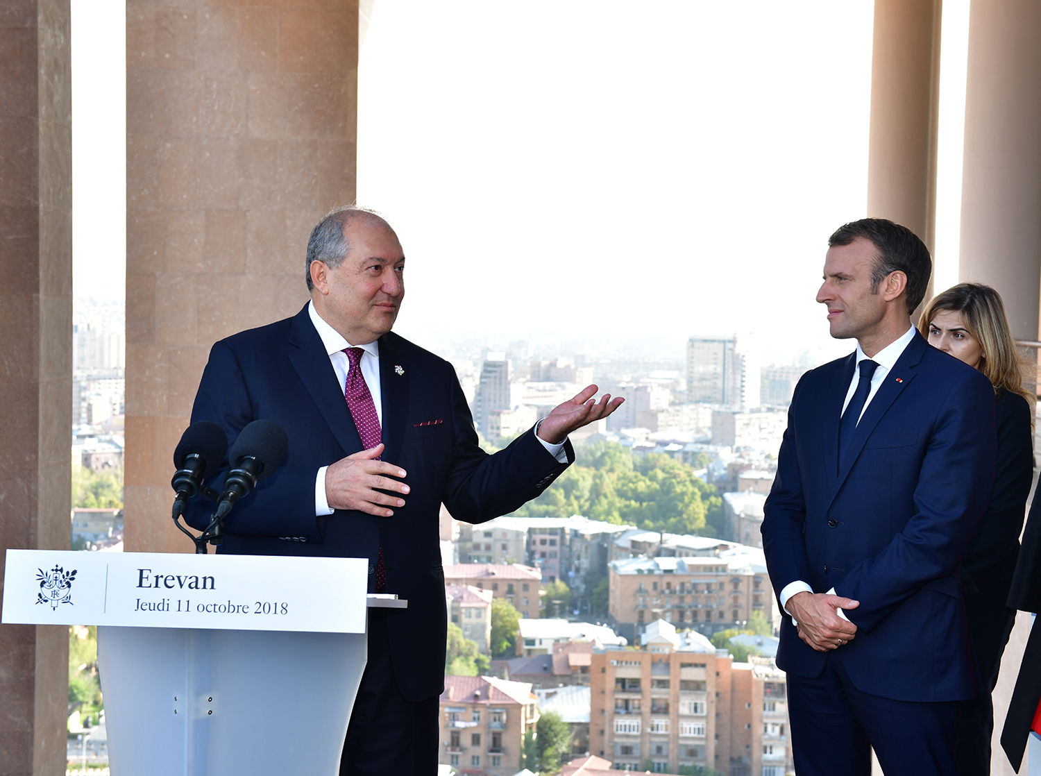 Later, Presidents Armen Sarkissian and Emmanuel Macron made statements.