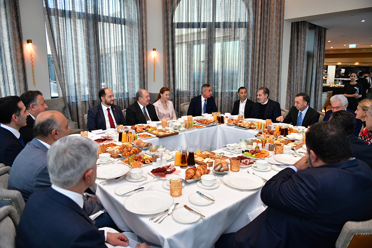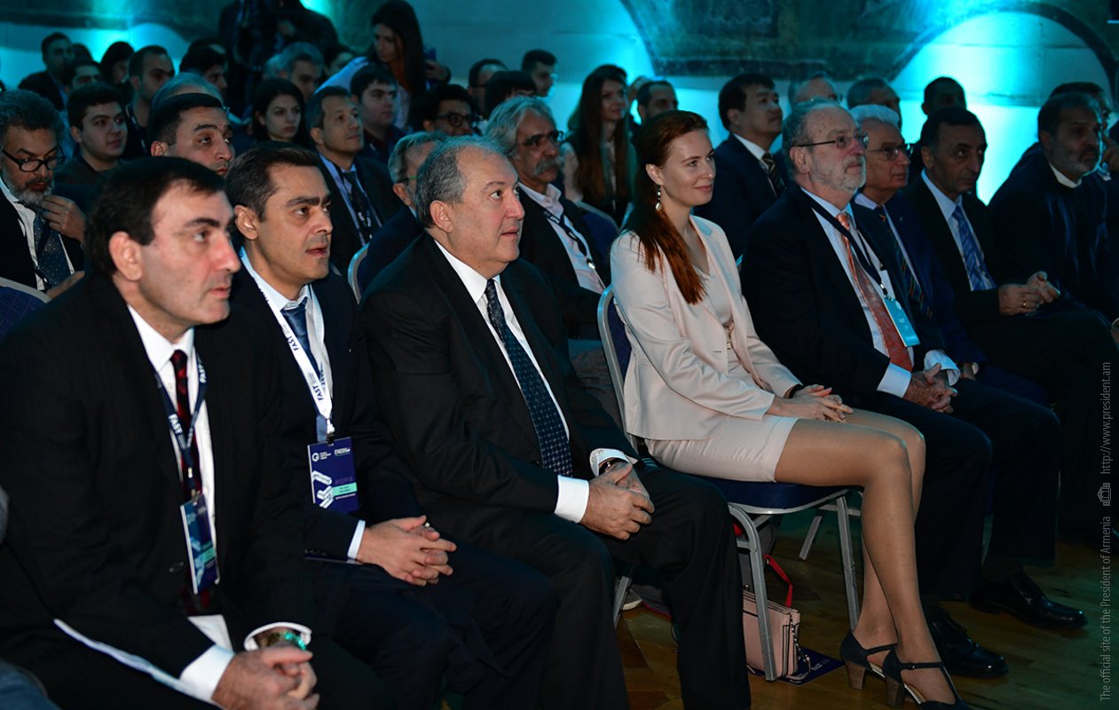 The President delivered the following message: “Armenia is a gateway to the future. We encourage to make investments in our country – a country which is young, which is ambitious, whose people are talented, whose government is young, a country which lives in the 21st century. Young and mature. To be young means first of all how young one is feeling inside, whether he or she is ready for new discoveries, is ready to learn, is ready to ask questions and find answers, whether you’re ready for research, an evolutional acceleration.